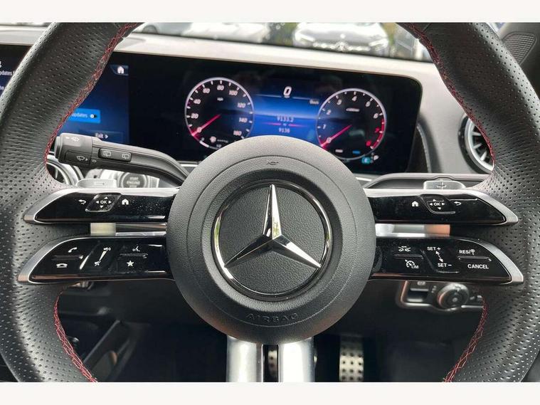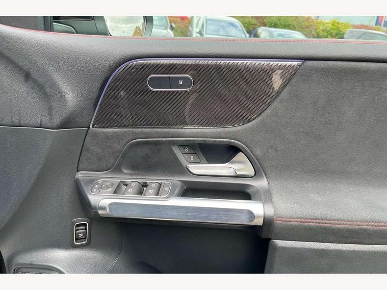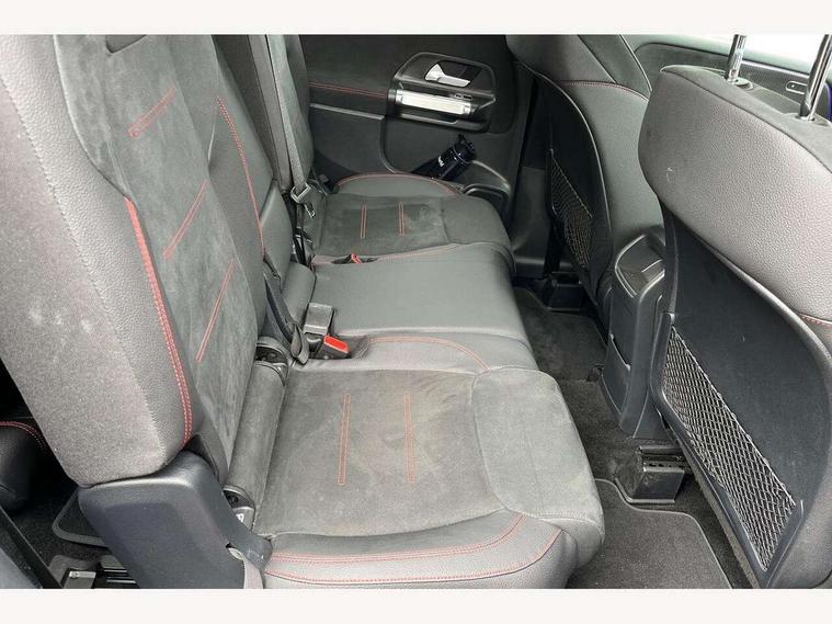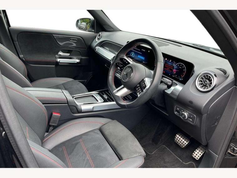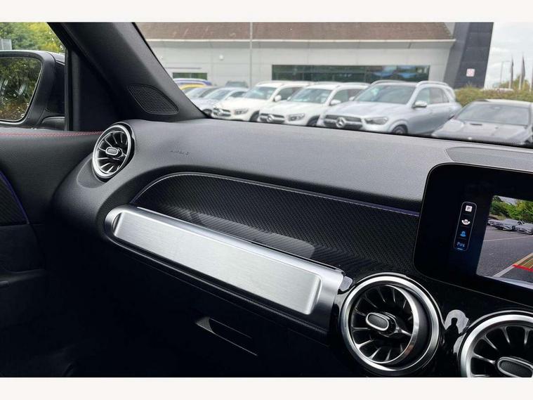 10.25 inch touchscreen central media display, 10.25" Digital instrument cluster display screen, Attention assist - Monitors steering behaviour and long journey fatigue, Blind spot assist, Bluetooth connection, Brake pad wear indicator warning light, Car wash mode, Direct steering, DYNAMIC SELECT with a choice of driving modes (ECO, Comfort, Sport and Individual), ECO start/stop function, Exit warning function, Fingerprint scanner, Fluid level warning indicator for fuel, oil, coolant and washer fluid, Hard disk navigation, Hey Mercedes Voice activation, Lamp failure indicator, Lane keep assist, MBUX navigation premium, Mercedes me connect including emergency call system, accident recovery, breakdown and maintenance management, Mercedes me remote services, Outside temperature gauge, Owners manual and service booklet in English, Pre-installation of private car share, Preinstallation for parking damage notification, Radio aerial integrated into front and rear windshields, Service indicator (ASSYST), Smartphone integration with Apple CarPlay and Android auto, Speed limit assist, Tailgate, Trip computer in multifunction display with current consumption indicator, Wireless charging, Comfort suspension with ride height lowering, Rear axle multi-link, DAB digital radio tuner, MBUX multimedia system, Mercedes Benz sound system (100 W) with 6 speakers, Pre installation for Mercedes Benz Link, Adaptive brake lights, Adaptive high beam assist, AMG front apron with front splitter in the colour of the vehicle with chrome trim element, AMG rear apron with visible tailpipe trim and chrome trim element, AMG specific/dual flow exhaust pipes in chrome (non-functional), Beltline trim and window line trim strip in high gloss aluminium, Black grained side sill trim with chrome inlay, Body coloured door handles, Electric adjustable and heated door mirrors with integrated LED side indicators, Front and rear electric windows, Headlamp assist automatic headlamp activation, Heat insulating dark tinted glass for rear side windows and rear window, Heated glass rear windscreen + timer control, High level LED third brake light, Interior mirror with black reading lamps and frameless, LED high performance headlamps with integrated LED daytime running lights, LED tail lamp, Polished aluminium roof rails, Radiator grille as a diamond grille with chrome pins and central Mercedes star, Rain sensor windscreen wipers with two sensitivity stages, Rear fog lamp, Rear side wing doors, Rear wiper, Single louvre in matt grey with chrome inserts and black highlights, Two visible tailpipe trim elements exhaust, Wheel arch liners in the colour of the vehicle, 3 seat bench in 2nd row, 3 twin spoke flattened multifunction steering wheel in nappa leather - horizontal twin spoke in high gloss black, vertical twin spoke in silver chrome, 4 way adjustable lumbar support, 40:20:40 split folding rear seats, Air vents with silver chrome surrounds, AMG floor mats, AMG sports pedals with brushed stainless steel surfaces and black rubber studs, Artico man-made leather/Microcut microfibre upholstery, Automatic child seat recognition sensor, Black roof lining, Fluorescent jacket, Front and rear headrests, Front centre armrest with stowage, Galvanised steering wheel gearshift paddles in silver chrome, Heated front seats, Height adjustable head restraints, Height/reach adjustable steering column, Interior lighting - 64 colour Ambient lighting, Luggage net on driver/front passenger seat backrest, Single front passenger seat, Sports seats, Stowage compartment in centre console with retractable cover and double cupholder and 12 V socket, Sun visors with illuminated vanity mirrors, THERMATIC automatic climate control, Third row of seats for two people on rear seat, Twin front cup holders, Two outer rear seat isofix and top tether child seat fixing points, Easy pack tailgate, Interior lighting with light and sight pack - GLB, KEYLESS-GO Comfort package - GLB, Mirror package - GLB, Parking Package with reversing camera - GLB, Seat comfort package - GLB, USB package plus - GLB, 3 rear 3 point seatbelts, Active bonnet pedestrain safety measure which detects an impact and raises bonnet by 65mm, Active brake assist includes forward collision warning system with autonomous braking, Adaptive brake assist with hold function and hill start assist, Airbags - kneebag for driver, Anti-lock braking system (ABS) with brake assist, Black seatbelts, Bonnet with power domes, Childproof locks manually operated for rear doors and electrically operated for rear power windows, Crash responsive emergency lighting, Curve dynamic assist, Driver and front passenger head and sidebags, Driver and front passenger windowbags, Dual stage driver and front passenger airbags, Electric parking brake, Electronic stability programme with acceleration skid control, Front and rear seatbelt reminder, Front brake callipers with Mercedes Benz lettering, Front passenger seat occupancy sensor, Perforated front brake discs, Tyre pressure monitoring system, Warning triangle and first aid kit, Guard 360 degree vehicle protection - Anti theft alarm system, tow away protection with visual, acoustic warning and alarm, Interior monitoring system, KEYLESS-GO starting function, Remote central locking and crash sensor with emergency opening function, Thatcham category 1 alarm system with immobiliser and interior protection, Carbon structure trim, 19" AMG 5 twin spoke light alloy wheels aerodynamically optimised, painted in high-gloss black and with a high-sheen finish RTG, Summer tyres, Tirefit tyre sealant kit,