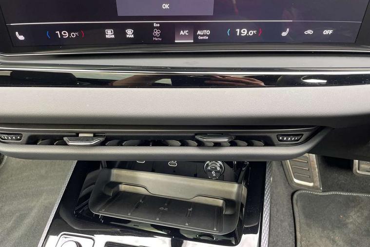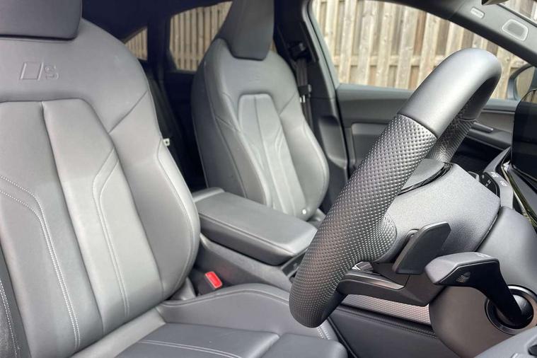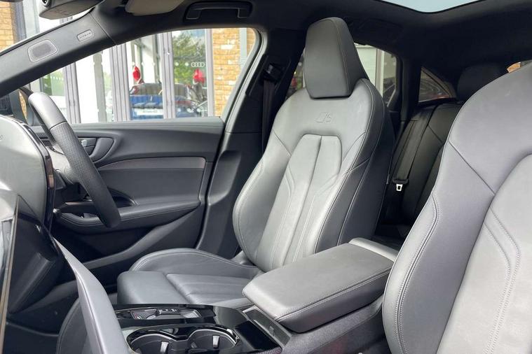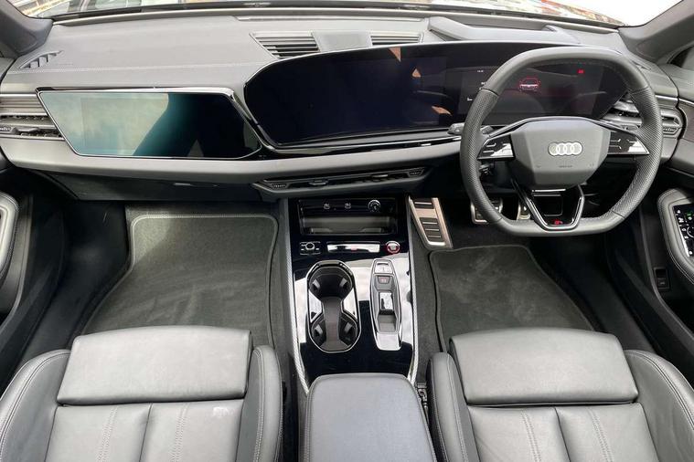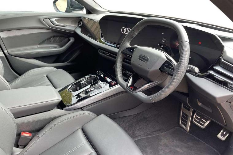 Adaptive cruise assist plus with steering intervention, Advanced driver attention and fatigue montior, Audi application store, Audi assistant, Audi connect emergency call and service, Audi drive select, Audi smartphone interface, Audi virtual cockpit plus with 11.9" OLED colour display, Automatic start/stop system with coasting functionality, Camera based traffic sign recognition, Garage door opener, Head up Display, Intersection assist, Lane change assistant with exit warning system, rear cross traffic alert and rear turn assist, Lane departure warning with emergency assist, MMI 10.9" front passenger touch display, MMI navigation plus with high resolution 14.5" OLED touchscreen colour display, Park assist plus, Parking system plus with 360 display, Progressive steering with servotronic, Swerve assist and turn assist, Top view camera, Traffic sign based speed limiter, Sports suspension with damper control lowered by 20mm, 2 USB-C ports in both the front and rear, Bang and Olufsen premium sound system with 3D sound, DAB digital radio reception, Smartphone compartment with wireless charging, Acoustic glass for front door windows, Aluminium window trims, Auto dimming rear view mirror, Body colour door mirrors, Clear glass, Digital OLED tail lights including communication light, Door mirrors - electrically adjustable, heated, folding and auto dimming on both sides, Front and rear electric windows, Front door sill trims with aluminium inlays, illuminated with 'S' logo, Headlight cleaning system, High beam assist, LED daytime running lights, LED third brake light, Manual sunshade for the rear door windows, Matrix LED headlights with eight light signatures selectable via the MMI or the myAudi app, Panoramic glass roof with switchable transparency, Privacy glass, Rear and side windows with heat insulating glass, Rear boot, Rear side wing doors, S Line badges on the front wings, S line bumpers, radiator grille and diffuser in phantom black and diffuser insert in matt anthracite, White rhombus logo projection light in exterior mirrors, Windscreen with acoustic glazing, 3 rear headrests, 3 seat rear bench, 3 spoke leather steering wheel with multi-function buttons with touch control, flattened on top and bottom, with S badging and contrast stitching, 3-zone automatic climate control, 4 way electric lumbar support for driver and front passenger, 40:20:40 split folding rear seat bench with centre armrest and cup holders, Comfort front centre armrest, Dynamic interaction light (coloured), Electric steering wheel adjustment, Electrically adjustable front seats, Front and rear floor mats, Front sport seats with integrated headrest and S embossed logo, Headlining in black cloth, Heated front and outer rear seats, Heated steering wheel, i-Size child seat mounting on the front passenger side and outer rear seats, i-Size and top tether on the outer rear seats, Increased charging capacity for USB ports 2X100 Watts in rear, 2X60 Watts in front, Luggage compartment lid, electrically opening and closing, Single front passenger seat, Stainless steel pedals and footrest, Steering wheel grips in perforated leather and shift paddles, Twin leather upholstery, Ambient lighting package plus - A5, 3x3 point rear seat belts, Acoustic vehicle alerting system, Convenience key with safelock, Driver airbag, Electric child safety locks, First aid kit with warning triangle and vests, Front emergency brake assist, Front passenger airbag, Front passenger airbag deactivation, Hill hold assist, Occupant detection in rear seat area, Proactive passenger protection system for front, sides and rear, Seat belt monitoring with rear seat occupant reminder, Side airbags in front and rear with head airbag system and front interaction airbag, Tyre pressure loss indicator, Anti theft alarm, Anti-theft wheel bolts, Keyless Go, Accents in the interior in vanadium look, Black dashboard with contrast stitching, Inlays in matt brushed aluminium with linear embossing, anthracite, Softwrap in leatherette with contrast stitching, Upper and lower interior elements in leatherette, 19" 5 twin V spoke design alloy wheels in graphite grey, Tyre repair kit,