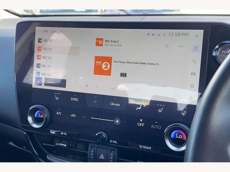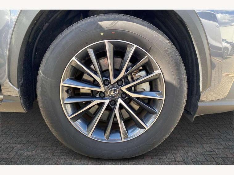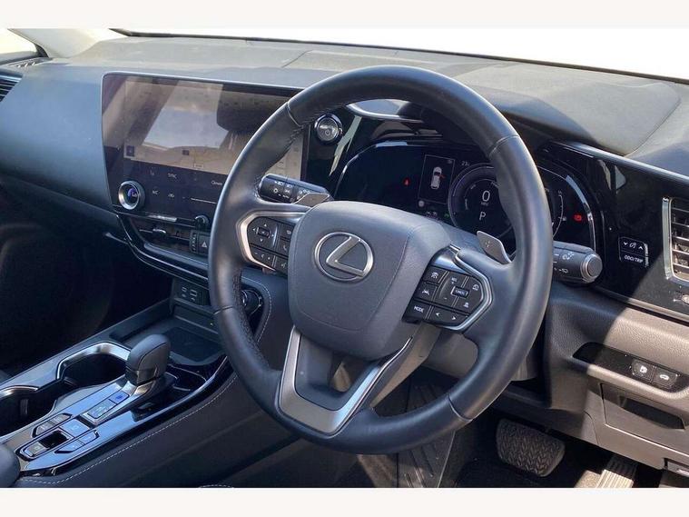 4 driving modes EV/Eco/Normal/Sport, 7" display in instrument binnacle, Blind spot monitoring with rear cross traffic alert, Bluetooth telephone connectivity, eCall emergency system, Electric speed sensitive power steering, Intelligent parking sensors - 4 front and 4 rear, Lane change flasher function, Lexus link connect - Cloud based navigation, cloud based voice assistant, always online and 9.8" VGA touchscreen, Push button starter, Reversing camera with back guidelines, Service interval indicator, Tailgate, Wireless Apple CarPlay and wired Android Auto, Wireless Smartphone charger, 6.6 kW onboard charger, All Wheel Drive (AWD), Hybrid automatic transmission, Vehicle Dynamics Integrated Management (VDIM), Vehicle Stability Control (VSC), 10 speakers, 4 USB ports - 2 front, one USB C, 2 rear USB C, DAB Digital radio, Auto dimming interior rear view mirror, Automatic headlights, Bi LED headlights, Double hidden exhaust pipes, Front and rear one touch power windows, with anti-jam protection, Heated, auto-folding, auto-dimming outside mirrors with reverse tilt function and turn indicators, Illuminated door handles with puddle light, LED brake lights and rear lights with emergency brake signal, LED cornering lights, LED daytime running lights, LED front fog lights, LED Indicators, Power back door with kick sensor, Privacy glass, rear doors and tailgate, Rain sensor windscreen wipers, Rear side wing doors, Rear wiper, Roof rails, 12V accessory port centre console and luggage compartment, 2 cupholders in front centre console, 2 way electrical lumbar adjustment for driver, 2 x fixed shopping bag hooks in boot, 2 x sun visors with vanity mirror and lamp, 3 seat bench in 2nd row, 4 x tie down hooks in the boot, 60/40 split folding rear seat, 8 way driver/passenger electrically adjustable front seats, Adjustable rear seat backrest, Card holder installed in driver and passengers sun visors, Centre armrest with storage box, Dual climate control air conditioning system, Front and rear head restraints, Front and rear textile carpet mats, Front passenger seat, Heated front seats, Heated steering wheel, Leather gear lever, LED interior illumination, Power adjustable leather steering wheel with paddle shifts, Premium Tahara leather upholstery, Rear centre armrest with 2 cupholders, Whiplash Injury Lessening (WIL) feature (active headrest) for seats, 2 x Isofix child rear seat restraints, 3 point ELR front seatbelts with pretensioners, 3x3 point rear seat belts, ABS, Adjustable seat belt anchor points, Driver and front passenger 2 stage airbag, Driver/front passenger side airbags, Drivers knee airbag, E-Latch with safe exit assist, EBD + Brake Assist, ECB (Electronically Controlled Brake System), Electronic parking brake, Front and rear curtain shield airbags, Front center airbag, Front passenger seat cushion airbag, Hill assist control, Lexus safety system - dynamic radar cruise control, pre collision system day and night, lane tracing assist, road sign, automatic high beam, OTA, Manual rear child locks, Passenger airbag cut-off device, Traction control, Tyre pressure warning, Anti-theft system with alarm, intrusion sensor, glass breakage sensor, tilt sensor and engine immobiliser, Locking wheel nuts, Smart keyless entry, Speed sensitive auto door locking, Two motion door lock with double lock, Ultra Wide Band (UWB) Anti-theft system, VIN Window etching, 3D prism black Inlay, Organic inlay, Tyre repair kit,