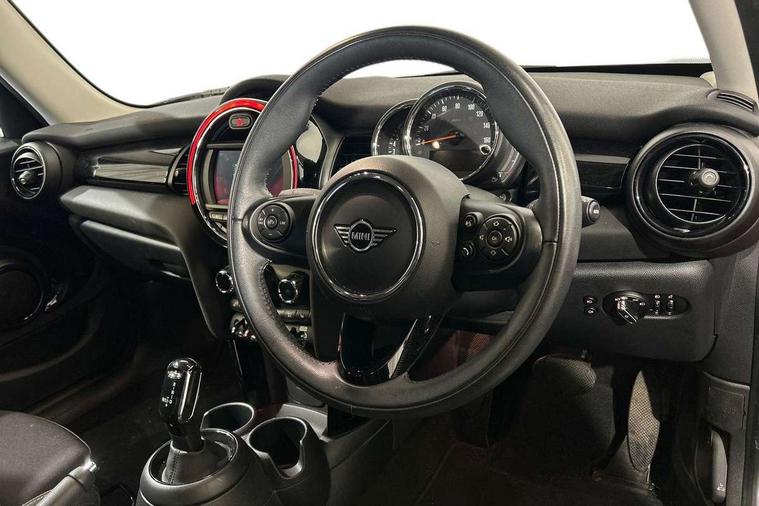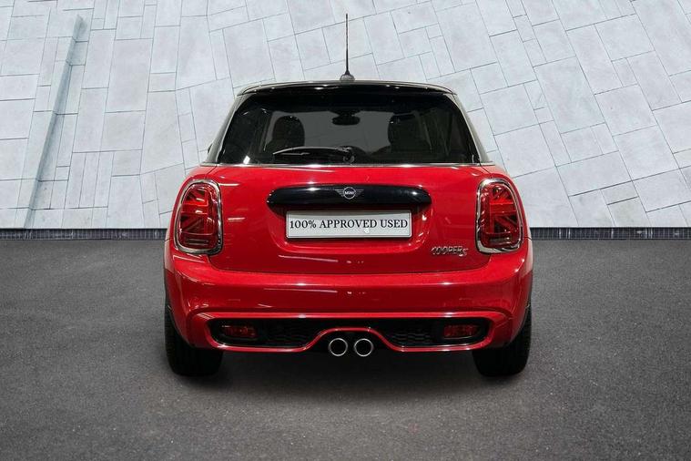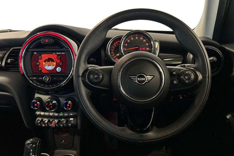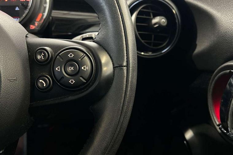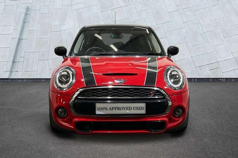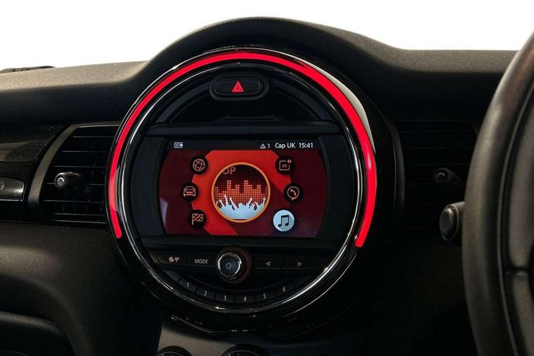 Automatic start/stop function with brake energy recuperation, Compatible mobile phone bluetooth with audio streaming, Electro-mechanical speed dependant steering assistance, Instrument cluster, Mini E-call, MINI TeleServices, On board computer, Service interval indicator, Double Vanos system, Fully variable valve control, High precision injection, Performance Control, Steptronic transmission with double clutch, 6.5" touchscreen with LED ring, FM tuner and DAB digital radio, Automatic headlight activation switch, Bonnet scoop, Chrome border honeycomb structure radiator grille with S badge, Chrome plated fuel cap, Dynamic brake lights, Electric front+rear windows, Heated rear window, Heated windscreen washer jets, LED headlight with closed ring and daytime driving lights, Metal door sill strips with Cooper S imprint, Model logo Cooper S on right of tailgate, Rain sensor window wipers, Rear fog lights, Rear LED lights with union jack design, Rear window wiper, Side scuttle panel with integrated indicator, Sun/heat protection glass, Two central exhaust tailpipes with chrome finisher, White indicator lenses, 12V Accessory socket in centre console, 4 lashing eyes in luggage compartment, 60/40 split folding rear seat, Chrome interior highlights, Colour line - Carbon black, Cupholders, Front and rear head restraints, Front and rear isofix with front passenger airbag deactivation, Glove compartment, Height and length steering column adjustment, Interior lighting with 12 basic colours selectable via toggle switch in roof, Leather gearshift lever and handbrake gaiters, LED reading lights, vanity mirror lights, front foot well light and spotlight on front seats, Manual air conditioning, Mechanical seat adjustment, driver seat height adjust, forward/back and front seats backrest, Mini logo projection on floor from drivers exterior mirror, Multifunction steering wheel, Satellite grey headlining, Storage compartments in doors, Storage pocket on back of front seats, Sunvisors with vanity mirrors, 3 point seatbelts on all five seats, 6 Airbags - front, side, head and seat belt tensioners, Anti-lock braking system (ABS), DSC - Dynamic Stability Control, Front and rear disc brakes, Hill start assist, Two tone horn, Tyre pressure monitoring system, Alarm system with tilt sensor, monitoring doors, bonnet interior and tailgate, Electronic vehicle immobiliser, Start/stop toggle with keyless go, Tool kit,
