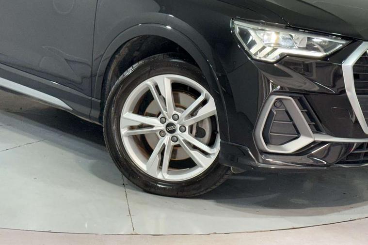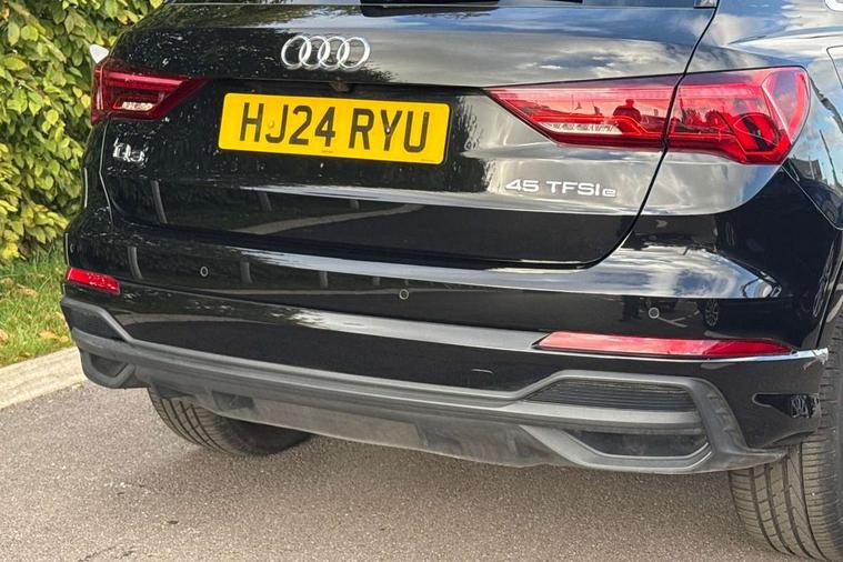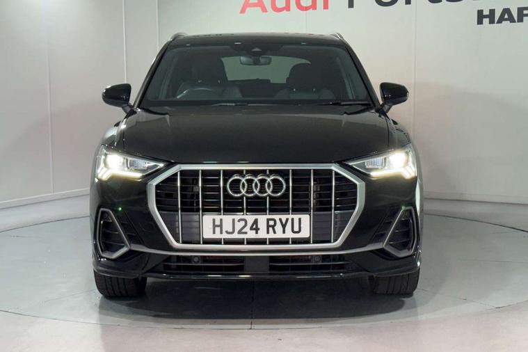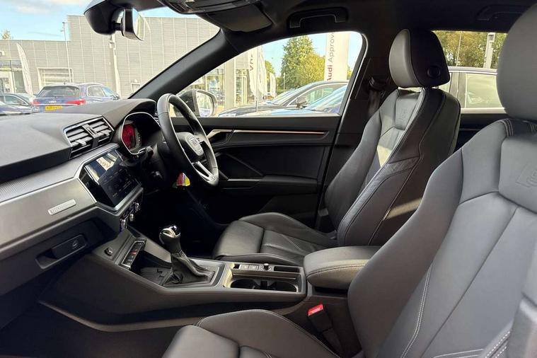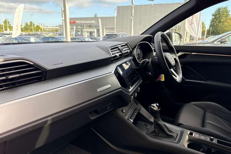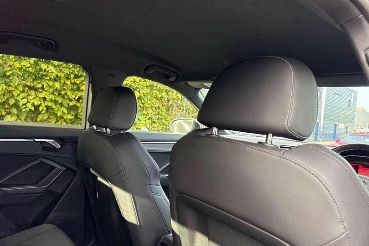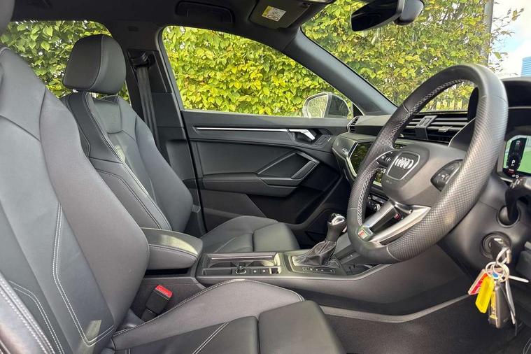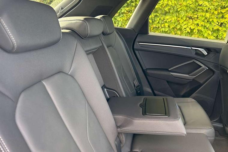 Amazon alexa Integration, Audi drive select, Audi lane departure warning, Audi Virtual Cockpit - 10.25" display, Bluetooth interface, Camera based traffic sign recognition, Legal emergency call, MMI Navigation Plus with high resolution 10.1 inch touchscreen colour display, Power operated tailgate, Progressive steering, Service interval indicator, Smartphone interface includes wireless Apple carplay/Android Auto, Start stop system with recuperation, Voice control system with natural language interaction, 3 pin 10 amp domestic charging cable, 3.6 kw On-board charger, Type 2 mode 3 32 amp charging cable, Type 2 socket for AC charging, 2 USB-C ports with charge and data functions, 6 passive loudspeakers, DAB digital radio module, Acoustic windscreen, Aluminium roof rails, Aluminium window trim, Anthracite black radiator grille, Auto dimming frameless rear view mirror, Body colour front spoiler blade, Body coloured bumpers, Electrically folding, adjustable and heated door mirrors with integrated LED side indicators and kerb view function for passenger side, Front and rear electric windows, Front fog lights, Front side air inlets in matt platinum grey, Grille vertical bars in aluminium silver/Matt, High gloss black finish B and C pillars, LED Dynamic rear indicators, LED headlights with LED daytime running lights, LED rear lights, LED third brake light, Privacy glass dark tinted rear and rear-side windows (from B-pillar backwards), Rain and light sensors, Rear diffuser grille in grained matt black, Rear diffuser strip in matt anthracite black, Rear side wing doors, Rear wiper, S line badges on front wings, S Line front and rear bumpers, Side skirt insert in matt Platinium grey, Variable front intermittent wipers, 12V socket in rear centre console, 3 seat bench in 2nd row, 3 spoke leather multifunction steering wheel features S badging and grips in perforated leather with contrast stitching, 40:20:40 folding with manual adjustment for 60:40 forwards/backwards position and backrest angle, Adjustable rear seat bench/backrest with centre armrest and cupholder, Black cloth headlining, Dual zone electronic climate control, Front and rear black floor mats with contrast stitching in rock grey, Front and rear headrests, Front and rear roof module including reading lights, Front centre armrest, Glove compartment lighting, Height and reach adjustable steering wheel, Illuminated door sill trims with S logo, ISOFIX child seat mounting for front passenger with airbag deactivation and outer rear seat including top tether attachment point for outer rear seats, Luggage compartment light, Manual front seats with height adjustment, Perforated leather gearknob, Single front passenger seat, Stainless steel luggage compartment sill finisher, Stainless steel pedals, Ambient lighting pack - Q3, Non smoking pack - Q3, 3x3 point rear seatbelts, 6 airbags - Driver, front passenger, curtain and side windows, Audi pre-sense front with pedestrain and cyclist recognition, Electrically operated child locks on rear doors, Electromechanical parking brake, Electronic stabilisation control including ABS, ASR and EDL, Front seatbelt reminder, Hill descent control, Hill hold assist, Pre sense basic, Seatbelt monitoring, Tyre pressure warning, Warning triangle and first aid kit, Anti theft alarm, Anti theft wheel bolts, Immobiliser, Remote central locking, Aluminium look interior elements, Dark matt brushed aluminium inlay, Detail dashboard around MMI touch colour display in glass look, black with surround in aluminium look, Leatherette door armrest, Tool kit, Tyre repair kit,