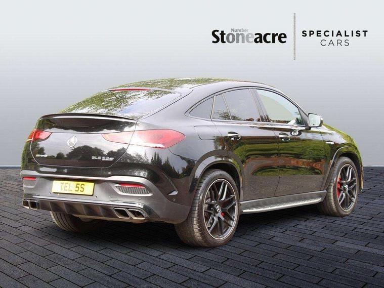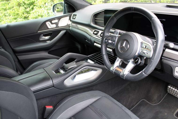 AMG drive unit, AMG DYNAMIC SELECT with a choice of driving modes (Comfort, Sport, Sport+, Slippery and Individual), Attention assist, Cockpit display 12.3" widescreen digital instrument cluster, Crosswind Assist, Cruise control, Direct steer speed sensitive steering, Easy-pack tailgate - Powered opening/closing automatically, ECO start/stop function, Head up Display, Instrument cluster with AMG menu including RACETIMER and AMG start-up display, Lane keeping assistant (LKA), Mercedes me connect including emergency call system, accident recovery, breakdown and maintenance management, Outside temperature display, rear seatbelt status indicator, Parking pilot with 360 degree camera, Service indicator (ASSYST), Smartphone integration with Apple CarPlay and Android auto, Sports direct steer system with speed sensitive power assistance, Traffic Sign Assist, Traffic sign recognition including wrong way warning function and display of posted speed limits in the instrument cluster, 4MATIC permanent four wheel drive, 85 litre fuel tank, AMG active ride control with active electromechanical stabilisers and AMG-specific control on both axles, AMG ride control+ sports suspension including air suspension system with ADS+ and auto level control depending on vehicle speed, drive program, load, AMG SPEEDSHIFT TCT 9G automatic transmission with steering column gear selector, DIRECT SELECT steering wheel gearshift paddles, EQ Boost starter alternator, Bluetooth interface for hands free and audio streaming, DAB Digital radio, Hard disk navigation with MBUX multimedia system, Adaptive brake lights, Adaptive high beam assist plus, Aluminium look, illuminated running boards with rubber studs, AMG bodystyling - front apron with distinctive air intakes, AMG side sill panels and AMG rear apron with diffuser look, AMG performance exhaust system, AMG specific radiator grille with vertical bars in high gloss chrome and AMG logo, Badging BITURBO 4MATIC+ lettering on front wings, Body coloured bumpers, Electric panoramic sunroof with sunblind, Electric windows with one touch opening/closing and obstruction sensors, LED tail lamp, Magic vision control with adaptive windscreen wiper system, Multi beam LED headlights, Privacy glass - heat insulating dark tinted glass, Rain sensing windscreen wipers, Rear wash/wipe, 2 cup holders in front and rear, 2 rear head restraints, 3 spoke AMG nappa leather steering wheel with touch control buttons and flattened bottom section, 4 way adjustable front head restraints and 2 way rear head restraints, 40:20:40 split folding rear seats, AMG Exclusive Nappa leather upholstery, AMG floor mats with AMG lettering, AMG sports seats with AMG specific seat upholstery layout, optimised lateral support and AMG badge in front seat backrests, Automatic child seat recognition sensor, Climatised front seats, Comfort front headrests, Courtesy lights in rear grab handles with reading light functionality, Dinamica microfibre roof liner in black, Driver and front passenger cup holders temperature controller, Electric adjust front headrests, Electrically adjustable front seats with memory function, Electrically height and reach adjustable steering column with memory, Folding rear armrest, Front centre armrest with stowage compartment and illuminated grab handles, Glove compartment - lockable, air conditioned and illuminated, Heated front seats, Illuminated stainless steel door sill panels with AMG lettering, Interior lighting - 64 colour Ambient lighting, Luggage compartment cover, Multi function steering wheel, Nappa leather upper dash trim, Soft close doors, Sports pedals with stainless steel surfaces and rubber studs, Sunvisors with illuminated vanity mirrors, Thermotronic automatic 4 zone climate control, Touchpad, Two (type C) USB ports in centre console, Acoustic comfort pack - GLE Coupe, Air balance package - GLE Coupe, AMG night pack - GLE Coupe, Driving assistance plus pack - GLE Coupe, Interior chrome package - GLE, KEYLESS-GO Comfort package - GLE Coupe, Memory package - GLE Coupe, Mirror package - GLE Coupe, Warmth comfort pack - GLE Coupe, 3x3 point rear seatbelts, Active bonnet, Active braking assist, Airbags - windowbags, Anti-lock braking system (ABS), Child proof door locks, Downhill speed regulation (DSR) with switch and variable speed control, Driver/front passenger airbag, Drivers knee airbag, Electronic four wheel traction control, Electronic parking brake, Electronic stability programme with acceleration skid control, First aid kit, warning triangle and high visibility jacket, Front side airbags, Hill hold function, Hill start assist, ISOFIX child seat attachment points two outer rear seats, Perforated front brake discs and red brake calipers with AMG lettering, Pre-Safe anticipatory safety system, Rear side airbags, Tyre pressure monitoring system, Alarm system/interior protection/immobiliser, Chrome surround electric key, Remote central locking, Urban guard vehicle protection, Dashboard and door, AMG carbon fibre, 22" AMG cross spoke light alloy wheels in black, Summer tyres with noise reducing absorber, TIREFIT with tyre inflation compressor,