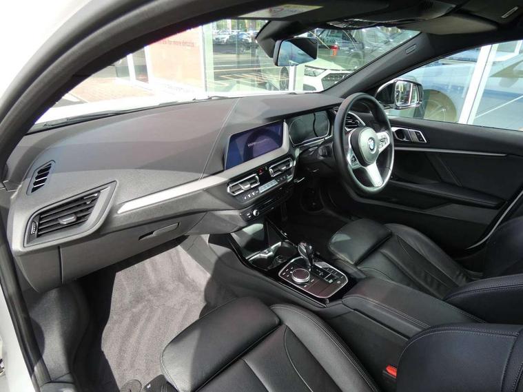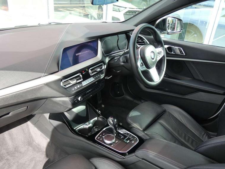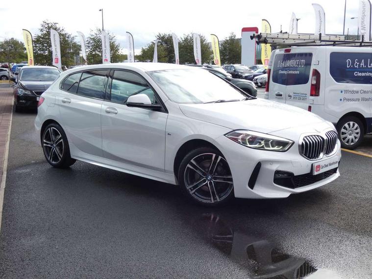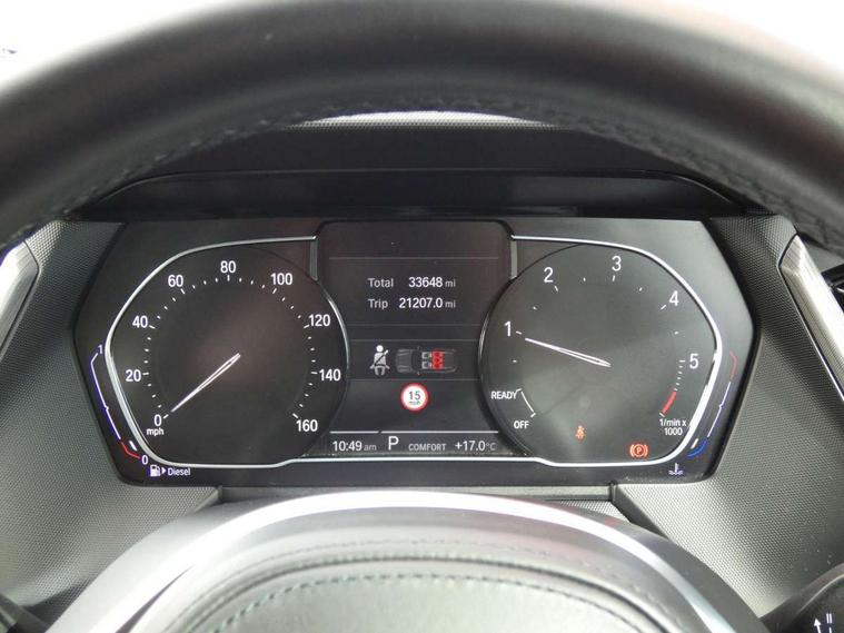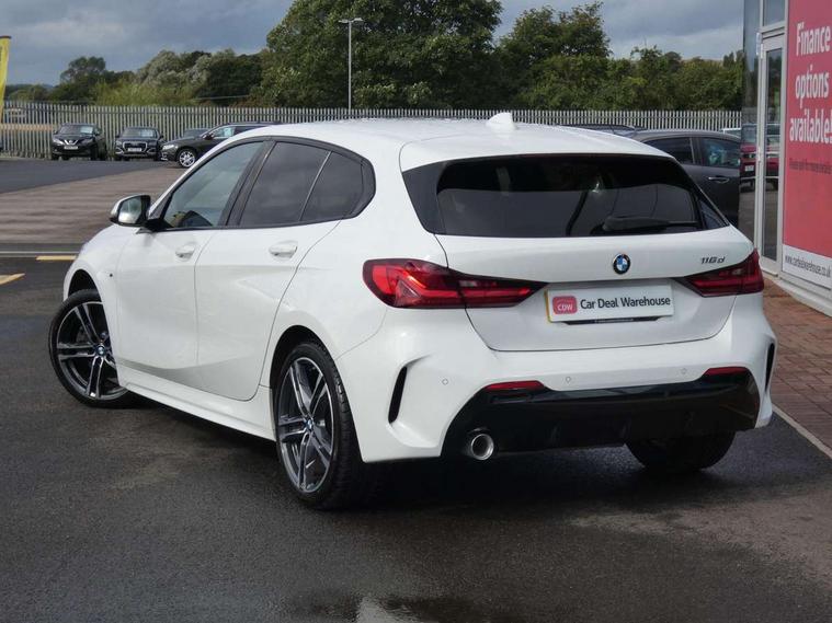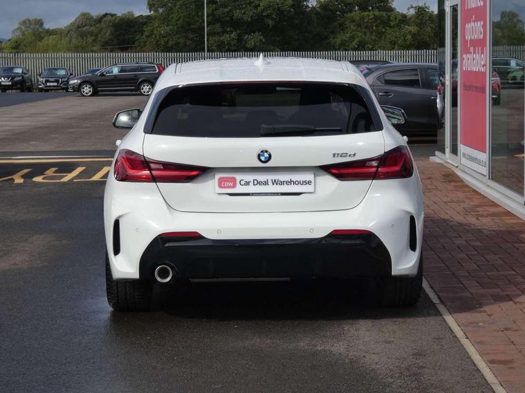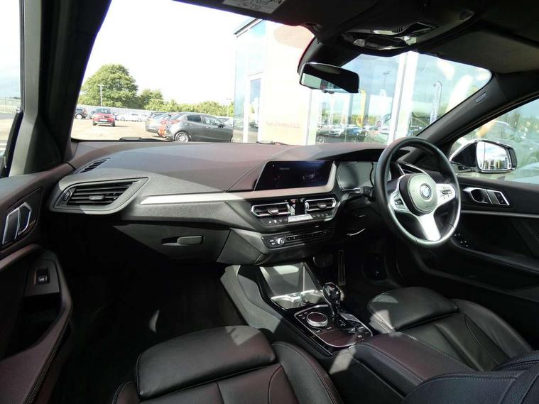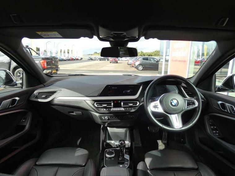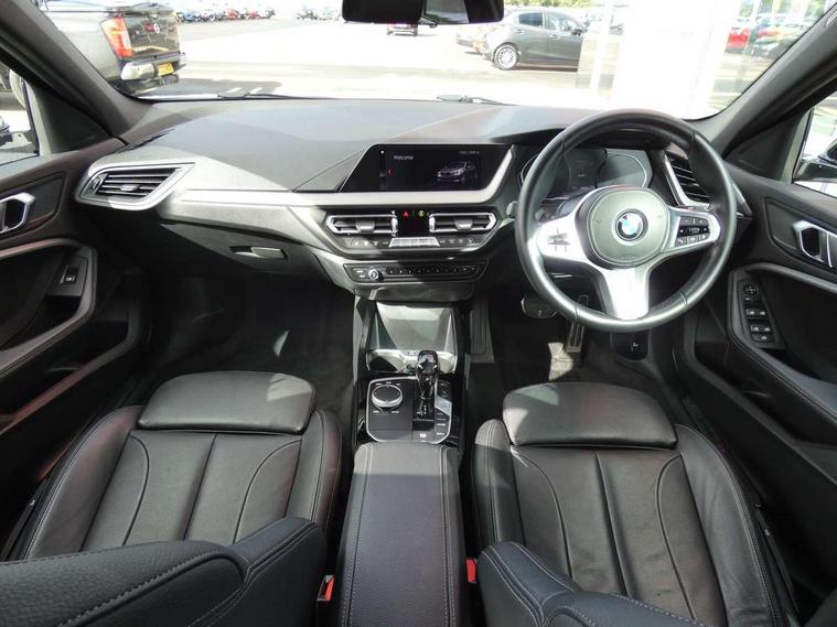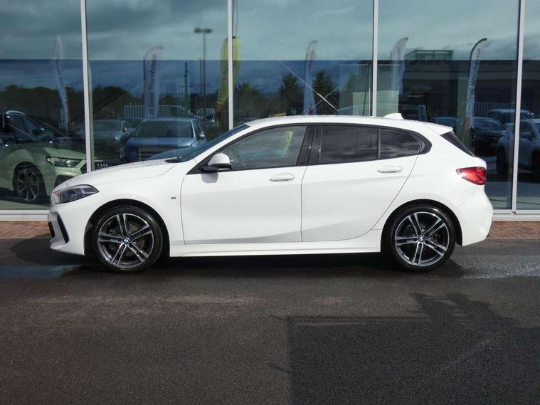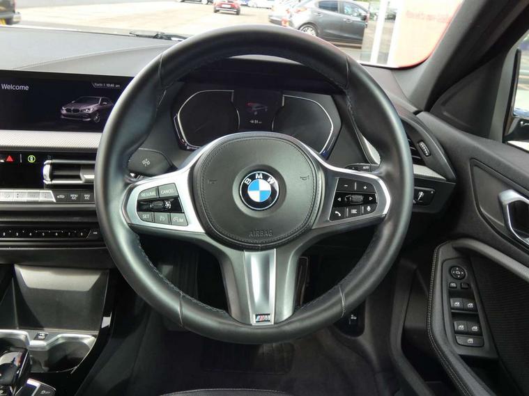 Active guard plus, Attentiveness assist, BMW Online services, BMW Teleservices, Check Control warning system for monitoring of lights and door/luggage compartment open warning, Connected eDrive Services, Eco pro mode, Electric power steering with Servotronic steering optimised at all speed ranges, Integrated owners handbook, Oil sensor for level and grade, On board computer, Optimum shift indicator, Personal Profile, Pull away assistant, Speed limiter, Aluminium lightweight construction, Anti roll bar front and rear, Balancer shaft, Diesel particulate filter, Drive Performance Control, Electronic differential lock, M sports suspension + self levelling, Bluetooth audio streaming, DAB Digital radio, Auto dimming rear view mirror, Automatic headlight beam throw control, Body colour door handles, Body colour mirror caps, Chrome 'M' logo side designation, Chrome exhaust tailpipe in single, round (Exhaust tailpipe, stainless steel - single, round), Chrome kidney grille frame with Satin Aluminium struts, Direction indicator side lights in exterior mirrors, Electric folding and anti dazzle exterior mirrors, Fading support, Follow me home headlights, Front and rear electric windows with open and close fingertip control, anti trap facility and comfort closing, Front door sill finishers in black plastic with BMW designation, Green tinted heat protection glazing, Heated, electrically adjustable exterior mirror aspheric on driver side, convex on passenger side, High gloss shadow line exterior trim, High gloss shadowline window frame, Recess cover mirror frames and B/C pillar embelisher trim, High level third brake light, LED daytime running lights, LED eyebrow turn indicators, LED front fog lights, Lightweight engineering, Matt black air guide grilles, Model designation on right side of tailgate, Nearside reverse light in rear light cluster, Rain sensor including auto headlights activation, Rear fog lights, Rear window wiper, Shark fin antenna, Visible VIN plate, Welcome lighting, Windscreen wipers with integrated washing jets, 12V power socket in centre console, 2 cupholders in front centre console, 3 rear seat head restraints, 3 spoke M sports design leather steering wheel finished in nappa leather with specific M badge, Anthracite headlining, Anthracite Velour floor mats, Child seat ISOFIX attachment for two outer rear seats and front passenger seat with anchorage points, Conditioned based service, Dakota leather upholstery with perforation and contrast stitching, Driver and front passenger seat heating, Driver side folding compartment in instrument panel, Folding rear clothes hook, Folding rear seats, Four grab handles integrated in roof lining, Front and rear door pockets, Front and rear side armrest integrated into door trim, Front armrest foldable with integrated storage compartment, Front sports seats with electric side bolster adjustment, Glove compartment, Height adjustable front head restraints, Manual adjust steering wheel, Multi-function controls for steering wheel, Rear seat backrest with manual 60:40 split folding with 3 top tether clips integrated on rear of seat panels, Storage compartment in centre console, Sun visors with vanity mirrors and insert tab, Two zone automatic air conditioning, Extended Lighting pack - 1 Series, Extended storage pack - 1 Series, Interior lights pack - 1 Series, Luggage compartment pack - 1 Series, M Sport exterior styling aerodynamics pack - 1 Series, 2 tone horn, 3 point seatbelts on all seats, front pyrotechnic belt tensioners, stopper and belt force limiters, rear coded belt buckles, Airbags - Front driver and passenger, front and rear head, front side, curtain head protection, Anti lock braking system (ABS) with brake assist, BMW emergency call, Brake drying, Braking readiness, Crash sensor activating central locking release, hazard warning lights, fuel cut off, interior lighting + activation of safety battery terminal clamp, Driver and front passenger seat belt security check, Dynamic stability control + (DSC+), Dynamic Traction Control - DTC, Electrically operated hand brake, Front and rear disc brakes, Front passenger manual airbag deactivation, Rear child proof door locks, Seatbelt warning, Side impact protection, Tyre pressure monitoring system, Warning triangle and first aid kit, Automatic drive away locking facility, Central locking switch for all doors, fuel filler cap and luggage compartment, Deadlocking function system to all doors, Incorrect fuel protection system, Locking wheel bolts, Remote control with integrated key with High-gloss Black inlay and M designation and 1 button for open/ close lock, window, open luggage compartment, Start/stop button with comfort go keyless engine start and auto start stop deactivation button, Thatcham Cat.1 alarm and immobiliser, Contrast stitching on instrument panel, Reduced rolling resistance tyres,