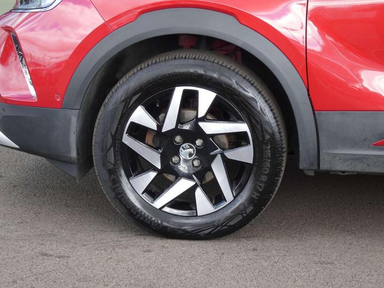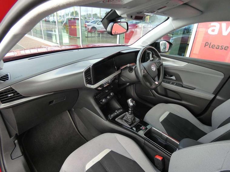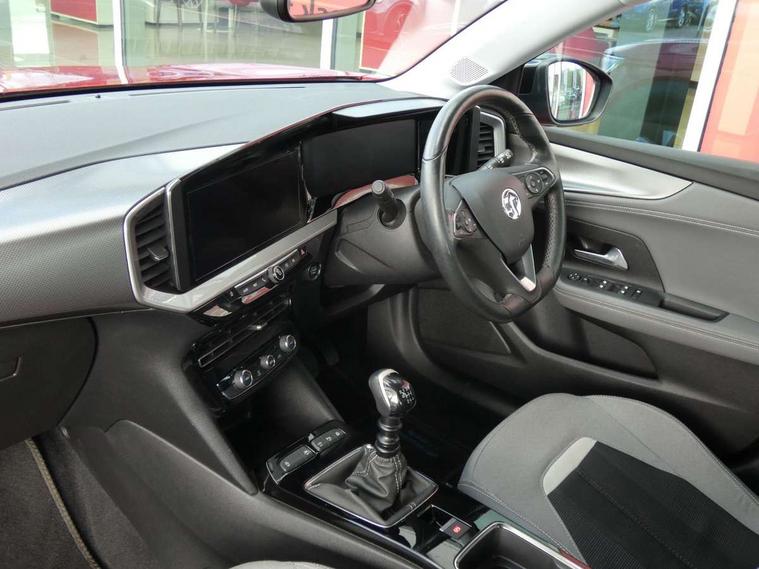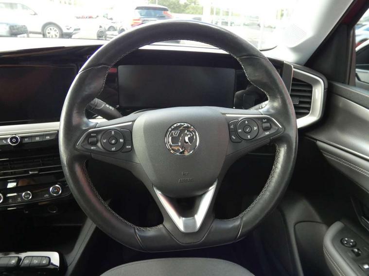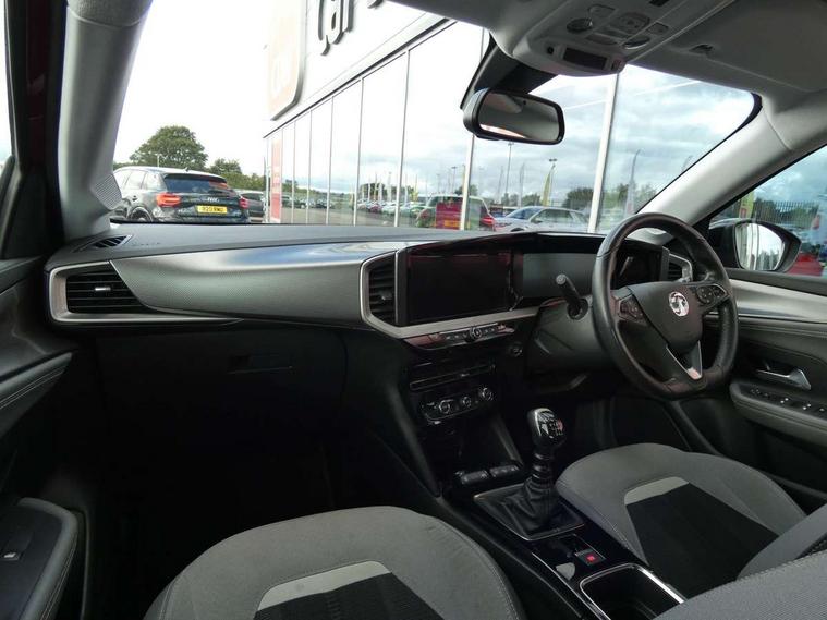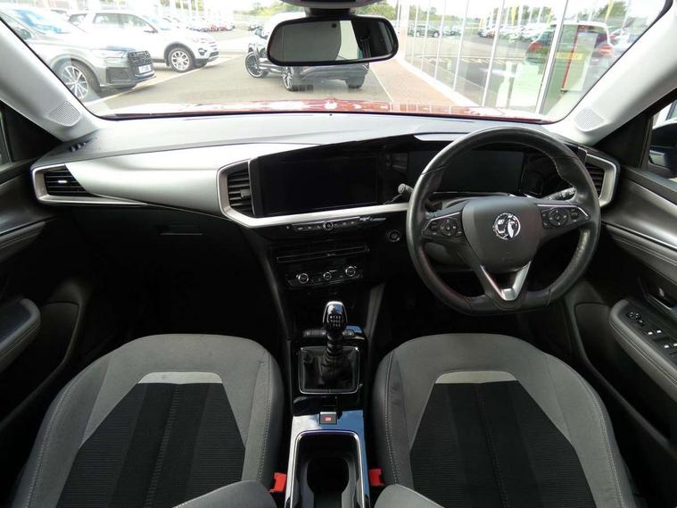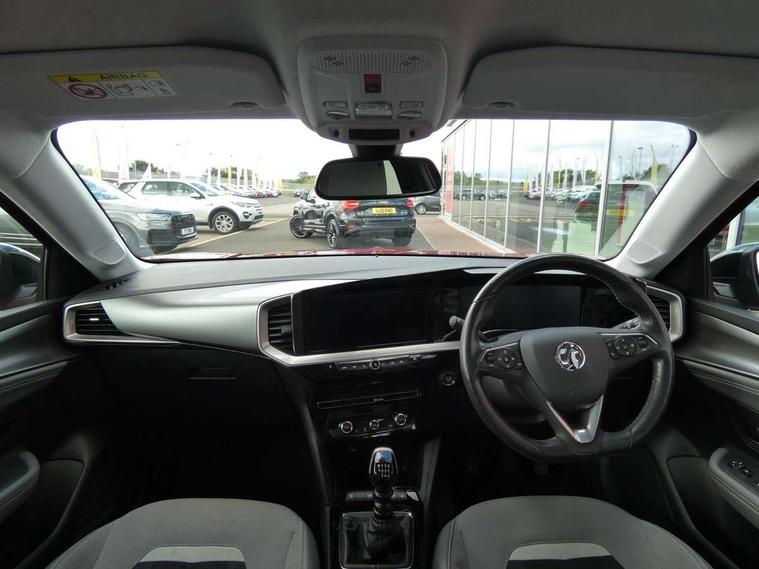 Automatic adaptive cruise control, Driver drowsiness alert system, Engine start/stop button, Front and rear parking distance sensors, Front camera system, Lane keep assist system (LAS) with Lane departure warning system (LDWS), Lights on audible warning, Multi function trip computer, Panoramic rear view camera, Power assisted speed sensitive steering, Side blind spot alert and flank guard, Smartphone integration compatible with Apple CarPlay and Android Auto, Speed sign recognition, Start/stop system, Vauxhall connect with e-Call, 6 speed manual transmission, Chassis drive line front wheel drive, Electronic fuel system, Front chassis equipment, Rear chassis equipment, Standard chassis suspension system ride handling, Bluetooth A2DP audio streaming, Flexible Roof Mounted Radio Aerial, Front USB connection, Mobile phone portal - bluetooth connect, vehicle microphone, handsfree calls, SMS read out and reply, phone book access, Multimedia Navi pro infotainment with satellite nav, 10" colour touchscreen, 6 speakers, DAB radio, 12" instrument panel, Apple carplay/Android auto, Steering wheel mounted controls, Two rear USB sockets, 3rd brake light, Adaptive brake lights, Automatic lighting control with tunnel detection, Automatically dimming anti dazzle rear view mirror, Black door mirror housings, Black rear spoiler, Body colour door handles, Body colour front and rear bumpers, Chrome effect skid plates, Chrome effect upper window moulding, Electrically adjustable, heated and folding door mirrors, Electrically operated front and rear windows with safety auto reverse and one touch up/down facility, Hazard warning lights, Heated rear window+rear wash/wipe, High beam assist, LED daytime running lights, LED front fog lamps, LED side repeat indicators, LED tail lights, Manual headlamp level control, Rear foglight, Rear side wing doors, Rear wiper, Reversing light, Solar heat absorbing windscreen and windows, Two speed rain-sensitive windscreen wipers with variable intermittent wipe, Windscreen and side window demist vents, 12V Accessory socket, 3 seat bench in 2nd row, 3 spoke flat bottomed leather steering wheel with satin chrome bezel, 4 speed fan with illuminated controls, 6 way manual adjustable driver fore/aft, up/down with reclining seatback, 6 way manual adjustable front passenger fore/aft, up/down with reclining seatback, Air recirculation system, Cabin particulate filter - removes dust, airborne particles and pollen, Centre console with two cup holders at front and one in rear, Chrome effect interior door handles, Door pockets with two litre capacity, Driver and passenger seat pocket, Driver and passenger sun visors with vanity mirror, Electronic climate control (ECC), Fabric/leather upholstery with jet black fabric side bolsters, Four adjustable facia vents, Four load restraint lashing eyes, Front centre armrest with storage, Front map reading lights, Front seat back storage pockets, Fully carpeted load area, Heated front seats, Heated steering wheel, Height adjustable front/rear head restraints, Illuminated load area, Interior courtesy light, Interior tailgate handle, Luggage compartment cover, Luggage compartment lighting, Reach + rake adjustable steering column, Single front passenger seat, Twin gas assisted tailgate struts, 2x Isofix child seat fitting on outer rear seats, 3x3 point rear seat belts, Anti-lock braking system (ABS), Automatic emergency city braking, Child proof locks on rear doors, Cornering brake control, Deactivation switch for front passenger front and side impact airbags, Drag torque control, Driver and front passenger airbags, front seat side impact airbags, full size curtain airbags, Electronic brake force distribution, Electronic Stability Programme (ESP), Emergency brake assist, Forward collision alert at all speed, Hill start assist, Inertia reel lap and diagonal seatbelts for all seats, Seatbelt unfastened audible warning and warning light, Straight line stability control, Traction control, Tyre pressure monitoring system, Electronically protected audio equipment, Freewheeling door locks, Immobiliser, Key left in ignition audible warning, Keyless entry and start, Locking wheel nuts, Remote control ultrasonic security alarm system, Visible vehicle identification number, Atlantis black trim inserts of front doors, Black facia with silver trim insert, Instrument panel bar in Light Gravel, 17" bi colour alloy wheels,