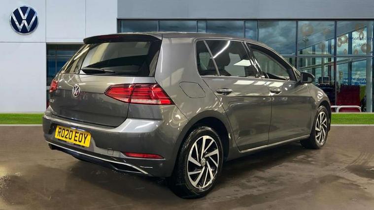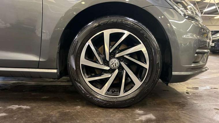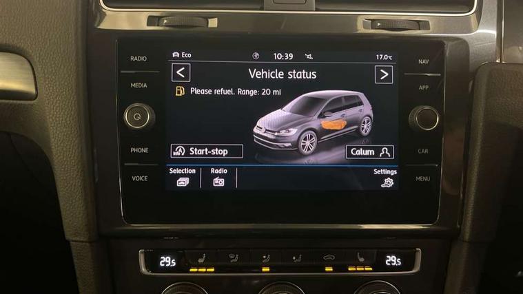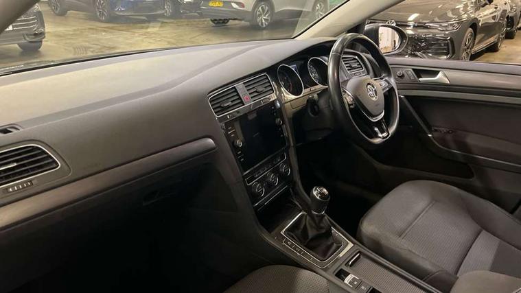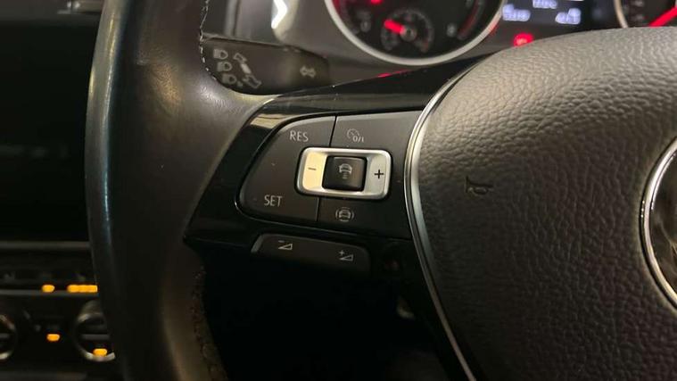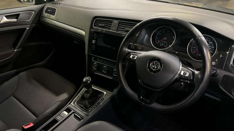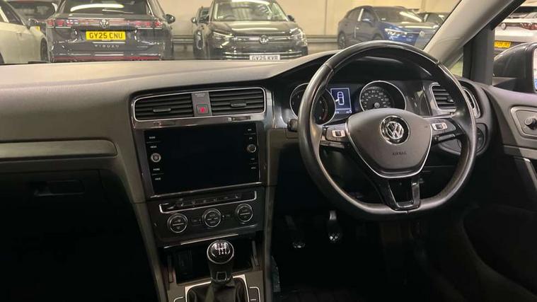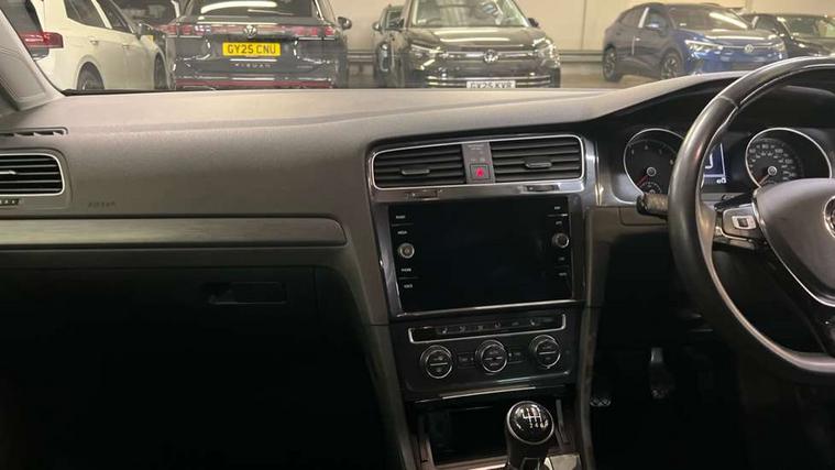 'Lights On' Reminder warning buzzer, ACC - Adaptive cruise control with front assist, forward collision warning, distance monitoring, city emergency brake and speed limiter, Bluetooth telephone and audio connection for compatible devices, Brake pad wear indicator warning light, Driver alert system, Driving Mode Selection with four preset modes - Eco, normal, sport or individual modes, Multifunction computer with visual gear change recommendation for fuel consumption, Power assisted speed sensitive electro-mechanical steering, Push tank flap, Speed limit display, Speedo, rev counter, electronic odometer, trip, service interval display, exterior temperature and fuel gauge, Stop/start system, Think blue trainer driver tips and journey analysis, Warning buzzer and light for front seatbelts unfastened, Battery regeneration during braking, XDS electronic differential lock, Composition media system, DAB Digital radio receiver, Driver Personalisation profile selection, MP3/WMA compatability, Multi device interface (MDI) via USB connection, Premium USB cable in choice of either Apple or Android smartphone compatibility, SMS Functionality, Title and cover art display, USB and SD card connectivity, Volkswagen media control, Black front air intake and radiator grille with chrome insert, Black rear diffuser, Body colour bumpers, Body colour door handles, Body colour door mirrors with integrated indicators, Dusk sensor + automatic driving lights, Electric front windows, Electric rear windows, Electrically adjustable and heated door mirrors, Fully galvanised body, Heated rear windscreen, High level 3rd brake light incorporating LED Technology, LED front fog lights with static cornering light function, Range adjustable headlights via infotainment system with LED daytime running lights, Rear fog lamp, Rear number plate lights incorporating LED technology, Rear tinted glass 65% light absorbing from B pillar backwards, Rear window aerial, Rear window wash/wipe with intermittent wipe, Reflectors in all doors, Tailgate with integrated rear roof spoiler, Windscreen wipers/ intermittent wipe + 4 position delay, 12V socket in luggage compartment, 3 rear headrests, 4 load lashing points in luggage compartment, 60/40 split folding rear seat backrest, Bag hook in luggage compartment x 2, Climate control - 2 zone electronic air conditioning with automatic air recirculation and allergy filter, Cooled glovebox, Cover for storage compartment in centre, Dust/pollen filter, Front and rear reading lights X 2, Front centre armrest with storage compartment and two rear air vents, Front seat back storage pockets, Grab handles front x 2, rear x 2 with integrated coat hooks, Height and reach adjustable steering wheel, Illuminated vanity mirrors, Instrument lighting white adjustable panel illumination, Interior light delay, Isofix preparation for 2 rear child seats, Load through provision with rear centre armrest and cupholders x2, Luggage compartment lighting, Overhead storage box, Pearl grey headlining, Storage box in luggage compartment, Storage compartment in roof console with cover, Storage compartments in centre console, Storage compartments in front doors, Storage compartments in rear doors, Stowable luggage compartment cover, Sun visors, Variable boot floor, height adjustable and removable, Convenience Pack - Golf, Mirror pack - Golf, Winter pack - Golf, 3 rear three point seatbelts, Airbags - Driver's and front passenger's, curtain airbag, Driver's knee, front side impact and passenger's airbag deactivation switch, Anti-lock Braking System (ABS) with Hydraulic Brake Assist (HBA), Automatic post collision braking system, Child locks on rear doors, Driver/Passenger optimised head restraints, Electronic parking brake with auto hold, Electronic stability control (ESC) including Electronic differential lock (EDL) and ASR (Traction control) with deactivation via infotainment system, Front ventilated disc brakes and rear disc brakes, Pre crash preventive occupant protection, Three point height adjustable front seatbelts with tensioners, Tyre pressure loss indicator, Alarm with interior protection and deactivation via infotainment system, Electronic engine immobiliser, Brushed dark silver decorative inserts in dash and door panels, Chrome plated air vent surround, Chrome-plated light switch surround, Polar night black decorative inserts in centre console, Steel space saver spare wheel,