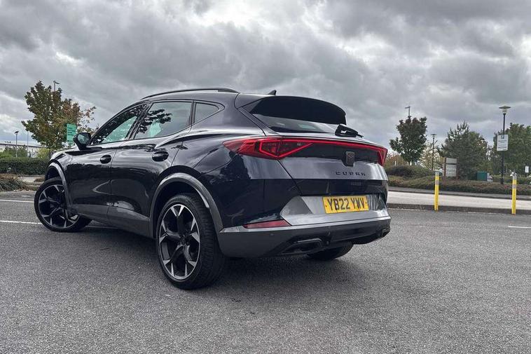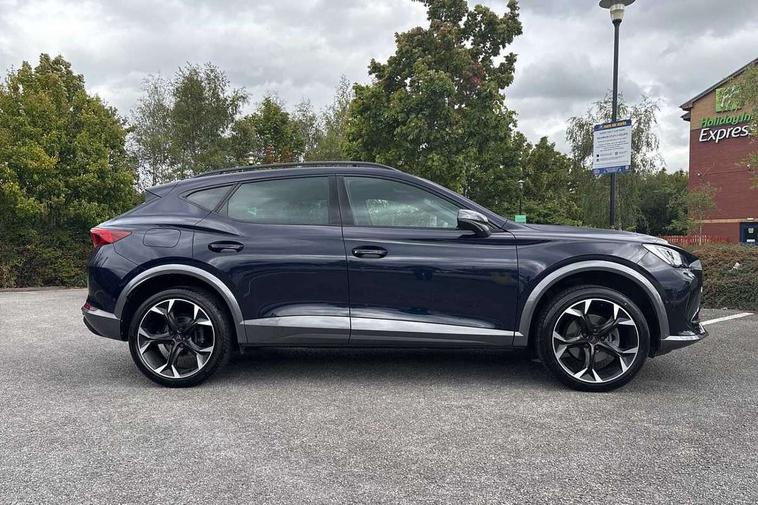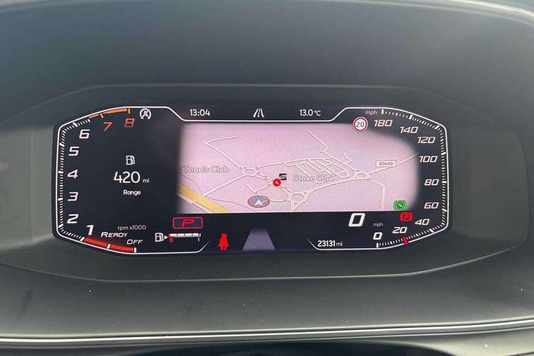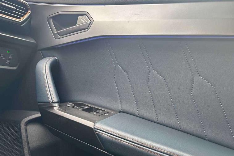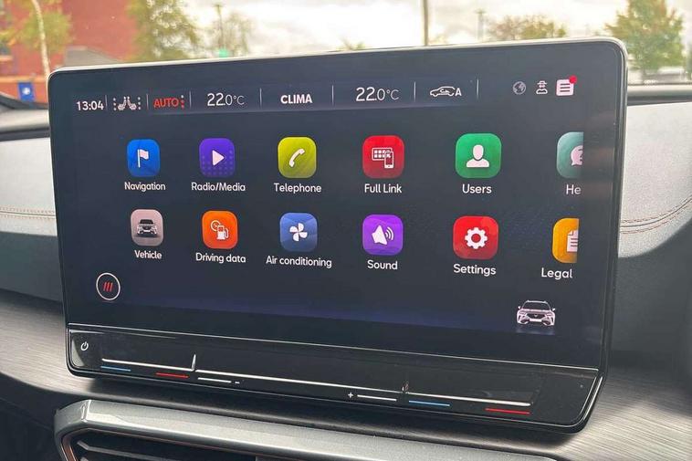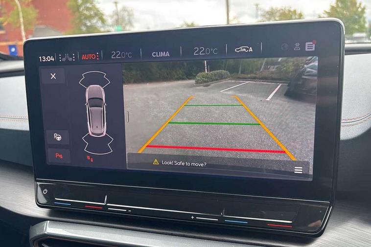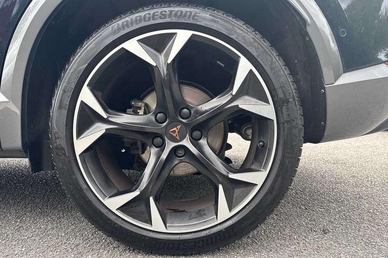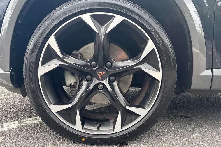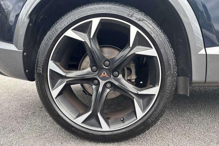 Digital cockpit and configurable dashboard, Driver alert system, Driving profile selection, E-call, Forward collision warning with automatic braking, Lane assist, Navigation system with 12'' Touchscreen Display, Park assist (inc front/rear parking sensors), PAS, Predictive adaptive cruise control with speed limiter, Rear view camera, RPM, trip computer, outside temp gauge, instrument light brightness, low fuel warning light, lights on reminder, gearshift indicator, Service interval indicator, Start/stop system with regenerative braking, Voice control system, Wireless apple carplay, Wireless phone charger, Electronic locking differential and dynamic traction support, Standard suspension, 2 front and 2 rear USB type C sockets, Auxiliary input socket, DAB radio, Auto dimming rear view mirror, Body colour door handles, Body coloured bumpers, Dark grey wing mirror, Daytime running light with automatic headlight control and coming home feature, Dynamic headlight range control, Electric front/rear windows, Electrically adjustable heated and folding door mirrors with memory function, Front fog lamps with cornering function, Gloss black roof rails and window surrounds, LED Headlights, LED Taillights with dynamic indicator, Rain sensing wipers, Rear diffuser with black simulated exhaust pipes, Rear side wing doors, Rear wash/wipe, Third brake light, Tinted rear windows, Welcome lights, 12v power supply in centre console, 12V socket, 12v socket in loadspace, 2 front and 2 rear reading lights, 230V socket, 3 seat bench in 2nd row, 60/40 split rear bench seat with armrest and mechanical seat release, Dust/pollen filter, Front and rear head restraints, Front centre armrest, Height/reach adjust steering wheel, Illuminated interior front door sills, Illuminated sunvisor with mirror, Isofix, Leather multi function heated steering wheel with gear shift paddles, Luggage tie-down hooks, Single front passenger seat, Three zone climate control with control panel in rear, Variable luggage/load compartment floor, Wraparound lighting, Genuine Nappa leather Pack - Cupra, 3 point seatbelts on all rear seats, ABS, Brake control system - ESC and brake booster, Child proof door locks, Driver and front passenger airbags with front passenger airbag de-activation, Electronic parking brake, Front and rear disc brakes, Front side curtain airbags, Hill hold control, Seat belt reminder for front and rear seats, Tyre pressure monitoring system, Anti theft alarm system, Keyless entry and start system (KESSY), Locking wheel bolts, Copper and aluminium interior detailing, 19" 'Exclusive' machined sport matte black and silver alloy wheels,