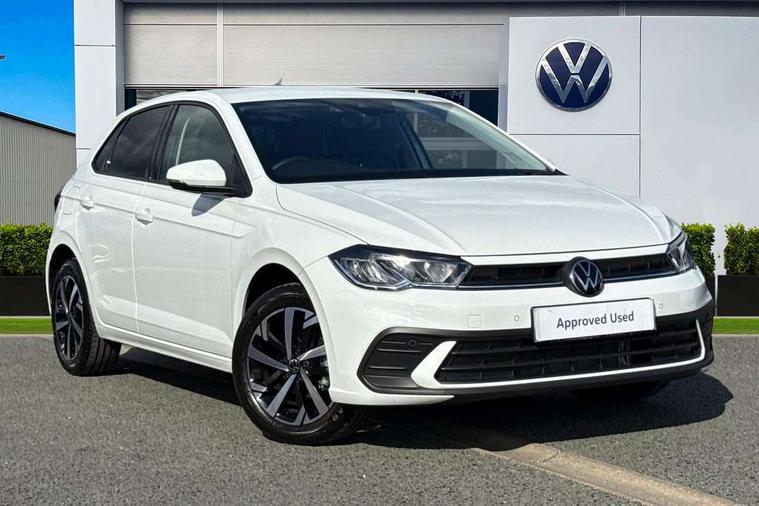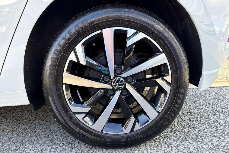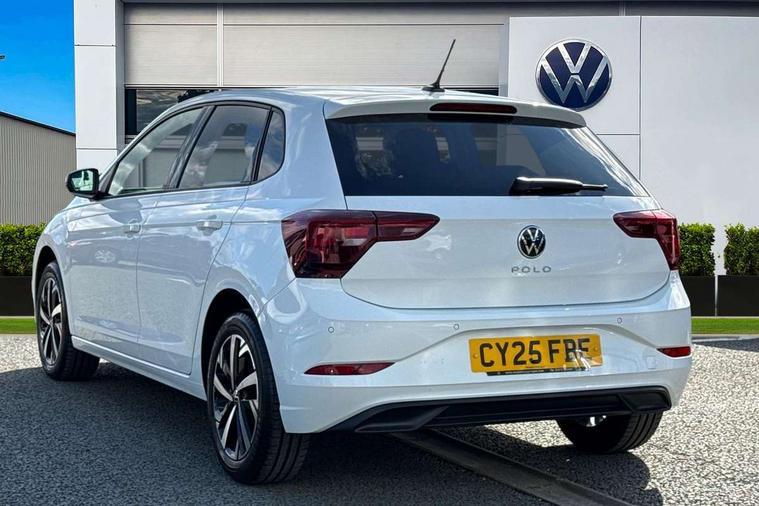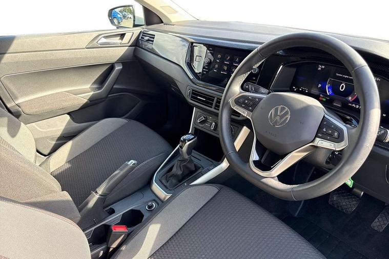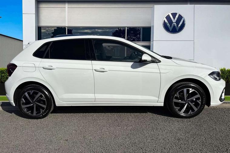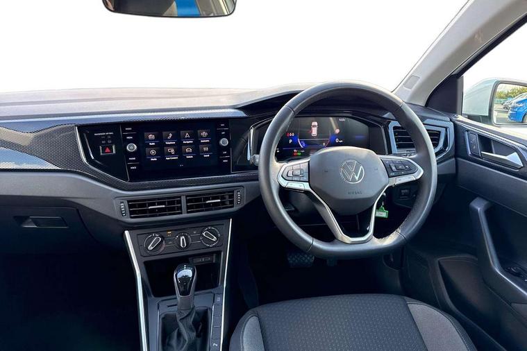 Advanced driver attention and drowsiness monitor, Bluetooth mobile phone interface, Dynamic road sign display, Emergency call service, Mobile phone preparation with inductive charging function, Multifunction front facing camera for distance control, Power assisted speed sensitive steering, Predictive adaptive cruise control without follow-to-stop and speed limiter, Preparation for navigation system with media and internet package, Preparation for We connect and We connect plus, Rear view camera, Speedo and rev counter, electronic odometer, trip, service interval display and exterior temperature gauge, Standard rear axle, Travel Assist - Lane keeping system and traffic jam assist, Travel assist including emergency assist, Trip computer, Warning signal and warning light for front and rear seatbelts not fastened, Washer fluid level indicator, Wireless app connect, Front wheel drive, Rear shock absorpion, Start-stop system with battery regeneration (recuperation - energy recovery during braking), DAB Digital radio, Diversity antenna for FM reception, Automatic dimming interior rear view mirror, Automatic headlight control with LED separate daytime running lights with coming/leaving home function, Body colour bumpers with chrome inserts, Body colour door handles, Body colour door mirrors, Electric front windows, Engine badge deletion, Headlight range adjustment, Heat insulating and laminated safety glass windshield, LED Headlights, LED rear combination lamps, Power folding adjustable/heated exterior mirrors and front passenger exterior mirror lowering function, Rain sensor, Rear electric windows, Rear fog light, Rear side wing doors, Rear tinted glass from B-pillar backwards approx 65% tinted, Rear windscreen washer and wiper with interval delay, Third brake light, 12V power socket in centre console, 2 front and 2 rear reading lights with switch off delay and dimmer, 2 USB-C ports in the front, 2 USB-C charging sockets on the center console in the rear, 3 rear head restraints, 60/40 split folding rear seat and rear seat bench not split, Ceramique roof lining, Chrome plated radiator grille inserts, air vent surrounds and light switch surrounds, Door and side trim panel, Driver and front passenger seat height adjustment, Driver/passenger sunvisors with illuminated vanity mirrors, Front centre armrest, Front seat backrest storage pockets, Front standard seats, Handbrake lever handle in leather, Hartley/Thomas cloth upholstery, Headliner in recycled material, Isofix child seat preparation easy-fit (for two outer rear seats, and front passenger seat) compatible with I-size, Leather trimmed gear knob, Luggage compartment cover, Luggage compartment lighting, Removable luggage compartment floor, Single front passenger seat, Standard climatic zones, Standard pedal cluster, Three spoke leather wrapped multifunction steering wheel with shifting paddles, Light and vision pack - Polo, 3 point height adj front seatbelts + pretensioners, 3 point seat belt for centre rear seat, 3 point seatbelts, outer rear with ECE lable, ABS, Driver and front passenger airbag with front passenger airbag deactivation, Drivers and front passengers safety optimised head restraints, ESC (Electronic stability control) + EDL (Electronic Differntial lock) and ASR (Traction control), Extended and predictive pedestrian/ cyclist protection, Front assist with autonomous emergency braking (for Adaptive Cruise Control ACC up to 130 mph), Front curtain and side airbags with center airbag, Front disc brakes, Hill hold control, Manual child lock in rear doors, Rear drum brakes, Single tone horn, Tyre pressure loss indicator, Alarm with interior protection, Anti-theft alarm system with interior monitoring, backup horn, and towing protection, Anti-theft wheel bolts, Electronic engine immobiliser, Lava stone black gloss/matt decorative inserts in dash and front door panels, 16" Torsby alloy wheels, Low rolling resistance tyres,