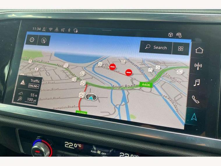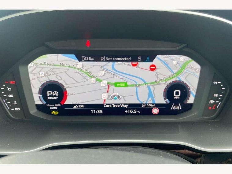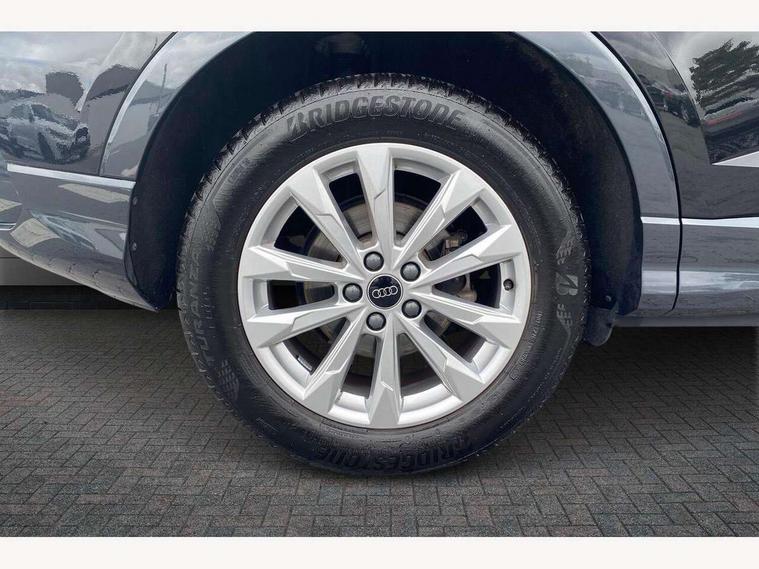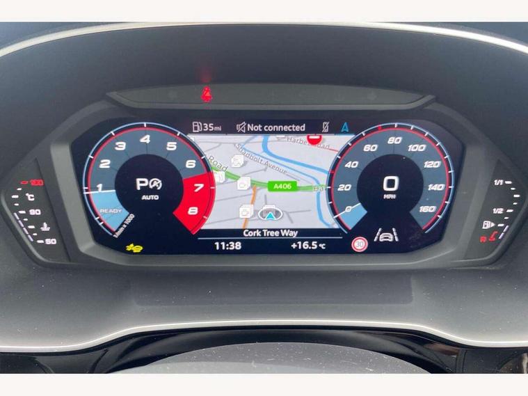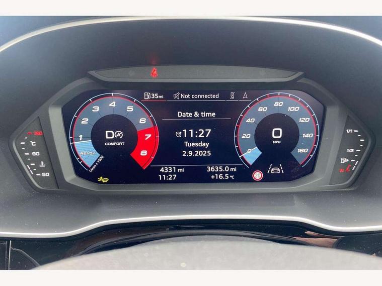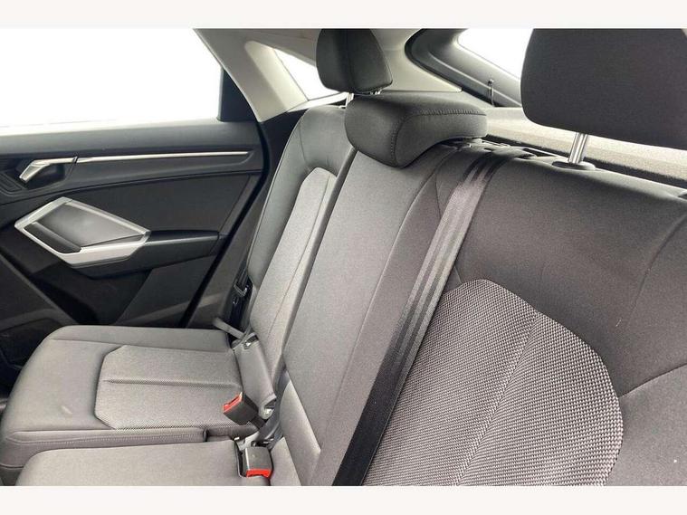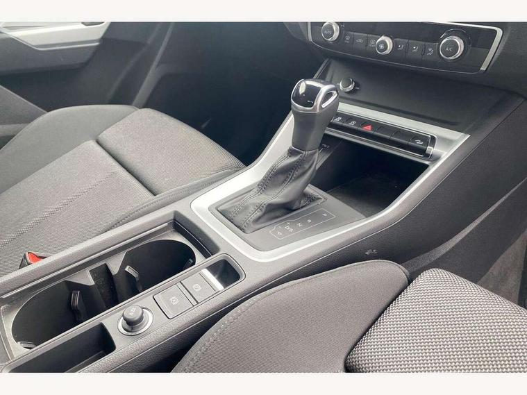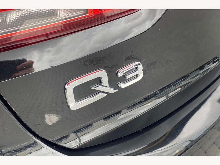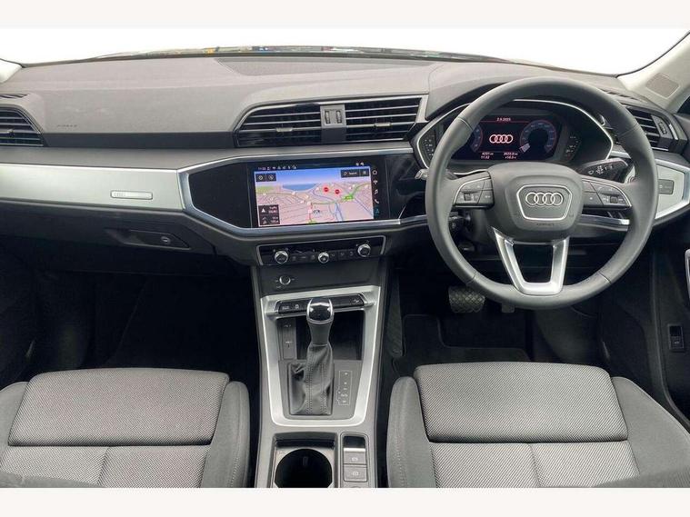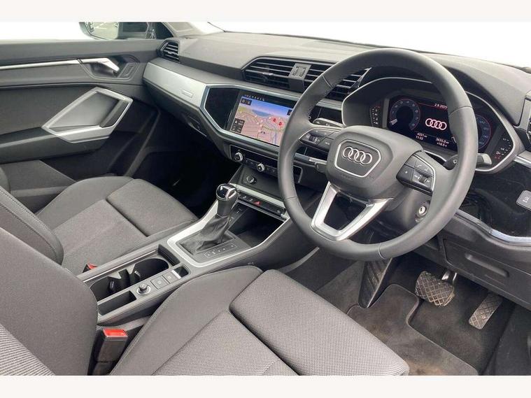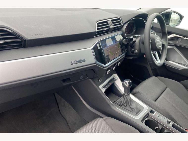 Audi connect safety and service, Audi drive select, Audi lane departure warning, Audi Virtual Cockpit - 10.25" display, Bluetooth interface, Camera based traffic sign recognition, Distraction and Fatigue warning, Legal emergency call, MMI Navigation Plus with high resolution 10.1 inch touchscreen colour display, Power operated tailgate, Progressive steering, Service interval indicator, Smartphone interface includes wireless Apple carplay/Android Auto, Start stop system with recuperation, Voice control system with natural language interaction, Sports suspension, 2 USB-C ports with charge and data functions, 6 passive loudspeakers, DAB digital radio module, Acoustic windscreen, Aluminium window trim, Auto dimming door mirrors, Auto dimming frameless rear view mirror, Bumpers and underbody protection in contrasting manhattan grey paint finish, Diffuser grille in grained matt black, Diffuser trim in manhattan grey metallic, Door sill trims with illuminated aluminium inlay, Electrically folding, adjustable and heated door mirrors with integrated LED side indicators and kerb view function for passenger side, Front and rear electric windows, Front fog lights, Front side air inlets in Manhattan grey metallic, Grille surround in aluminium silver matt, High gloss black finish B and C pillars, Honeycomb design radiator grille in matt anthracite black, LED headlights with LED daytime running lights, LED third brake light, Rain and light sensors, Rear side wing doors, Rear wiper, Variable front intermittent wipers, 12V socket in rear centre console, 3 seat bench in 2nd row, 3 spoke multi-function leather steering wheel, 40:20:40 folding with manual adjustment for 60:40 forwards/backwards position and backrest angle, Dual zone electronic climate control, Electric lumbar support, Front and rear floor mats, Front and rear headrests, Front centre armrest, Height and reach adjustable steering wheel, ISOFIX child seat mounting for front passenger with airbag deactivation and outer rear seat including top tether attachment point for outer rear seats, Luggage compartment sill protection in stainless steel, Lunar silver cloth headlining, Manual front seats with height adjustment, Single front passenger seat, Non smoking pack - Q3, 3x3 point rear seatbelts, 6 airbags - Driver, front passenger, curtain and side windows, Audi pre-sense front with pedestrain and cyclist recognition, Electrically operated child locks on rear doors, Electromechanical parking brake, Electronic stabilisation control including ABS, ASR and EDL, Front seatbelt reminder, Hill descent control, Hill hold assist, Pre sense basic, Seatbelt monitoring, Tyre pressure warning, Warning triangle and first aid kit, Anti theft alarm, Anti theft wheel bolts, Immobiliser, Remote central locking, Aluminium look interior elements, Detail dashboard around MMI touch colour display in glass look, black with surround in aluminium look, Micrometallic silver inlay,
