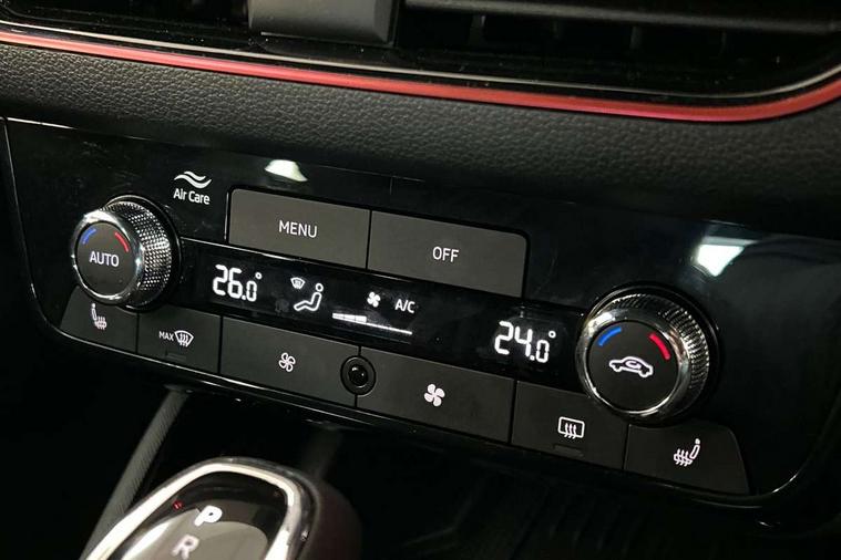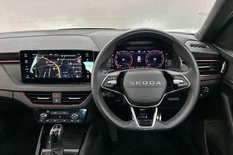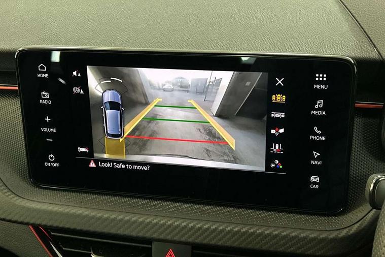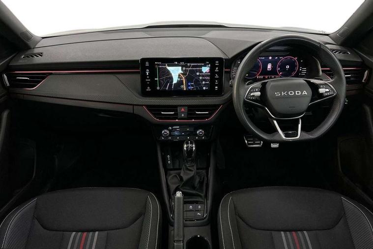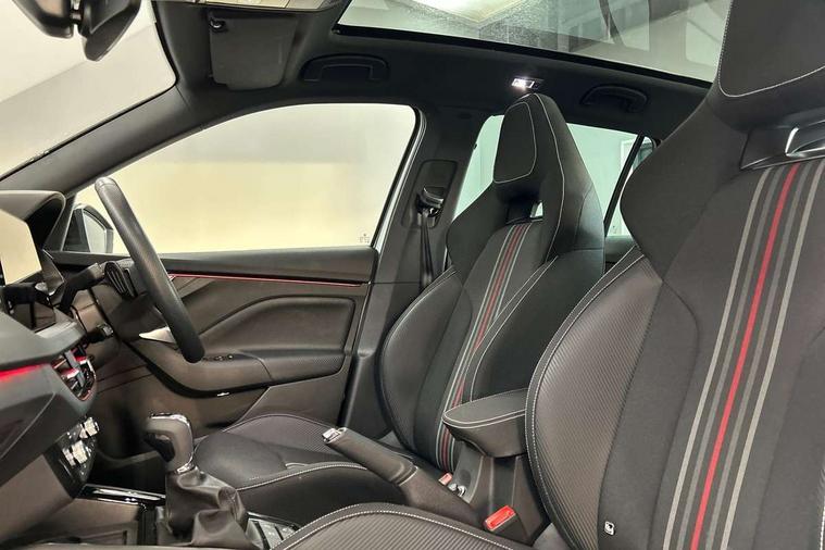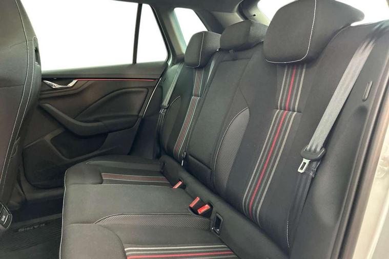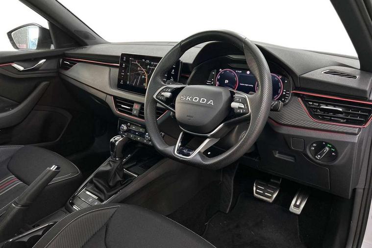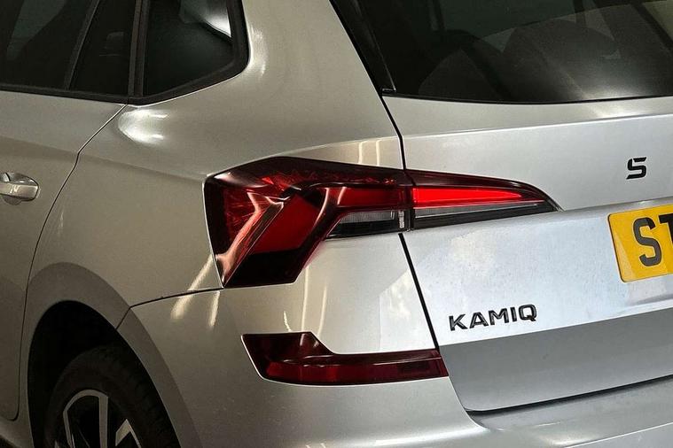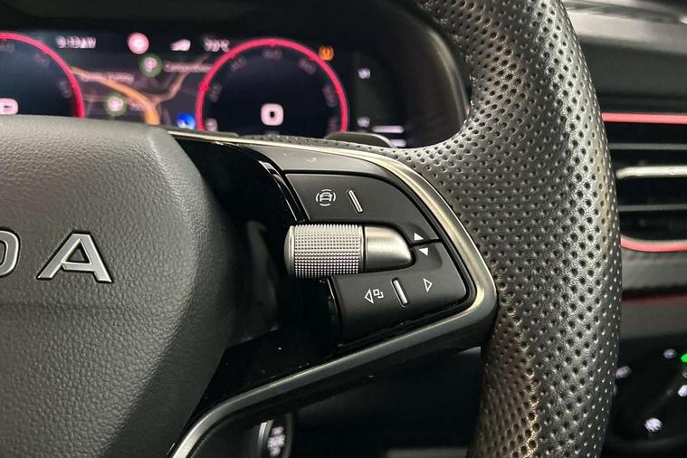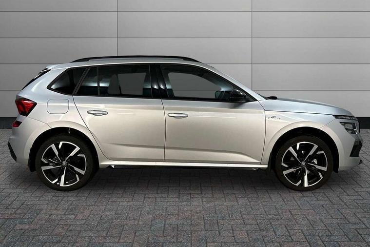 Advanced driver attention and drowsiness monitor, Bluetooth system, E-call, Front assist system, PAS, Rear parking sensors, Rear view camera, Service indicator, Speed limiter, Traffic sign recognition, Virtual cockpit with 10.25" display, Voice control system, Wireless smartlink, 4 USB C ports, 8 Speakers, 9.2" Skoda navigation display, DAB Digital radio, Auto dimming rear view mirror, Automatic headlight control with coming home and leaving home feature, Black door mirrors, Black radiator grille, Black rear diffuser, Black roof spoiler, Body colour bumpers, Body colour door handles, Boot lettering in black, Extended tailgate glass, Front and rear electric windows, Heated rear window, LED daytime running lights, LED high beam, LED low beam, LED third brake light, Light sensors, Monte carlo plaque, Panoramic sunroof with black roof rails, Privacy glass, Rear side wing doors, Rear wiper, Ticket holder inside windscreen, 12V socket in luggage compartment, 3 seat bench in 2nd row, Aluminium pedals, Ambient lighting in white/red, Art leather carbon decor inserts, Art leather carbon door inserts, Black roof lining, Cargo elements, Chrome inner door handles, Driver and passenger sun visors with vanity mirror, Dual zone climate control, Front and rear roof lights, Front centre armrest, Front head restraints, Glove compartment with illumination, Height adjustable driver seat, Height adjustable front passenger seat, Ice scraper, Inner circulation control with pollen filter, ISOFIX on front passenger seat, Isofix preparation for back seats, Leather gearknob and handbrake lever, Manual lumbar support for front seats, Monte Carlo cloth upholstery, Net package and top tether hooks in boot space, Net under rear shelf, Pocket on the back of both front seats include mobile phone pockets, Rake/reach adjustable steering wheel, Reading lights, Rear centre armrests, Red hotstamping, Single front passenger seat, Sports seats, Textile floor mats, Third rear headrest, Top tether for front passenger seat, Umbrella in driver's door, Light and view plus package - Kamiq, 3x3 point rear seatbelts, Airbags - driver and front passenger, Disc brakes, ESP, Extended and predictive pedestrian/cyclist protection, Front passenger airbag deactivation switch, Front side airbags with curtain airbags, Hill hold control, Manual leather parking brake, Manual rear child locks, One tone horn, Seatbelt reminder for driver an co-driver, Traction control, Tyre pressure monitor, Anti-theft alarm system with interior monitoring, backup horn, towing protection and remote central locking with SAFE system, Anti-theft wheel bolts, Electronic engine immobilizer, 18" Ursa black diamond cut alloy wheels,