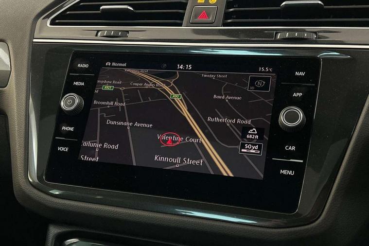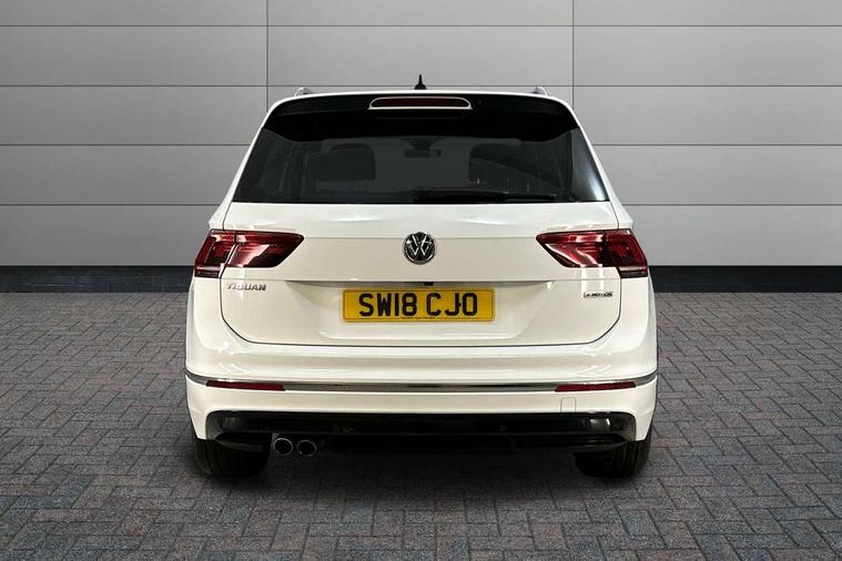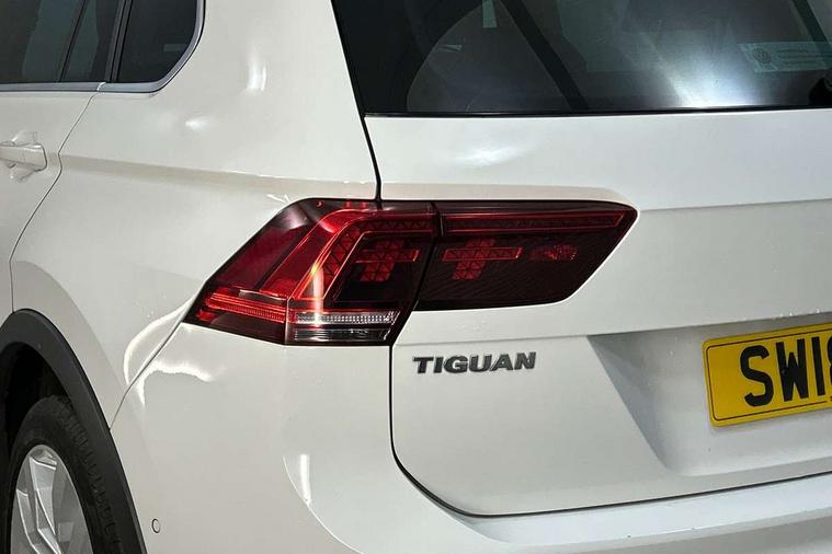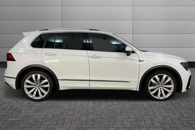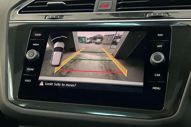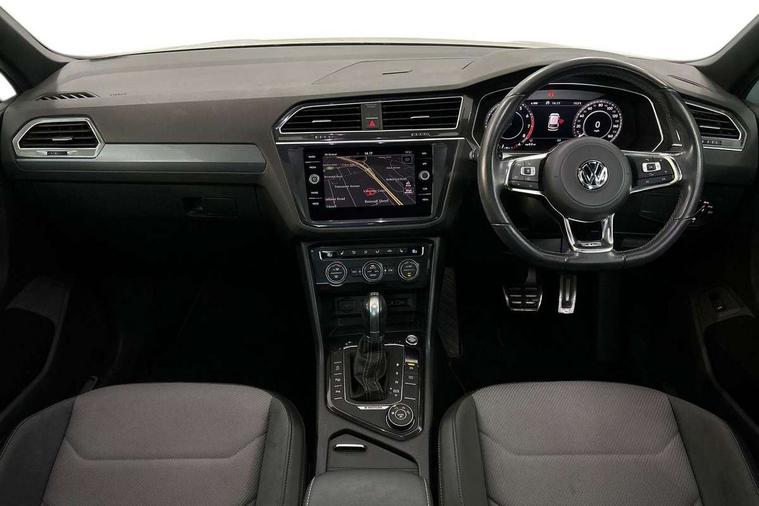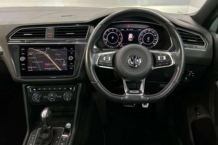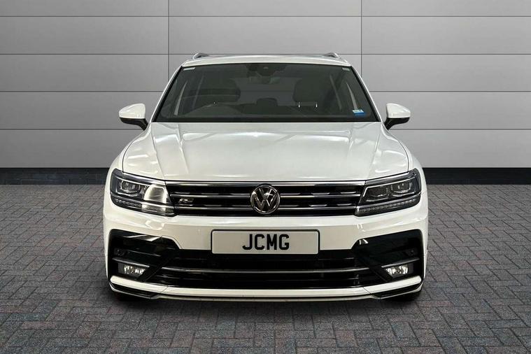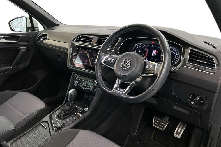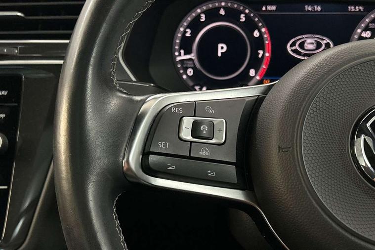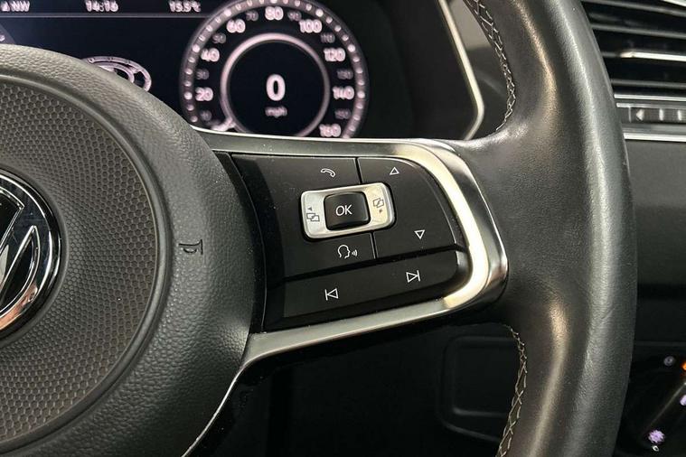 Active information display, Adaptive cruise control, App-Connect, Bluetooth phone integration system, Distance control assist, Drive mode selector, Driver profile selection, Fatigue detection system, Instrument cluster, Lane assist, Low washer fluid warning light, Outside temperature display, Progressive power assisted steering, Service interval indicator, Speed limiter, Warning lights, XDS electronic differential lock, 2x USB sockets in front, Aux-in socket, DAB Digital radio, MP3 compatible single CD player, SD card slot, Auto dimming interior mirror, Automatic activation of hazard warning lights, Body colour door handles, Body colour door mirrors, Body colour rear spoiler, Body colour side skirt, Body coloured bumpers, Chrome side window surrounds, Chrome trimmed radiator grille, Coming/leaving home lighting function, Dusk sensor + auto driving lights, Electric folding door mirrors, Electric heated + adjustable door mirrors, Electric panoramic sunroof with sunblind, Front and rear electric windows, Heated rear window, LED headlights with dynamic light assist daytime running lights and cornering front fog lights, LED rear lights, Piano black rear diffuser, R Line body kit, Rain sensor windscreen wipers, Rear windscreen washer and wiper with interval delay, Silver roof rails, Silver under body guard, Tinted windows (B pillar backwards), Twin trapezoid chrome exhaust pipes, Windscreen wipers/ intermittent wipe + 4 position delay, 12V Accessory socket in centre console, 3 rear headrests, 3 zone climate control, 4 load lashing points, 40:20:40 split folding rear seats, Bag hook in luggage compartment, Black headlining, Driver + front passenger lumbar support, Foldable passenger seatback, Front + rear carpet mats, Front centre armrest with 12v socket, Front centre armrest with storage + rear 2 air vents + cupholders, Front seatback folding tables, Height/reach adjust steering wheel, Illuminated driver/passenger vanity mirrors, Illuminated scuff plates, Interior light with delay, Isofix Preparation 2 Rear child seats, Leather gear knob, Leather multifunction steering wheel with paddle shift, Load through provision with 2 cupholders when folded, Lockable cooled glovebox, Luggage compartment lighting, Luggage compartment side storage, Map pockets on front seats, Passenger seat height adjuster, Rear cupholders, Removable luggage cover, Sliding/reclining rear seats, Stainless steel pedals, Storage compartment in driver's door, Storage compartment in passenger's door, Storage compartment in rear doors, Storage tray on dashboard, Sunglasses storage, Variable boot floor, Ambient lighting pack - Tiguan, 3 rear 3 point seatbelts, ABS+EBD+Brake assist, Active bonnet, Active pedestrian safety system, Curtain airbags, Driver/Front Passenger airbags, Driver/Passenger whiplash optimised head restraints, Drivers knee airbag, DTC - Drag torque control, Electronic parking brake with auto hold, ESP with EDL + ASR, First aid kit, Front assist including city emergency braking, Front side airbags, Head airbag system, Height adjustable front 3 point seatbelts + pretensioners, Hill hold control, Passenger airbag deactivate switch, Passenger knee airbag, Pre crash system, Rear side airbags, Seatbelt warning lamp and buzzer, Two tone horn, Warning triangle, Alarm with interior protection, Electronic engine immobiliser, Remote central locking with 2 remote folding keys, Aluminium decorative inserts, Chrome door trim inserts, 20" Suzuka alloy wheels + anti theft wheel bolts, Steel space saver spare wheel,