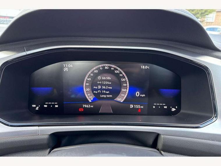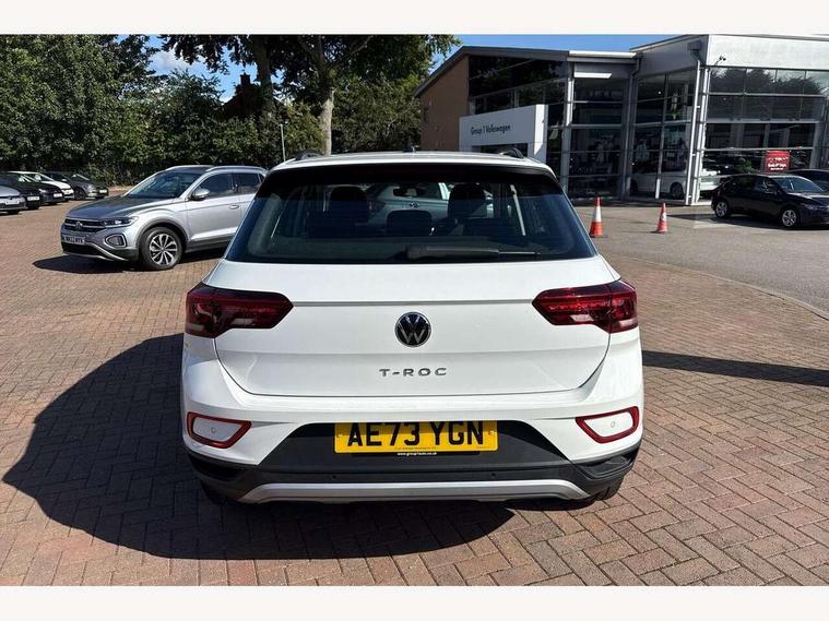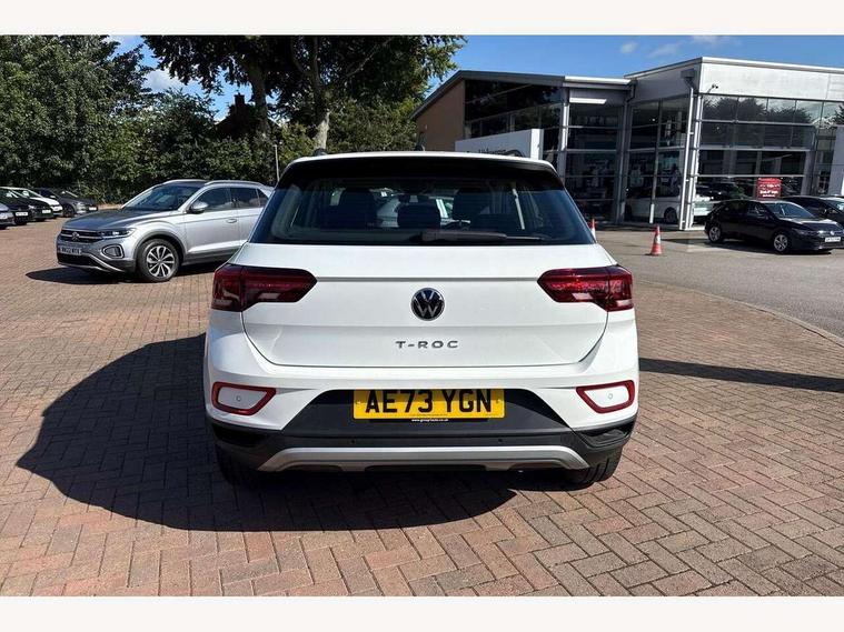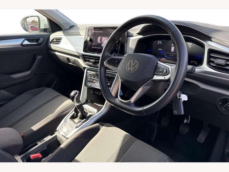 Bluetooth mobile phone interface, Driver alert system with fatigue detection, Driver tips and journey analysis, Emergency call service, Lane keeping system Lane Assist, Modified key software - reduce switch off time for key status change to Long no motion, Online services, Park assist including front and rear parking sensors, Power assisted speed sensitive steering, Service interval indicator, Tailgate/trunk lid release from outside, Think blue trainer driver tips and journey analysis, Warning sound and light for front seatbelts unfastened, Wireless app connect, Battery regeneration during braking, Front shock absorption, Rear shock absorption chassis with increased ride height, Start/stop function with battery regeneration, DAB Digital radio, Diversity antenna for FM reception, Music playback - MP3, WMA and AAC files, Premium USB cable in choice of either Apple or Android smartphone compatibility, SD card slot, Simultaneous pairing of 2 compatible mobile devices, Title and cover art display, We Connect and We Connect Plus functionality, 3rd brake light, Auto dimming interior rear view mirror, Automatic hazard lights activation under emergency braking, Automatic headlight control with LED separate daytime running lights with coming/leaving home function, Black roof rails, Body coloured bumpers and radiator grille with chrome trim and front fog lamps with chrome bezel, Body coloured exterior mirror housings and door handles, Extended roof spoiler, Exterior mirrors aspherical on driver side, convex on front passenger side, External USB type C socket and charging sockets, Front windscreen wiper with intermittent wipe and 4 position delay, Heated rear window, LED rear combination lamps, LED rear number plate lights, LED tail lamp rear comination lamps, Power windows with comfort operation and circuit breaker, Rain sensor, Rear exhaust tailpipe, Rear fog light on one side and reversing lights on both sides, Rear side wing doors, Rear wash/wipe with intermittent wipe setting, Remote electrically foldable door mirrors, puddle lights and reverse activated passenger's door mirror, 12V power socket in centre console, 3 rear head restraints, 3 seat bench in 2nd row, 4 load lashing points in luggage compartment, Air care climatronic air conditoning system with active combination filter and 2-zone temperature control, Ambient lighting with mirror logo projection, Cloth upholstery, Door and side trim panel in cloth, Drawer under drivers seat, Driver/front passenger seat height adjustment, Front centre armrest, Front comfort sports seats, Front cupholders x 2, Front reading light, Instrument lighting, white adjustable panel illumination, Interior light delay, Isofix child seat preparation, Leather gearshift handle, Load-through provision with cup holder when folded down ('Unsplit rear seat bench, split folding backrest, with centre armrest), Luggage compartment lighting, Lumbar support for driver's and front passengers seat, Non-folding front passenger seat backrest, Single front passenger seat, Storage compartment in left and right luggage area, Storage compartment in rear doors, Storage compartments in driver and front passenger doors, Sunvisors with illuminated vanity mirrors, Variable boot floor, height adjustable and removable, Driver assistance pack without proactive passenger protection - T-Roc, 3 point height adj front seatbelts + pretensioners, 3 point seatbelts in outer rear with ECE label, ABS, Child locks on rear doors, Driver and front passenger airbag with front passenger airbag deactivation, Driver and front passenger safety-optimised head restraints, Drivers seatbelt reminder, Electronic parking brake, Electronic Stability Control (ESC) inc EDL (Electronic Differential Lock) and ASR (Traction Control), Front and rear passengers curtain airbag system including front side airbags, Front assist with city emergency braking and pedestrian monitoring, Front disc brakes, Front seat side impact airbags, Hill start assist, Predictive pedestrian protection, Rear disc brakes, Single tone horn, Tyre pressure loss indicator, Volkswagen roadside assistance, Alarm with interior protection, Anti-theft alarm system with interior monitoring, backup horn, and towing protection, Remote central locking with SAFELOCK, radio remote control with 2 remote control folding keys, Pewter matt decorative inserts for intrument panel, centre console and door panels at the front, Trims for alloy wheels,