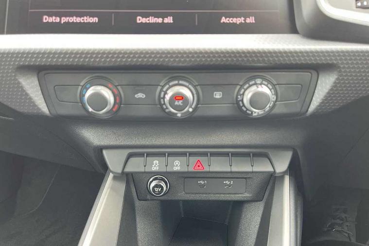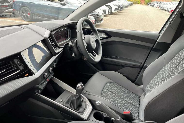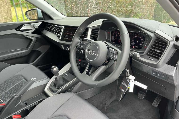 10.25" Digital instrument cluster display classis style instrument dials + speed, odometer, time, outside temperature, telephone menu + fuel level warning, Advanced driver attention and drowsiness monitor, Audi connect emergency call and service, Audi remote connect and control, Audi smartphone interface, Bluetooth interface, Camera based traffic sign recognition, Cruise control, Driver's information system, Electromechanical power steering, Lane departure warning system, Rear parking sensor, Service interval indicator, Speed limiter, Start stop system with recuperation, Voice control system, Washer fluid level indicator, Dynamic suspension, 2 x USB type C connection points, 6 loudspeakers, DAB Digital radio, MMI radio plus with 10.1" colour MMI display screen and MMI touch, Auto dimming rear view mirror, Body coloured bumpers, Body coloured door mirrors, Electric front and rear windows, Electrically adjustable, heated, folding door mirrors with integrated LED side indicator, Front side air inlets in grained matt black and C frame in anthracite black, Headlight cleaning system, Heat insulating glass windscreen and side windows, Heated rear windscreen, High level LED brake light, LED daytime running lights, LED headlights with range control LED rear lights + dynamic rear indicators, Light and rain sensors, Radiator grille and rear diffuser in matt anthracite black, Radiator protective grille frame in matt aluminium silver, Rear fog lights, Rear side wing doors, Rear wiper, Side front spoiler lips in grained matt black, 12V socket in centre console with two cup holders, 3 rear seats with headrests, 3 seat bench in 2nd row, 3 spoke leather multifunction plus steering wheel, 40:60 Split folding rear seat or fully collapsed, Black velour floor mats, Front door sill trims with aluminium inlay, Front head restraints, Front passenger seat, Grey cloth headlining, Height and reach adjustable steering wheel, Interior lighting includes roof module, front and rear reading lights and right luggage compartment lighting, ISOFIX child seat mounting for front passenger and outer rear seats including top tether attachment point of outer rear seats, Leather gear knob with aluminium trim, Leather handbrake grip, Manual air conditioning, Manual height adjustable for driver and front passenger seat, Manually adjustable lumbar support in front seats, Novum cloth upholstery with front sport seats, Luggage compartment pack - A1, 3x3 point rear seatbelts, Audi pre-sense front with pedestrain and cyclist recognition, Brake assist function, Driver and front passenger airbag with front side and head airbags, Electronic Stability Control including ABS, EBD, ASR and EDL, Front passenger airbag deactivation switch, Hill hold assist, Manual rear child locks, Seatbelt height adjustment for front seats, Seatbelt monitoring, Tyre pressure loss indicator, Warning triangle and first aid kit, Anti theft alarm, Anti theft wheel bolts, Immobiliser, Remote control key with safelock, Aluminium trim for control switches, air vents and digital instrument cluster, Black dashboard, Silver grey accent surfaces insert of air vents, interior door handle recesses and centre console in diamond paint finish, Slate grey inlays polygon structure in fine paint finish,