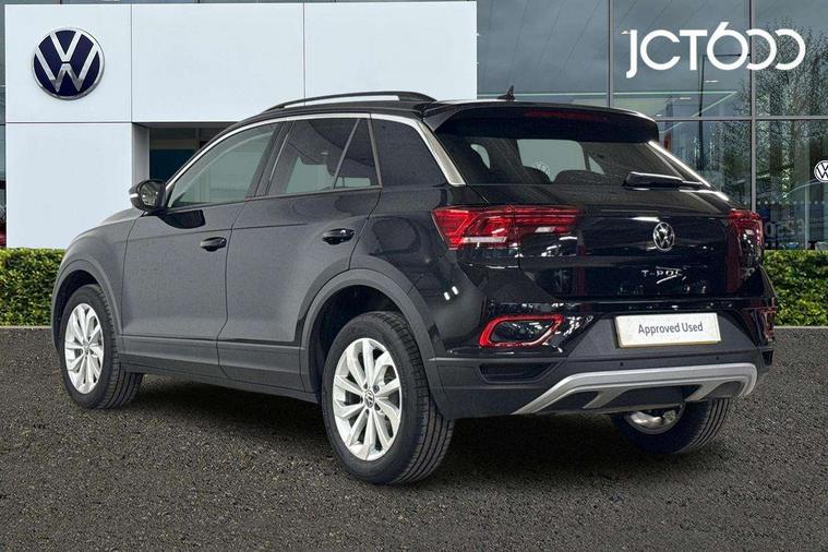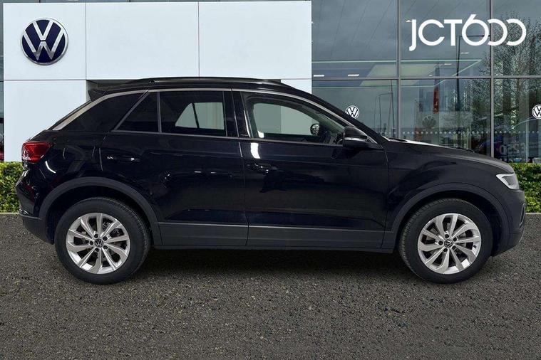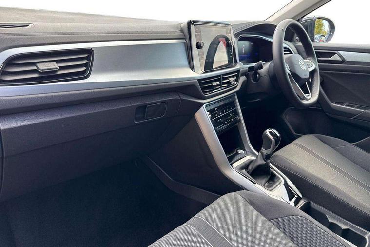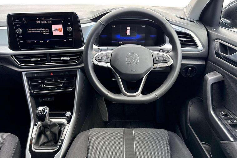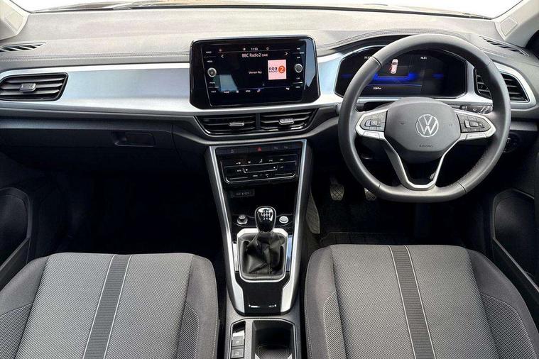 Advanced driver attention and drowsiness monitor, Dynamic road sign display, Emergency call service, Lane keeping system Lane Assist, Mobile phone interface, Modified key software - reduce switch off time for key status change to Long no motion, Online services, Park assist including front and rear parking sensors, Power assisted speed sensitive steering, Rear view camera, Service interval indicator, Tailgate/trunk lid release from outside, Think blue trainer driver tips and journey analysis, Warning sound and light for front seatbelts unfastened, Wireless app connect, Battery regeneration during braking, Front shock absorption, Rear shock absorption chassis with increased ride height, Start/stop function with battery regeneration, DAB Digital radio, Diversity antenna for FM reception, Front and rear 6 speakers, Music playback - MP3, WMA and AAC files, Premium USB cable in choice of either Apple or Android smartphone compatibility, SD card slot, Simultaneous pairing of 2 compatible mobile devices, Title and cover art display, We Connect and We Connect Plus functionality, Auto dimming interior rear view mirror, Automatic hazard lights activation under emergency braking, Automatic headlight control with LED separate daytime running lights with coming/leaving home function, Black roof rails, Body coloured bumpers and radiator grille with chrome trim and front fog lamps with chrome bezel, Body coloured exterior mirror housings and door handles, Electrically adjustable and heated door mirrors, Extended roof spoiler, Exterior mirrors aspherical on driver side, convex on front passenger side, External USB type C socket and charging sockets, Front windscreen wiper with intermittent wipe and 4 position delay, Heated rear window, LED 3rd brake light, LED rear combination lamps, LED rear number plate lights, Power windows with comfort operation and circuit breaker, Privacy glass for rear side windows and rear window, Rain sensor, Rear exhaust tailpipe, Rear fog light on one side and reversing lights on both sides, Rear side wing doors, Rear wash/wipe with intermittent wipe setting, Remote electrically foldable door mirrors, puddle lights and reverse activated passenger's door mirror, 12V power socket in centre console, 3 rear head restraints, 3 seat bench in 2nd row, 4 load lashing points in luggage compartment, Air care climatronic air conditoning system with active combination filter and 2-zone temperature control, Black stitching for floor mats, Ceramique roof liner, Cloth upholstery, Door and side trim panel in cloth, Drawer under drivers seat, Driver/front passenger seat height adjustment, Front centre armrest, Front comfort sports seats, Front cupholders x 2, Front reading light, Front seat back storage pockets, Glove compartment door with light, Instrument lighting, white adjustable panel illumination, Interior ambient lighting and surround lighting, Interior light delay, Isofix child seat preparation, Leather gearshift handle, Load-through provision with cup holder when folded down ('Unsplit rear seat bench, split folding backrest, with centre armrest), Luggage compartment lighting, Lumbar support for driver's and front passengers seat, Non-folding front passenger seat backrest, Single front passenger seat, Storage compartment in left and right luggage area, Storage compartment in rear doors, Storage compartments in driver and front passenger doors, Sunvisors with illuminated vanity mirrors, Variable boot floor, height adjustable and removable, Driver assistance pack without proactive passenger protection - T-Roc Life/Match, 3 point height adj front seatbelts + pretensioners, 3 point seatbelts in outer rear with ECE label, ABS, Child locks on rear doors, City emergency braking and pedestrian monitoring, Driver and front passenger airbag with front passenger airbag deactivation, Driver and front passenger safety-optimised head restraints, Drivers seatbelt reminder, Electronic parking brake, Electronic Stability Control (ESC) inc EDL (Electronic Differential Lock) and ASR (Traction Control), Front and rear passengers curtain airbag system including front side airbags, Front disc brakes, Hill start assist, Predictive pedestrian protection, Rear disc brakes, Two tone horn, Tyre pressure loss indicator, Volkswagen roadside assistance, Alarm with interior protection, Keyless locking and starting system keyless access with safelock, Pewter matt decorative inserts for intrument panel, centre console and door panels at the front, Trims for alloy wheels,