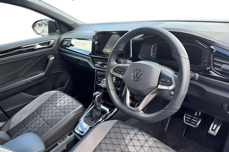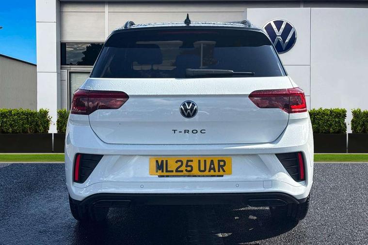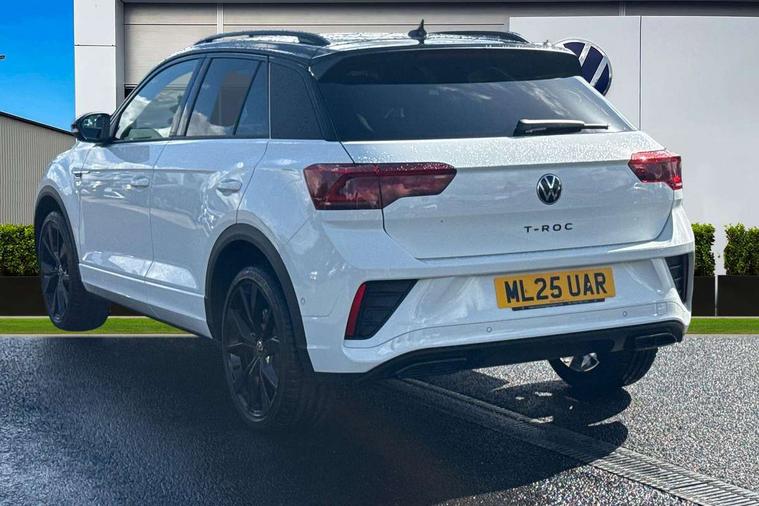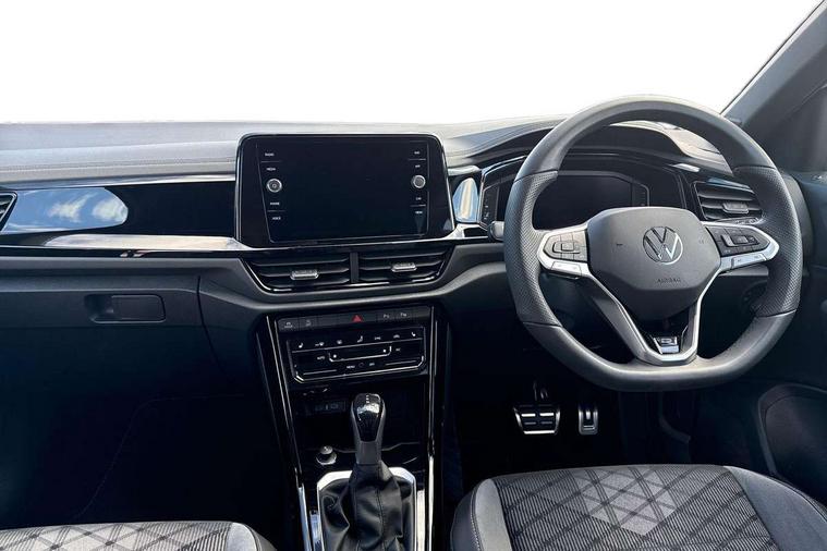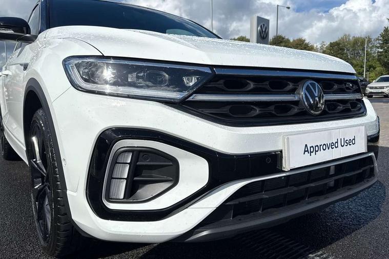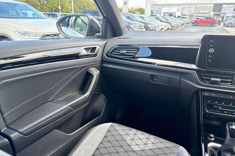 10.25" Digital cockpit pro, Advanced driver attention and drowsiness monitor, Emergency call service, Lane keeping system Lane Assist, Mobile phone interface, Modified key software - reduce switch off time for key status change to Long no motion, Online services, Park assist including front and rear parking sensors, Power assisted speed sensitive steering, Service interval indicator, Tailgate/trunk lid release from outside, Think blue trainer driver tips and journey analysis, Warning sound and light for front seatbelts unfastened, Wireless app connect, Battery regeneration during braking, Rear shock absorption chassis with increased ride height, Start/stop function with battery regeneration, DAB Digital radio, Diversity antenna for FM reception, Front and rear 6 speakers, Music playback - MP3, WMA and AAC files, Premium USB cable in choice of either Apple or Android smartphone compatibility, SD card slot, Simultaneous pairing of 2 compatible mobile devices, Title and cover art display, We Connect and We Connect Plus functionality, Auto dimming interior rear view mirror, Automatic hazard lights activation under emergency braking, Automatic headlight control with LED separate daytime running lights with coming/leaving home function, Dynamic cornering light, Electrically adjustable and heated door mirrors, Extended roof spoiler, Exterior mirrors aspherical on driver side, convex on front passenger side, External USB type C socket and charging sockets, Front windscreen wiper with intermittent wipe and 4 position delay, Heated rear window, Illuminated front grille, IQ LED matrix headlights, LED 3rd brake light, LED rear number plate lights, LED rear tail lights with dynamic turn signal, Light mode for poor weather, rain, fog or snow, Power windows with comfort operation and circuit breaker, R-Line design body coloured bumpers, Rain sensor, Rear exhaust tailpipe, Rear fog light on one side and reversing lights on both sides, Rear side wing doors, Rear wash/wipe with intermittent wipe setting, Remote electrically foldable door mirrors, puddle lights and reverse activated passenger's door mirror, 12V power socket in centre console, 3 rear head restraints, 3 seat bench in 2nd row, 4 load lashing points in luggage compartment, Air care climatronic air conditoning system with active combination filter and 2-zone temperature control, Artvelours cloth upholstery, Black roof lining, Chrome plated radiator grille inserts, air vent surrounds and light switch surrounds, Door and side trim panel with leatherette insert, Drawer under drivers seat, Driver seat height adjust, Driver's seat lumbar support, Front + rear carpet mats, Front centre armrest, Front comfort sports seats, Front cupholders x 2, Front footwell illumination, Front reading light, Front scuff plates with R Line logo, Front seat back storage pockets, Glove compartment door with light, Instrument lighting, white adjustable panel illumination, Interior ambient lighting and surround lighting, Interior light delay, Isofix child seat preparation, Leather gearshift handle, Leather wrapped multifunction steering wheel with paddle shift, Load-through provision with cup holder when folded down ('Unsplit rear seat bench, split folding backrest, with centre armrest), Luggage compartment lighting, Non-folding front passenger seat backrest, Passenger seat height adjuster, Passenger seat lumbar support, Single front passenger seat, Stainless steel pedals, Storage compartment in left and right luggage area, Storage compartment in rear doors, Storage compartments in driver and front passenger doors, Sunvisors with illuminated vanity mirrors, Variable boot floor, height adjustable and removable, Winter pack without heated windscreen washer jets - T-Roc, 3 point height adj front seatbelts + pretensioners, 3 point seatbelts in outer rear with ECE label, ABS, Child locks on rear doors, City emergency braking and pedestrian monitoring, Driver and front passenger airbag with front passenger airbag deactivation, Driver and front passenger safety-optimised head restraints, Drivers seatbelt reminder, Electronic parking brake, Electronic Stability Control (ESC) inc EDL (Electronic Differential Lock) and ASR (Traction Control), Front and rear passengers curtain airbag system including front side airbags, Front disc brakes, Hill start assist, Predictive pedestrian protection, Rear disc brakes, Two tone horn, Tyre pressure loss indicator, Volkswagen roadside assistance, Tool kit, Trims for alloy wheels, Tyre mobility kit including compressor and sealing foam,