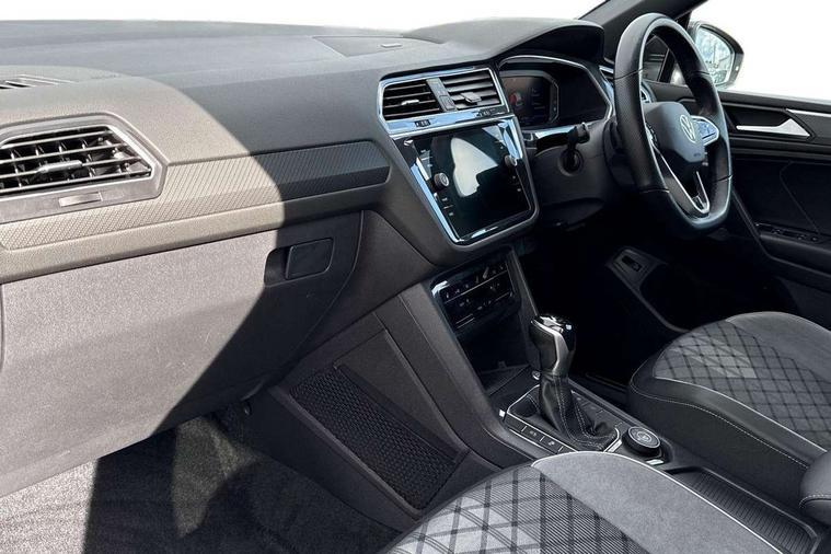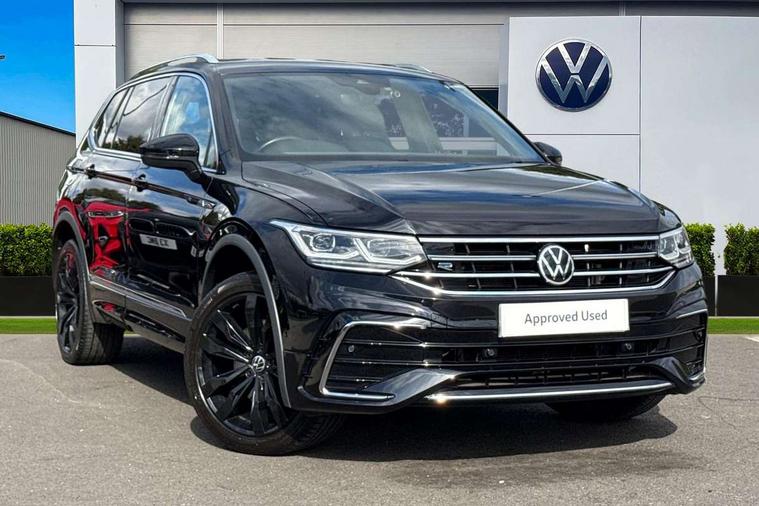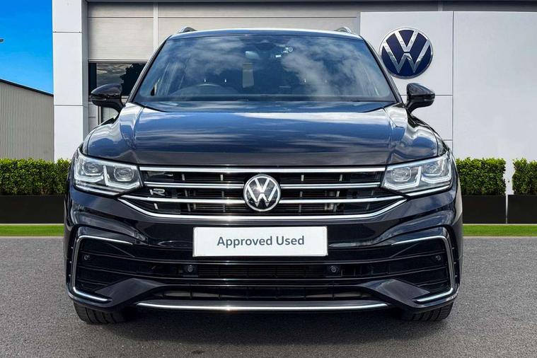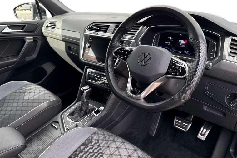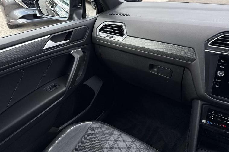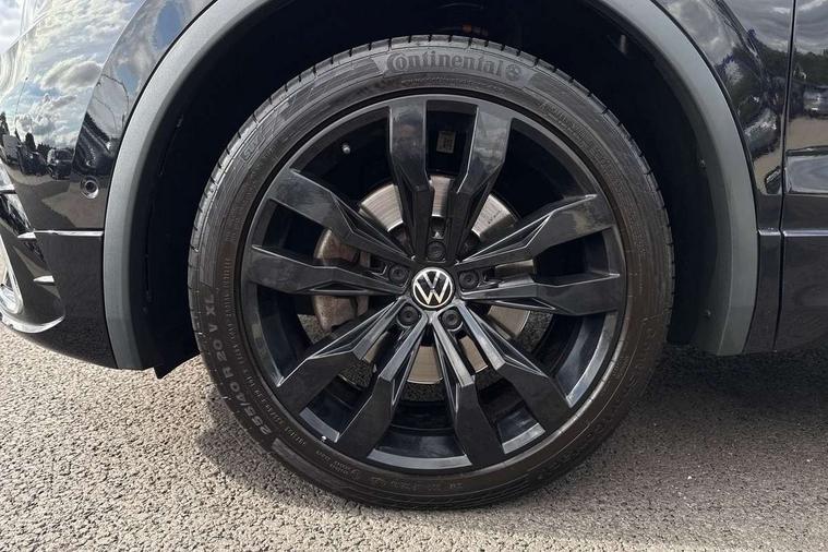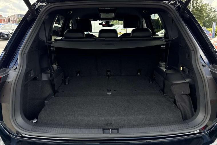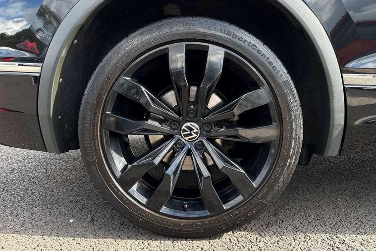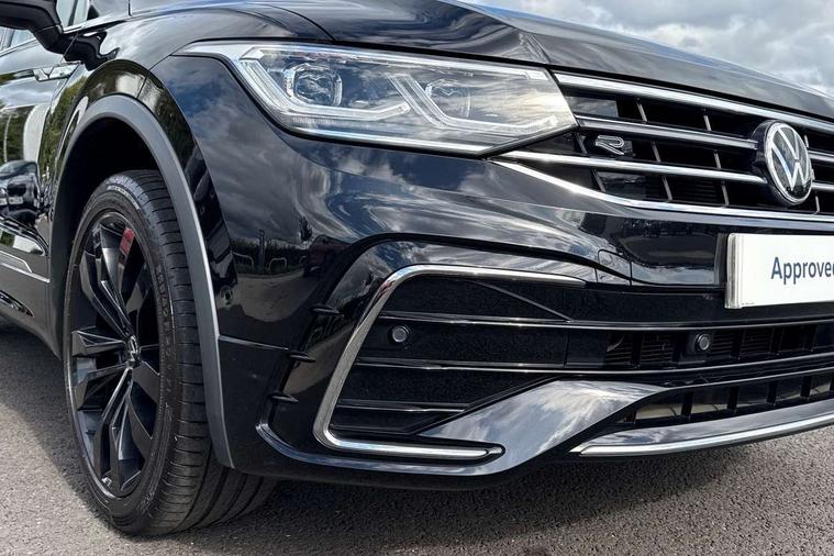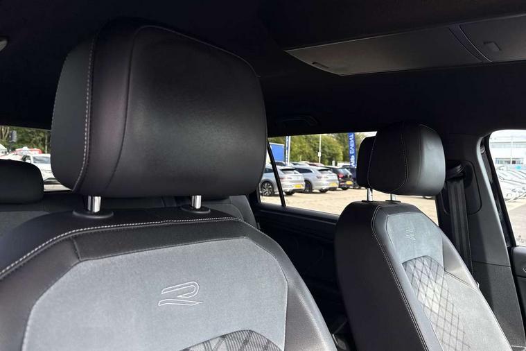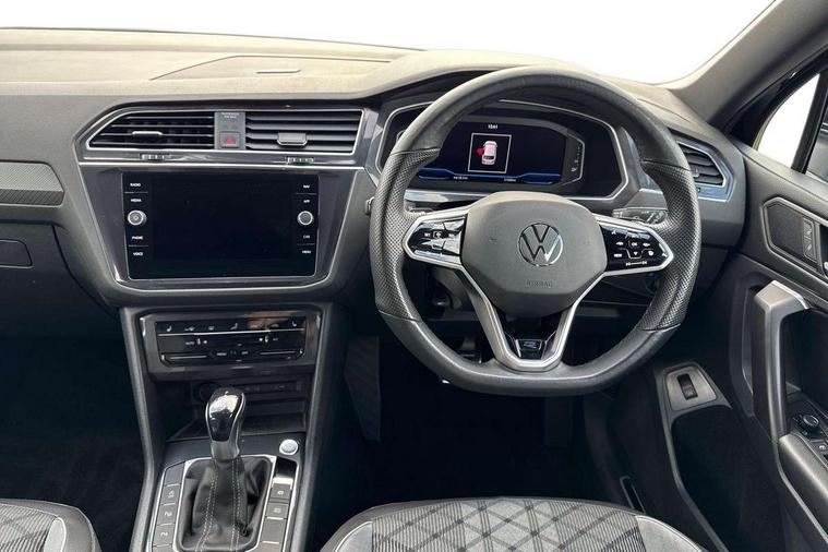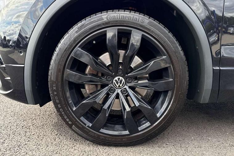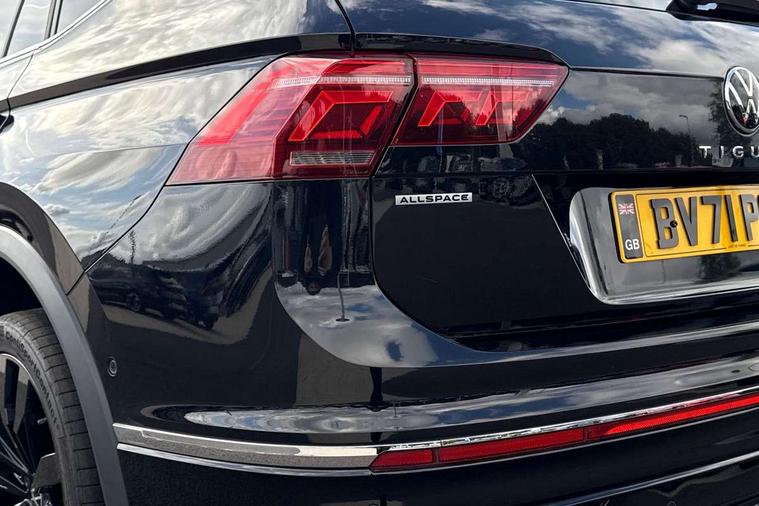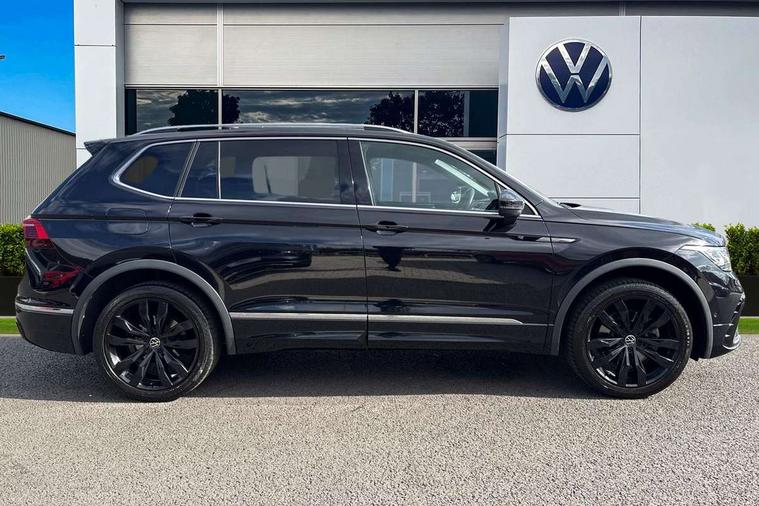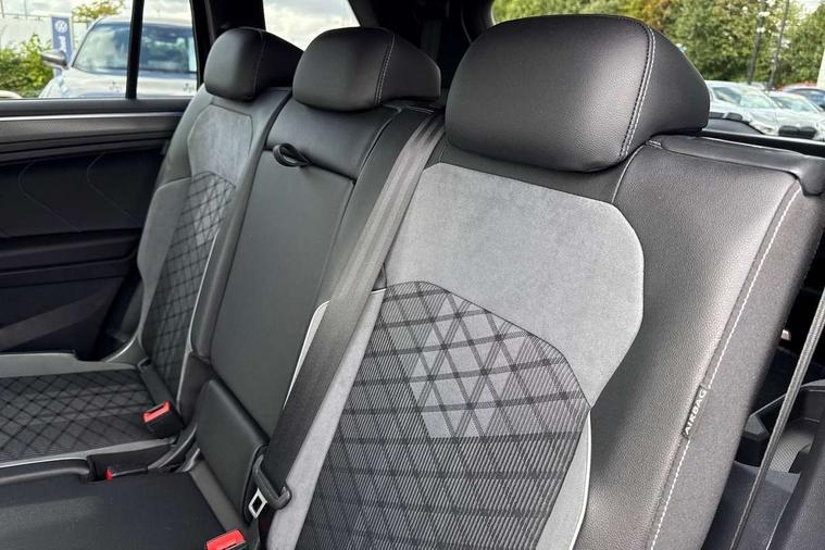 Adaptive cruise control, App-Connect, Digital cockpit pro, Driver alert system, Driver profile selection, Dynamic road sign display, eCall emergency call service, Electric boot lid, Lane change system side assist and rear traffic alert, Lane keeping system Lane Assist, Mobile phone interface comfort with inductive charging feature, Multifunction front facing camera, Progressive steering, Speedo and rev counter, electronic odometer, trip, service interval display and exterior temperature gauge, Start-stop system with battery regeneration (recuperation - energy recovery during braking), 2 USB-C ports in the front, 1 USB-C charging socket on the center console in the rear, DAB Digital radio, Diversity antenna for FM reception, Radio, Auto dimming interior rear view mirror, Automatic headlight control system, Body coloured bumpers in R Line style, Chrome mouldings on side window, Coming/leaving home lighting function, Exterior badge deletion, Exterior mirror housings painted in silver, Heated windscreen washer jets, Privacy glass, Rear fog light, Rear spoiler in R style, Silver roof rails, Third brake light, 12-volt outlet in centre console rear and luggage compartment, 12V socket in centre console, 3 head restraints in rear, 3rd row seats, Air Care Climatronic 3 zone automatic climate control with enhanced air filter and controls in the rear, Black roof lining, Door and side trim panel with leatherette insert, Drawers under front seats, Driver and front passenger seat height adjustment, Foldable front passenger seat backrest, Front + rear carpet mats, Front centre armrest, Front footwell illumination, Heated front seats, Heated leather wrapped multifunction sports steering wheel with touch control and shift paddles, Illuminated scuff plates, ISOFIX anchorage points for mounting 2 child seats on rear seats and i-Size child seats, Leather gearshift handle, LED interior light with switch off delay/dimmer and 2 front/rear LED reading lights, Stainless steel pedals, Sun visors with illuminated vanity mirrors, Ambience pack - Tiguan Allspace R Line, Driver assistance plus package - Tiguan Allspace, Park assist pack - Tiguan Allspace, 3 point seat belt for centre rear seat, 3 rear three point seatbelts, ABS+EBD+Brake assist, Driver and front passenger safety-optimised head restraints, Driver's and front passenger's airbag with front passenger's airbag deactivation switch, Electronic parking brake, Electronic Stability Control (ESC) inc EDL (Electronic Differential Lock) and ASR (Traction Control), Height adjustable front 3 point seatbelts + pretensioners, Pedestrian monitoring, PreCrash preventive occupant protection Front and rear, Rear disc brakes, Side airbag in front and rear with curtain airbag, Two tone horn, Warning buzzer for seatbelts if unfastened, Anti theft alarm system with interior monitoring, backup horn and towing protection, Anti-theft wheel bolts, Electronic steering lock, Remote central locking with 2 remote folding keys, 20" Misano black with diamond turned surface alloy wheels with Airstop tyres,