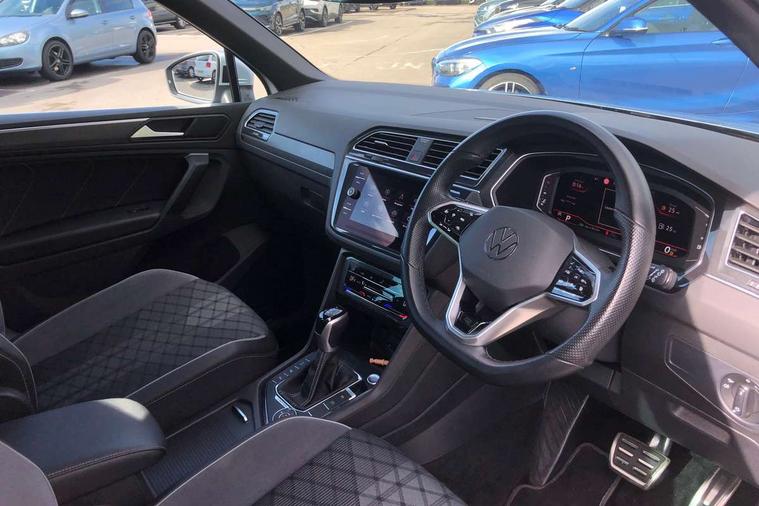 Adaptive cruise control ACC stop and go including speed limiter, App-Connect incl. App-Connect Wireless for Apple CarPlay and Android Auto, Bluetooth phone integration system, Distance control assist, Driver alert system, Driver profile selection, Dynamic road sign display, eCall emergency call system, Electromechanical speed sensitive power steering, Engine start/stop button, Lane keeping system Lane Assist, Lights on warning, Multifunction front facing camera, Outside temperature display, Premium multifunction display with multi colour display, Remote control boot opening, Rev counter, Revision / skills operating concept travel assistant, Service interval indicator, Speed limit display, Start/stop system with regenerative braking, Trip computer, Warning sound and light for doors and tailgate open, All wheel drive - 4Motion, Battery regeneration during braking, Diesel particulate filter, Misfuel prevention device for diesel engine, Selective Catalytic Reduction, XDS electronic differential lock for improved traction and handling, 4 X 20 watt output, 8 Speakers, Diversity antenna for FM reception, Radio, SD card slot, Simultaneous pairing of 2 compatible mobile devices, SMS functionality - read, compose and send SMS messages using touch-screen display, Title and cover art display, USB C ports, Auto dimming interior rear view mirror, Automatic headlight control system, Body colour door handles, Chrome moldings on the side windows, Coming/leaving home lighting function, Dynamic headlight range control, Front and rear electric windows, Heated rear window, High level 3rd brake light, Laminated safety glass windshield, heat and sound insulating, LED headlamps with LED separate daytime running light and dynamic cornering light, LED rear combination lamps, LED rear number plate lights, License plate carrier in front and rear, Poor weather light and cornering light, R Line body kit, R Line side sills, Rain sensor windscreen wipers, Rear exhaust tailpipe, Rear fog lamp, Rear side wing doors, Rear spoiler in R style, Rear windscreen washer and wiper with interval delay, Side and rear windows in heat insulating glass, Trailer Stability Programme, Unique R Line badging, Windscreen wipers/ intermittent wipe + 4 position delay, 12V outlet in center console rear and in luggage compartment, 12V outlet in front and tray, 2 cup holders in front, 2 LED front reading lights, 2 LED rear reading lights, 3 bench rear seats in 2nd row, 3 rear headrests, 4 load lashing points, 40:20:40 split folding rear seats, Air Care Climatronic 3 zone automatic climate control with enhanced air filter and controls in the rear, Backrest release for left front seat, Black headlining, Brushed stainless steel pedals and footrest, Carpet mats in front and rear with decorative stitching in Gray, Climate control unit rear with touch function, Door and side trim panel in foam film, insert in leatherette, Front centre armrest, Front footwell illumination, Front seats head restraints (x-adjustment), Height adjustable front seats, Height/reach adjust steering wheel, Instrument lighting white adjustable panel illumination, Interior light with delay, Isofix Preparation 2 Rear child seats, Leather gear knob, Lockable cooled glovebox, Luggage compartment lighting, Luggage net, Rear bench seat asymetrically split folding, longitudinally movable and folding with load-through hatch and center armrest, Remote unlocking for rear seat backrest, Removable luggage cover, Removable rear headrests, Safety optimised front head restraints, Single front passenger seat, Sliding/reclining rear seats, Standard rear seat release, Storage compartment in driver's door, Storage compartment in passenger's door, Storage compartment in rear doors, Storage compartments in luggage area left and right, Storage tray on dashboard, Sun visors with illuminated vanity mirrors, Top front comfort seats, Variable boot floor, height adjustable and removable, Driver assistance pack plus - Tiguan DSG, 3 point seat belt for centre rear seats, 3 point seat belts with seat belt pretensioners for the outer rear seats, Active bonnet, Curtain airbags for front and rear passengers, Driver/Front Passenger airbags, Drivers knee airbag, Electronic parking brake with auto hold, Electronic Stability Control with driver steering recommendation, ABS, ASR, EDL, EDTC and trailer stabilization, Front assist with autonomous emergency braking (for Adaptive Cruise Control ACC up to 130 mph), Front disc brakes, Front passenger airbag deactivation, Front side airbags, Height adjustable front 3 point seatbelts + pretensioners, Hill hold control, Manual child proof rear door locks, Pedestrian monitoring system, Power assisted brakes, Proactive passenger protection system in combination with front assist, Rear disc brakes, Rigid safety cell with front and rear crumple zones, Two tone horn, Warning sound and light for front seat belts if unfastened, Anti theft alarm system with interior monitoring, backup horn and towing protection, Anti theft wheel bolts, Electronic engine immobiliser, Tool kit,