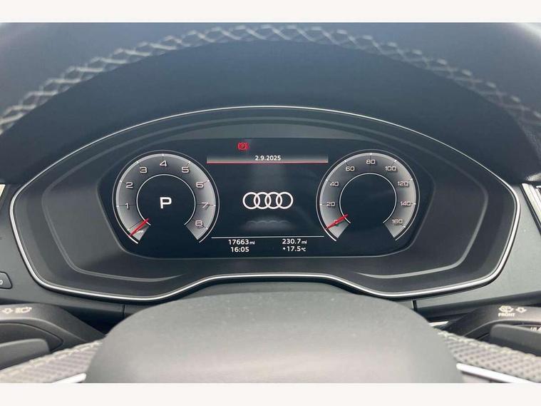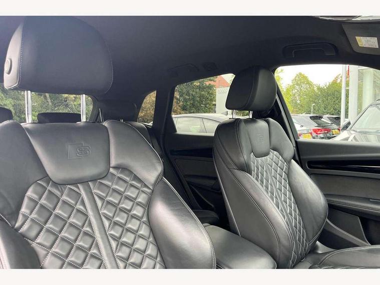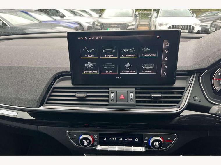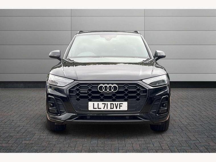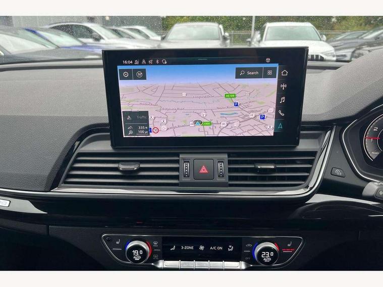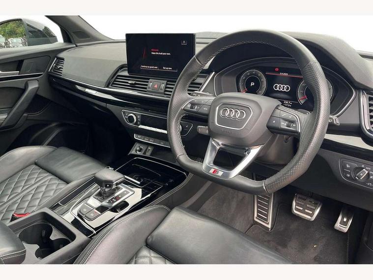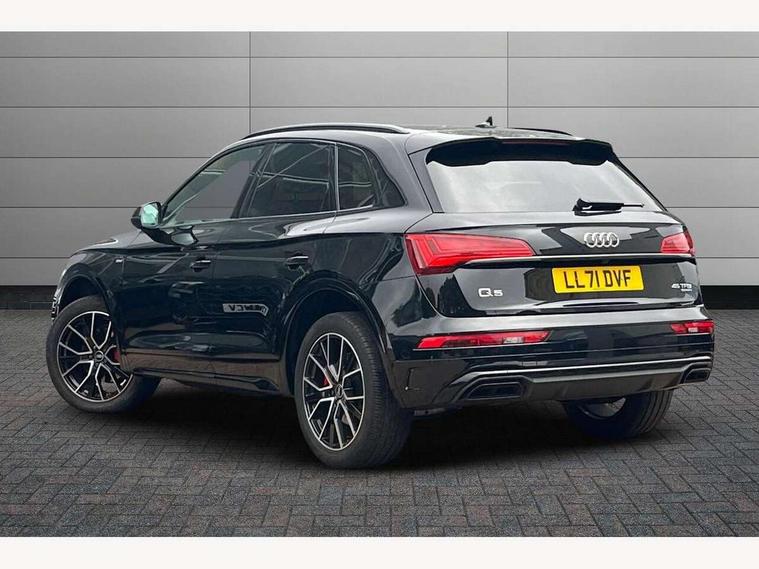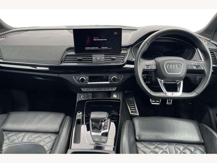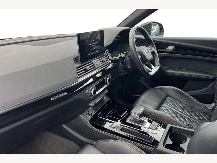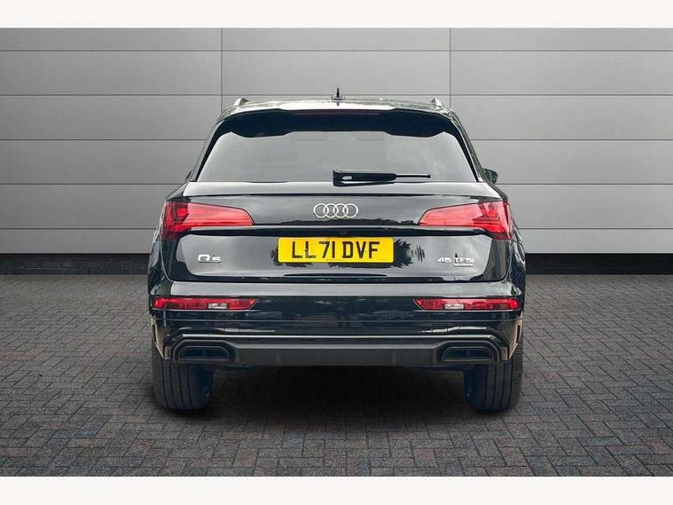 Audi connect safety and service (e-call), Audi connect with Amazon Alexa Integration, Audi drive select, Audi virtual cockpit plus with 12.3" screen and three different layout designs, Audi wireless smartphone interface, Automatic start-stop system with coasting functionality and efficiency programme, Bluetooth interface, Electro - mechanical power assisted steering, MMI navigation plus with 10.1" touch screen, Power tailgate, Reversing camera, Service interval indicator, Voice control system with Audi hotword activation "Hey Audi", Quattro on demand, S line sports suspension, 2 x USB charging port with aux input socket, DAB Digital radio, Acoustic windscreen, Audi beam with Audi rings logo, Audi matrix LED headlights with dynamic front and rear indicators, Audi rings at front and rear in black, Audi rings decal on rear doors, Auto dimming door mirrors, Auto dimming rear view mirror, Automatic headlights and windscreen wipers, Black door mirrors, Black roof rails, Body colour bumpers, Body colour underbody protection, Chrome plated exhaust trims, Daytime running lights, Door sills in Selenite silver, Electric adjustable/heated/folding door mirrors, Front air inlet surrounds in titanium black, Front and rear electric windows, Headlight washers, High gloss black B pillar trims and triangular rear door trim, High level LED brake light, Rear chrome trim strip below lights, Rear privacy glass and rear side windows, Rear side wing doors, Rear spoiler, Rear wiper, Roof bars, Without model and engine badging at rear, 3 rear headrests, 4 way electric lumbar support for driver and front passenger, 40:20:40 split folding 3 rear bench seat in 2nd row with rear centre armrest, Black cloth headlining, Comfort front centre armrest, Contrast stitching on seats, steering wheel and gear lever gaiter, Deluxe 3 zone electronic climate control, Electrically adjustable front seats, Fine Nappa leather upholstery with diamond pattern contrast stitching + front sport seats with S embossed logo, Front/rear floor mats, Gear lever in black leather, Heated front seats, Height adjustable front head restraints, Height/reach adjustable steering column, Illuminated door sill trims with S logo, ISOFIX child seat mounting and top tether, Luggage compartment cover, Rear seat bench plus, Removable luggage compartment floor, Single front passenger seat, Stainless steel pedals, Sunvisors with vanity mirrors, Black styling package - Q5 Edition 1, Extended interior upholstery pack - Q5, Extended LED Interior multi coloured Lighting Pack - Q5, 3 point seatbelts on all seats, 6 airbags - Driver, front passenger, curtain and side airbags, Electrically operated child locks on rear doors, Electromechanical parking brake, Electronic stabilisation control including ABS, ASR and EDL, Front and rear brake calipers painted in red, Front passenger airbag deactivation, Hill descent control, Hill hold assist, Multi collision brake assist, Pop-up bonnet for pedestrian protection, Pre sense city, Seat belt force limiter, Seatbelt monitoring, Tyre pressure warning, Warning triangle and first aid kit, Anti theft alarm, Anti-theft wheel bolts, Keyless Go access/ignition system, Remote central locking, Piano black finish inlay,