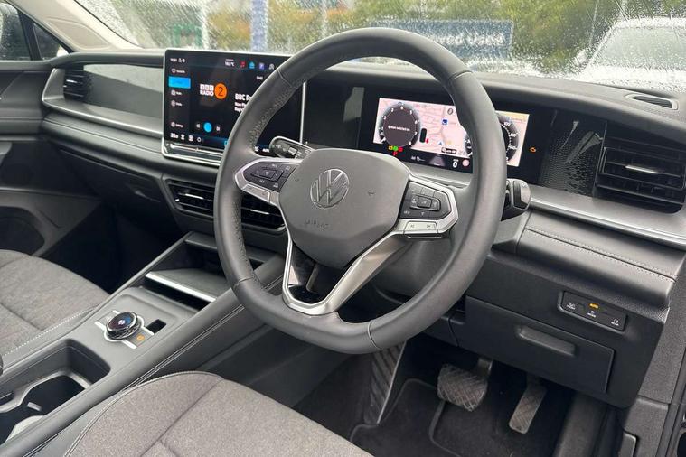 Adaptive cruise control (ACC), Digital Cockpit Pro - 10.25" high resolution dash display screen with customisable menus and information, Driver alert system, Driver attention monitoring system, Dynamic road sign display, E-Sim card for online connectivity, eCall emergency call system, Lane change system, Side assist, Rear traffic alert and Exit warning system, Multifunction front facing camera, Oncoming vehicle braking when turning including swerve support, Start/stop system with regenerative braking, Voice activation spoken voice commands for telephone and navigation system, Warning signal and warning light for front and rear seatbelts not fastened, Wireless App-Connect, Front wheel drive, Digital radio reception (DAB), Diversity antenna for FM reception, Auto dimming interior rear view mirror, Automatic headlight control system, Body colour door handles, Body-coloured exterior mirror housings, Chrome moldings on the side windows, Comfort bumpers, Coming/leaving home lighting function, Exterior mirrors convex on the left and aspherical on the right, Heat insulating glass in side and rear windows, Laminated safety glass winshield, heat insulating, LED 3rd brake light, Puddle lights, Rain sensor windscreen wipers, Rear fog light on one side, reversing light on both sides, Rear side wing doors, Rear wiper, Reverse activated passenger's door mirror, Surround lighting with welcome light, 12V outlet in center console rear and in luggage compartment, 3 rear headrests, 3 rear seat bench in 2nd row, backrest split folding with centre armrest and 2 seats in 3rd row of seats, Carpet mats, front and rear, Centre console with illuminated storage compartment with sliding cover and two drinks holders, Door and side trim panel with leatherette insert, Flat luggage compartment floor, Front centre armrest, ISOFIX anchors for child seats on outer rear seats and front passenger seat compatible with i-Size, Mechanical rear seat release, Power adjustable lumbar support in front, Single front passenger seat, Sun visors with illuminated vanity mirrors, 3 Point seat belts in front with pretensioners, 3 point seatbelts in outer rear with ECE label, Autonomous emergency braking front assist with pedestrian and cyclist monitoring, Driver and front passenger airbag with front passenger airbag deactivation, Electronic parking brake with auto hold, First aid kit with warning triangle and safety vest, Front and rear curtain airbags, Front and rear side airbags, Front centre airbag, Front disc brakes, Hill start assist, Rear disc brakes, Two tone horn, Decorative material set,