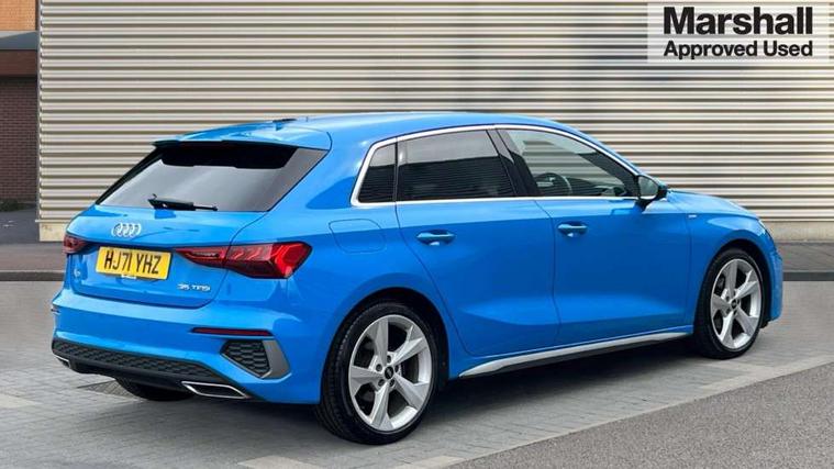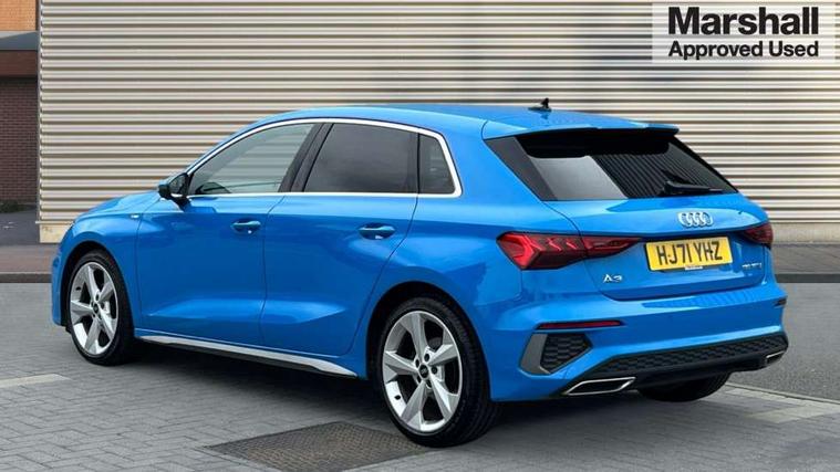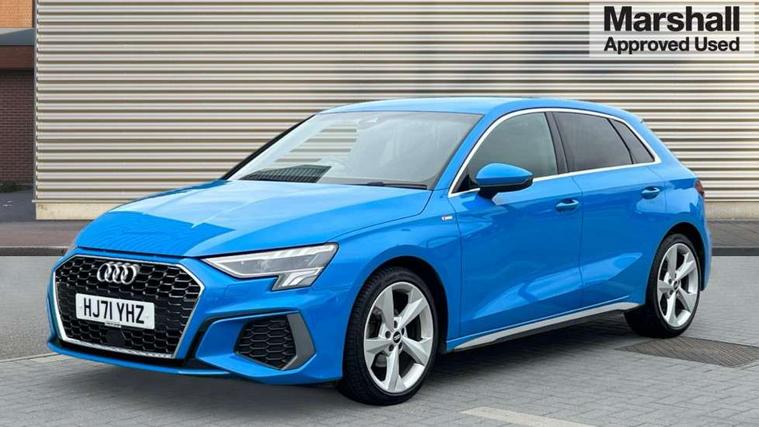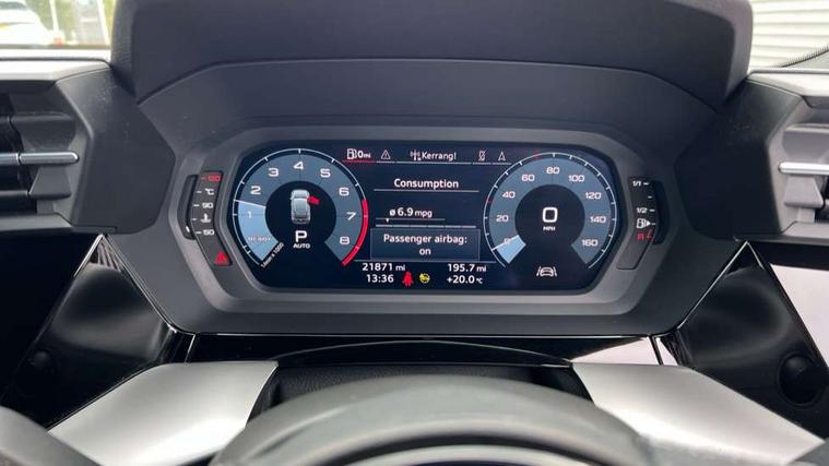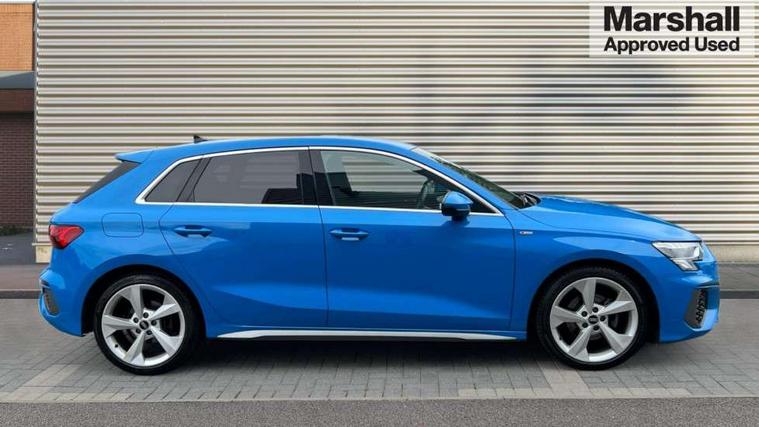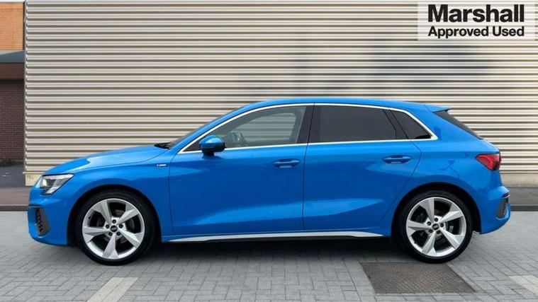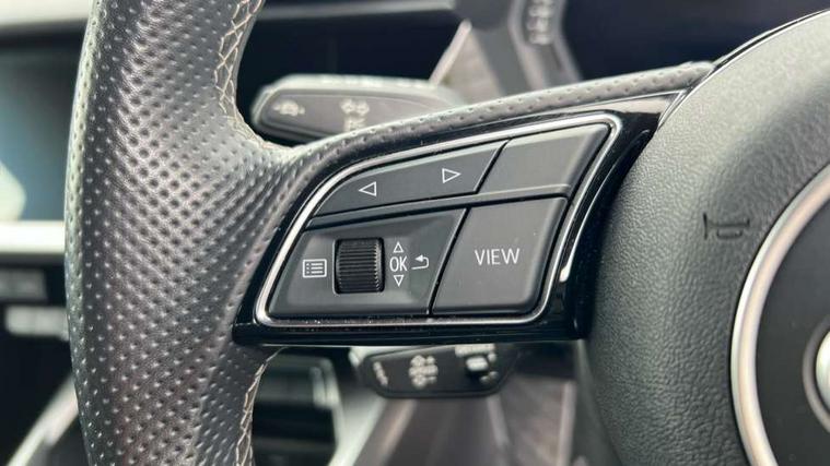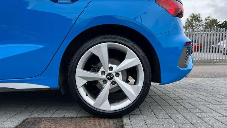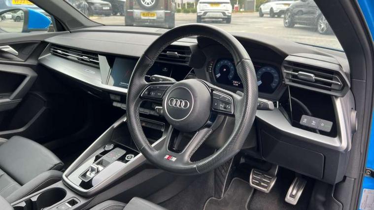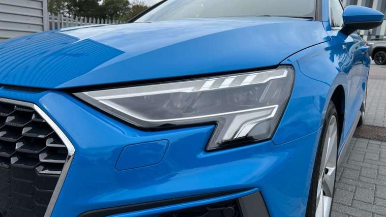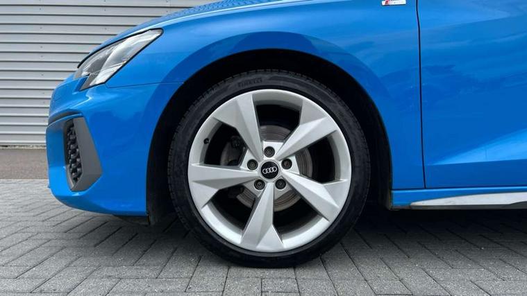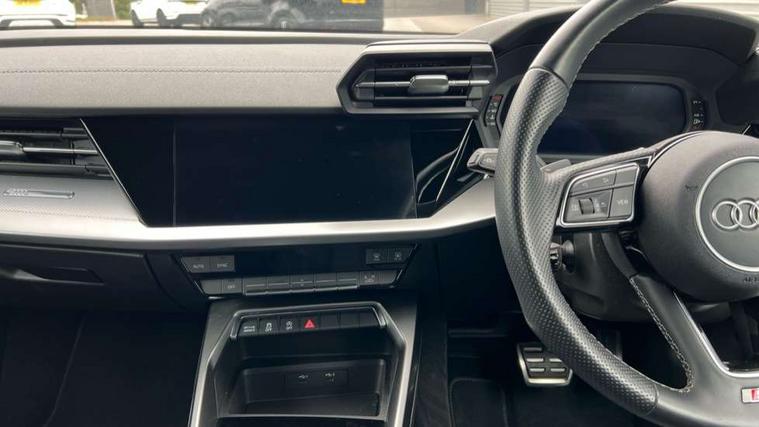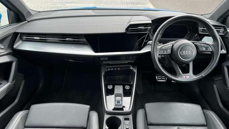 Audi connect emergency call and service, Audi drive select (Auto, Comfort, Dynamic, Efficiency and Individual), Audi smartphone interface, Audi Virtual Cockpit - 10.25" digital and colour instrument cluster, Automatic start/stop system with recuperation, Bluetooth interface, Collision avoidance assistant, Electromechanical power speed sensitive steering, Lane departure warning system, MMI Navigation Plus with high resolution 10.1" colour touch screen display, Service indicator, Trip computer, Voice control system with natural language interaction, 2xUSB-C connection with data and charging functions, 6 passive loudspeakers, DAB Digital radio, 3rd brake light, Acoustic glass windscreen, Aluminium window trim, Auto dimming frameless rear view mirror, Electrically adjustable/heated/folding/auto dimming door mirrors with integrated LED indications + kerb view function for passenger side, Front electric windows, Illuminated aluminium inserts front door sills with S logo, LED daytime running lights, LED headlights with LED rear lights and dynamic rear indicators, Light and rain sensors, Privacy glass - dark tinted rear window, rear door and side windows, Rear electric windows, Rear side air outlets in grained matt black, Rear wiper, S line bumpers, S roof spoiler, 12V socket and storage compartment in front centre console, 40/20/40 split folding rear seat bench with cupholder, Black cloth headlining, Dual zone electronic climate control, Front and rear centre armrest in leather, Front and rear headrests, Front/rear floor mats, Height and reach adjustable steering wheel, Interior lighting - glove compartment light and right hand side, Luggage compartment floor covering, Manual boot compartment lid, Manually adjustable front seats, Seat side bolsters, Stainless steel pedals and front footrest, Twin leather upholstery with front sports seats S embossed logo, Aluminium interior elements pack - A3 Sportback, S line styling pack - A3 Sportback, 3x3 point rear seat belts, Driver and front passenger airbag with passenger airbag deactivation, Electronic Stabilisation Control (ESC) including ABS, ASR and EDL, First aid kit with warning triangle and 2 safety vests, Front side airbags with head airbags and interaction airbag, Hill hold assist, Pre-sense front with pedestrian and cyclist detection, Seatbelt monitoring, Tyre pressure loss indicator, Anti theft alarm, Anti-theft wheel bolts, Electronically operated child lock, Immobiliser, Remote control central locking, Accent surfaces in the dashboard and centre console in platinum grey silk effect paint finish, Dark spectrum aluminium inlays,