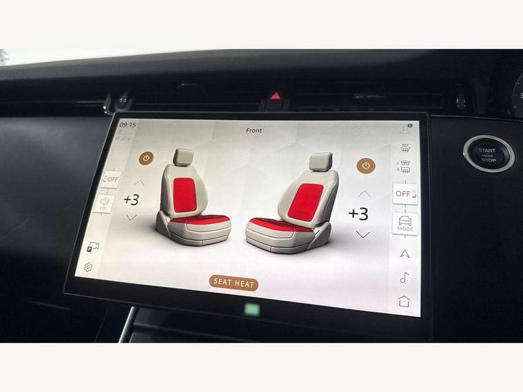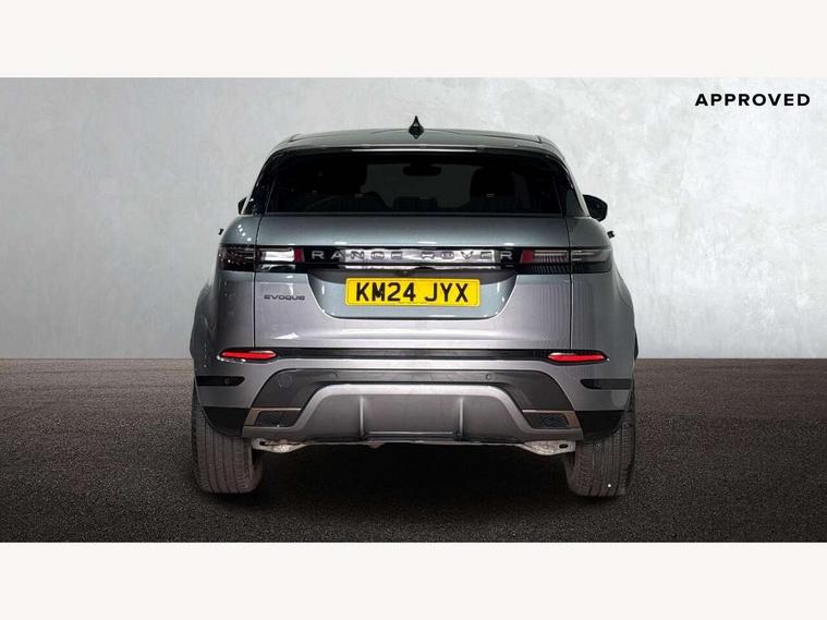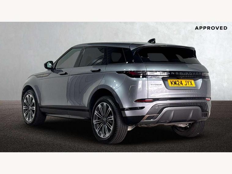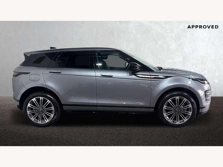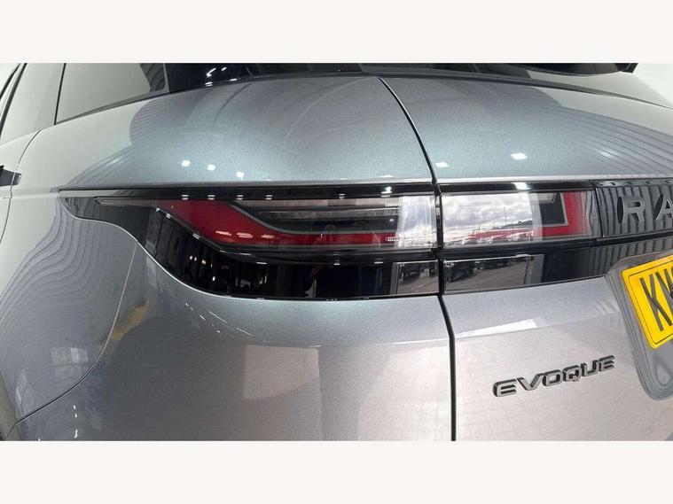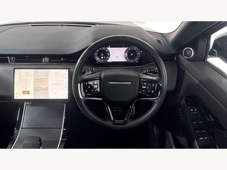11.4" touch screen, Adaptive cruise control, Android Auto, Apple car play, Blind spot assist, Bluetooth connectivity, Brake pad wear indicator warning light, Driver condition monitor, eCall emergency system, Eco mode, Electronic power assisted steering (EPAS), Front and rear parking aid, InControl remote, Interactive driver display, Land Rover InControl apps, Lane keep assist, Pivi pro connected includes diamond pivi variant, smart settings, connected navigation pro, nuance speech licence, Powered tailgate/boot lid, Rear collision monitor, Rear traffic monitor, Traffic sign recognition with adaptive speed limiter, Voice control system, Wireless device charging, All terrain progress control, Diesel exhaust fluid (DEF) large tank, Efficient Driveline, Large fuel tank, Passive suspension, Terrain Response 2, Digital Audio Broadcast radio-DAB, Steering wheel mounted controls, Acoustic laminated windscreen, Auto headlights, Automatic headlight levelling, Electric windows with one touch open/close and anti trap, Flush deployable exterior door handles, Front and rear recovery eyes, Front fog lights, Heated rear window with timer, Heated washer jets, Heated windscreen, Pixel LED headlights with signature DRL and LED tail Lights, Power fold, auto-dimming, heated door mirrors with approach lights and auto dimming driver side, Rain sensing windscreen wipers, Rear animated directional indicators, Rear fog lights, Rear side wing doors, Rear wiper, Side repeater indicators in mirror, Tailgate spoiler, Third brake light, Winter wiper park position, 14 way driver memory electric front seats with 2 way manual headrests + 4 way lumbar support, bolsters, 40:20:40 split folding rear seats with centre headrest and armrest, Ambient interior lighting, Bright metal pedals, Carpet mats, Chrome tread plates with range rover branding Includes stainless steel loadspace scuff plate with etched graphic, Customer configurable single point entry, Electrically adjustable steering column with memory function and easy entry/exit, Front and rear cupholders, Heated steering wheel, Isofix system on outer rear seats, Overhead lighting console, Overhead stowage for sunglasses, Passive front head restraints, Rear air vents, Rear head restraints, Satin chrome gearshift paddles, Single passenger seat, Sunvisors with illuminated vanity mirrors, Twin sliding front centre armrest, Online pack with data plan - Evoque, Power socket pack 2 - Evoque, 3 rear 3 point seatbelts, Anti-lock braking system (ABS), Brake hold function, Customer configurable autolock, DSC - Dynamic Stability Control, Electronic brake force distribution, Electronic parking brake, Electronic traction control, Emergency braking, Front and rear seatbelt reminder, Hill descent control, Hill launch assist, Low traction launch, Occupant protection assist, Passenger seat occupant detector, Power operated child locks, Roll stability control, Six airbags - Driver and passenger airbags/driver knee airbag/front side airbag and curtain airbags, Torque vectoring brake, Tyre pressure monitoring system, Alarm, Immobiliser, Intrusion sensor, Keyless entry, Locking wheel nuts,