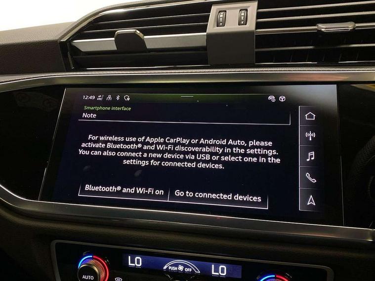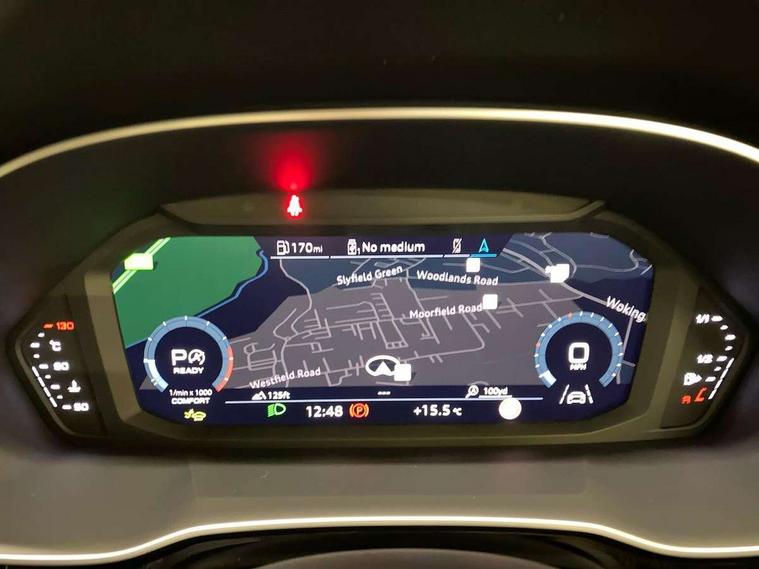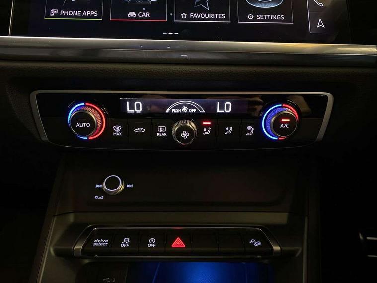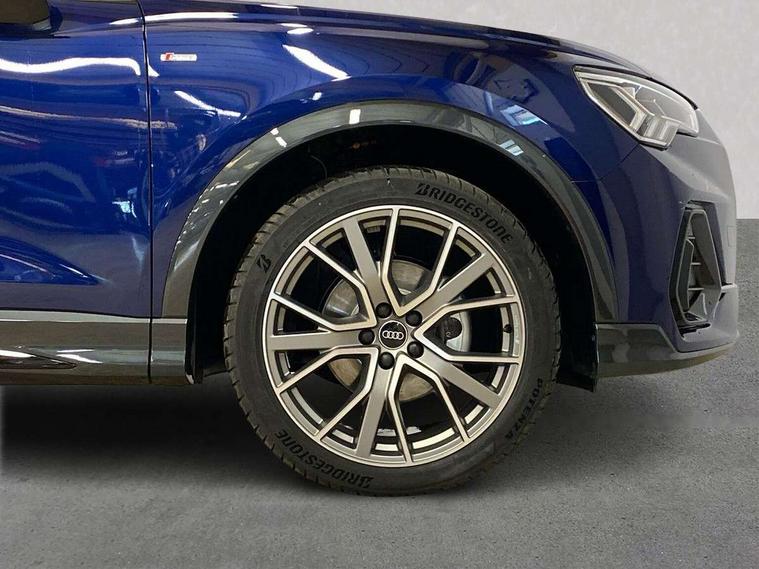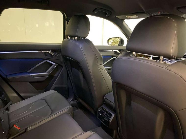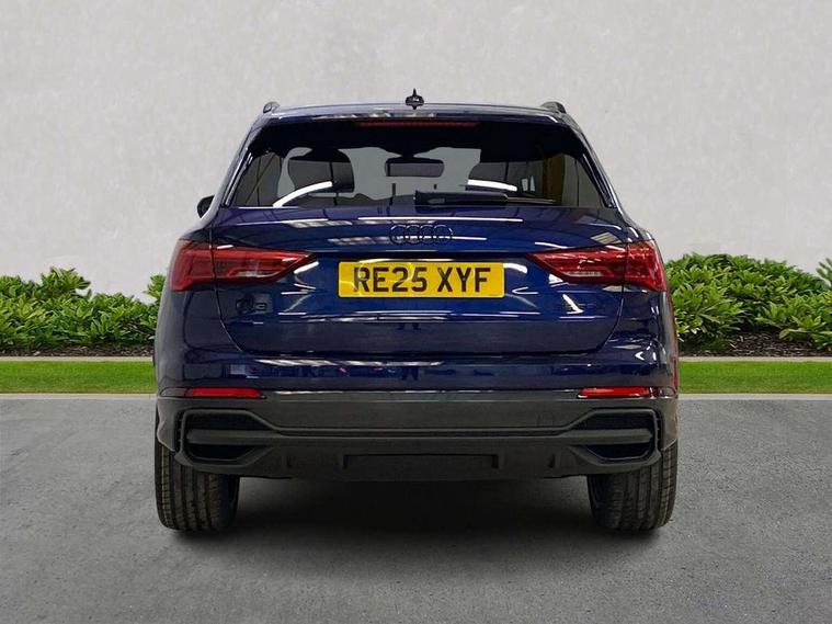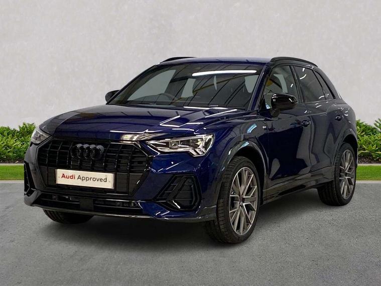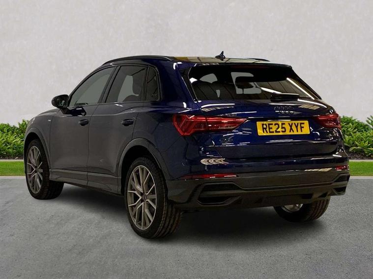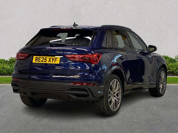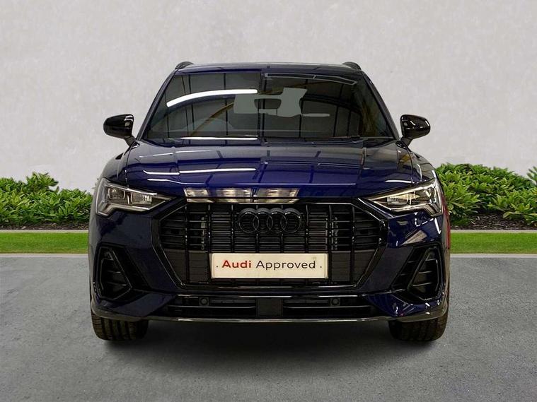Amazon alexa Integration, Audi connect safety and service, Audi drive select, Audi lane departure warning, Audi Virtual Cockpit - 10.25" display, Bluetooth interface, Camera based traffic sign recognition, Distraction and Fatigue warning, Legal emergency call, MMI Navigation Plus with high resolution 10.1 inch touchscreen colour display, Power operated tailgate, Progressive steering, Service interval indicator, Smartphone interface includes wireless Apple carplay/Android Auto, Start stop system with recuperation, Voice control system with natural language interaction, Sports suspension, 2 USB-C ports with charge and data functions, 6 passive loudspeakers, DAB digital radio module, Acoustic windscreen, Audi Beam uses LEDs to project the Audi logo onto the ground as you exit your Q3, Auto dimming door mirrors, Auto dimming frameless rear view mirror, Black roof rails, Electrically folding, adjustable and heated door mirrors with integrated LED side indicators and kerb view function for passenger side, Front and rear electric windows, Front fog lights, Grille vertical bars in aluminium silver/Matt, High gloss black finish B and C pillars, LED Dynamic rear indicators, LED headlights with LED daytime running lights, LED rear lights, LED third brake light, Privacy glass dark tinted rear and rear-side windows (from B-pillar backwards), Rain and light sensors, Rear diffuser grille in grained matt black, Rear diffuser strip in matt anthracite black, Rear side wing doors, Rear wiper, S line bumpers in contrasting Manhattan grey, Variable front intermittent wipers, 12V socket in rear centre console, 3 seat bench in 2nd row, 40:20:40 folding with manual adjustment for 60:40 forwards/backwards position and backrest angle, Adjustable rear seat bench/backrest with centre armrest and cupholder, Black cloth headlining, Dual zone electronic climate control, Electric lumbar support, Front and rear black floor mats with contrast stitching in rock grey, Front and rear headrests, Front centre armrest, Height and reach adjustable steering wheel, Illuminated door sill trims with S logo, ISOFIX child seat mounting for front passenger with airbag deactivation and outer rear seat including top tether attachment point for outer rear seats, Manual front seats with height adjustment, Perforated leather gearknob, Single front passenger seat, Stainless steel luggage compartment sill finisher, Stainless steel pedals, Twin leather upholstery with front sport seats + S embossing, Black styling pack - Q3, Non smoking pack - Q3, 3x3 point rear seatbelts, 6 airbags - Driver, front passenger, curtain and side windows, Audi pre-sense front with pedestrain and cyclist recognition, Electrically operated child locks on rear doors, Electromechanical parking brake, Electronic stabilisation control including ABS, ASR and EDL, Front seatbelt reminder, Hill descent control, Hill hold assist, Pre sense basic, Seatbelt monitoring, Tyre pressure warning, Warning triangle and first aid kit, Anti theft wheel bolts, Immobiliser, Remote central locking, Thatcham approved category 1 anti theft alarm, Aluminium look interior elements, Detail dashboard around MMI touch colour display in glass look, black with surround in aluminium look, Leatherette door armrest, Piano black inlay,