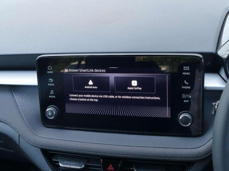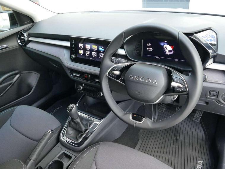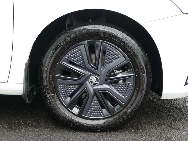 Advanced driver attention and drowsiness monitor, Bluetooth connection, Electromechanical power steering, Exterior temperature gauge, Service interval indicator, Traffic sign recognition, Virtual cockpit with 10.25" colour display, Wireless SmartLink for Apple CarPlay and Android Auto, 6 Speakers (4 in front and 2 in rear), Auxiliary socket for external MP3 player, DAB digital radio reception, Auto dimming rear view mirror, Body coloured bumpers, Door mirror integrated indicators, Front and rear electric windows, Front window wiper intermittent control, Headlight range control - Automatic, Ice scraper in fuel cap, LED daytime running lights with coming and leaving home feature, LED rear lights, Privacy glass, Rear LED fog light, Rear side wing doors, Rear window wiper with washing nozzles, Roof mounted spoiler, SKODA tailgate lettering in chrome, Third brake light, Unique dark chrome design logo on alloy wheels, 2 reading lights in front and 2 reading lights in rear, 3 rear headrests, Backrest split and folding, Central console with removable cup holder and storage box, Chrome handbrake release button, Dual zone air conditioning with climatronic electronic control, Fabric upholstery, Front centre armrest, Gearshift knob/handle in leather, Grain satin black interior door handles, Hand brake lever handle in leather, Height adjustable front headrests, Height adjustable front seats, Height adjustable steering wheel, ISOFIX and TopTether anchorage points to the outer rear seats, ISOFIX and TopTether on the front passenger seat, Luggage compartment lighting, Manually adjustable lumbar support in front seats, Pollen filter, Rear seat bench unsplit, Single front passenger seat, Skoda lettering on steering wheel, Storm grey headlining, Sun visors with mirror and airbag label on passenger side, Textile floor mats, Ticket holder, Umbrella in drivers door, 3-point height adjustable front seats belts with pretensioner and force limiter, Automatic warning lights in case of crash, Driver and passengers airbag with switch off function, e-Call+, ESC including ABS, MSR, ASR, EDS, HBA and XDS, Front and rear seat belt warning, FRONT ASSIST (AEB City and AEB Inter Urban), Front side airbags, Head airbags, One tone horn, Pedestrian protection, Three rear 3-points safety seat belts with pretensioner and force limiter including stop function for outer rear seat belts, Tyre pressure monitoring system, Anti-theft alarm system including immobiliser, interior monitoring, backup horn, and towing protection, Central locking with radio remote control, interior controls, SAFE function and 2 foldable keys, Black painted air vents, Grain satin black central console cover, Metallic grey upper decorative trim, Satin black door and side trim panel in front, Textile Kota grey lower decorative inserts, Anti-theft wheel bolts protection, Super-low rolling resistance tyres,