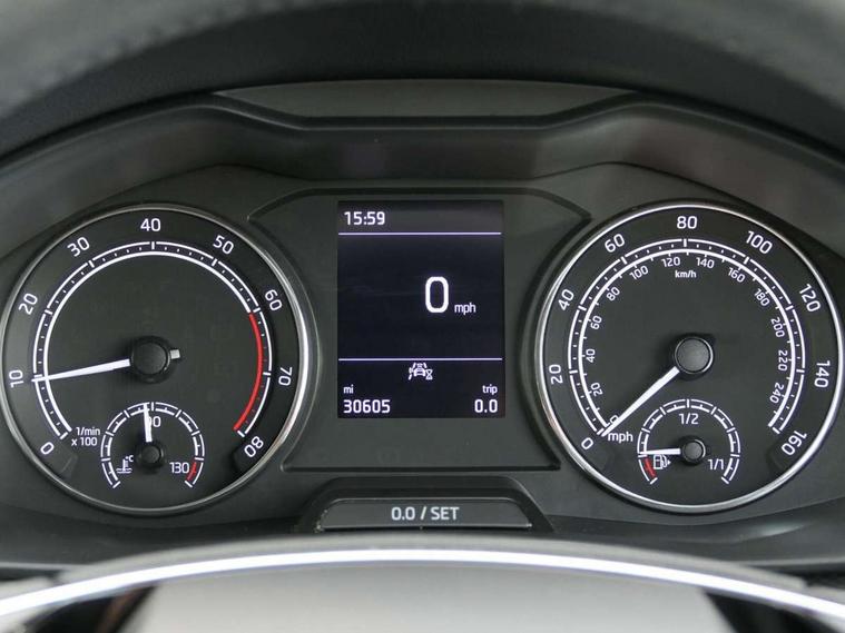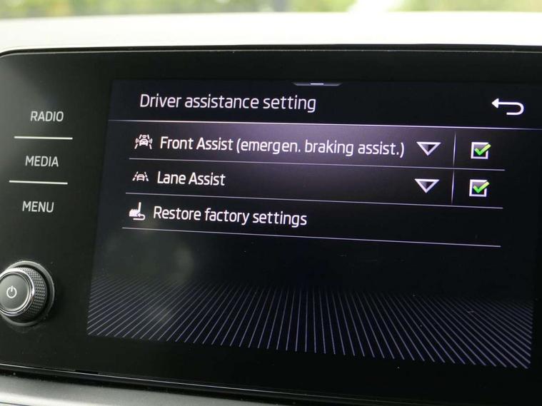 Bluetooth system, E-call, Front assist system, PAS, Service indicator, Speed limiter, Wireless Smartlink for Apple CarPlay (wired for Android Auto), 8 Speakers, Auxiliary input socket, DAB Digital radio, Body colour bumpers, Body colour door mirrors and handles, Chrome grille surround, Dimming rear view mirror with black surround, Electrically adjustable and heated door mirrors, Front and rear electric windows, Headlight range control, Heated rear window, LED rear lights - low functionality, LED third brake light, Light sensors, Rain sensor, Rear fog lights, Rear side wing doors, Rear wiper, 12V Accessory socket in centre console, 3 seat bench in 2nd row, Chrome inner door handles, Cloth upholstery, Front head restraints, Glove compartment with illumination, Ice scraper, Isofix child seat fittings on outer rear seats, ISOFIX on front passenger seat, Manual lumbar support for front seats, Rake/reach adjustable steering wheel, Reading lights, Single front passenger seat, Sun visors with illumination on front passenger, Textile floor mats, Third rear headrest, Top tether for front passenger seat, Umbrella in driver's door, 3x3 point rear seatbelts, Airbags - driver and front passenger, ESP, Front passenger airbag deactivation switch, Front side airbags with curtain airbags, Hill hold control, Manual parking brake, Manual rear child locks, One tone horn, Rear disc brakes, Seatbelt reminder for driver an co-driver, Traction control, Tyre pressure monitor, Anti-theft alarm system with interior monitoring, backup horn, towing protection and remote central locking with SAFE system, Anti-theft wheel bolts, Electronic engine immobilizer,