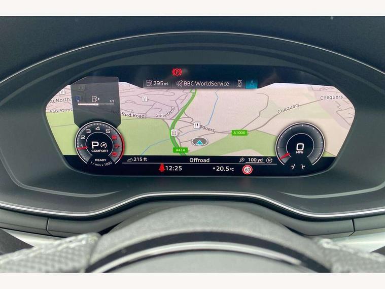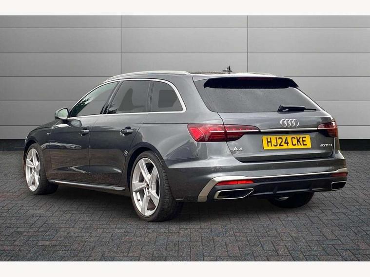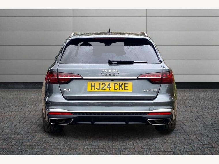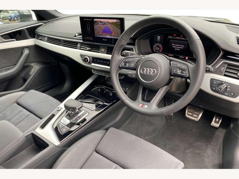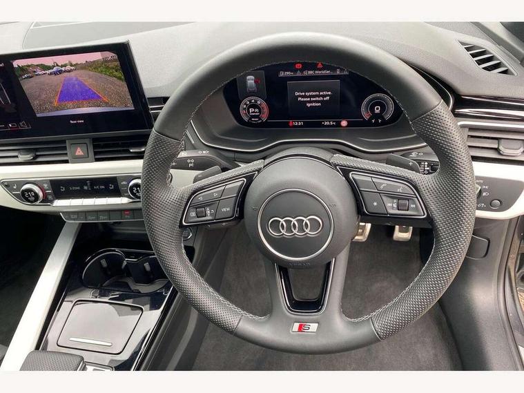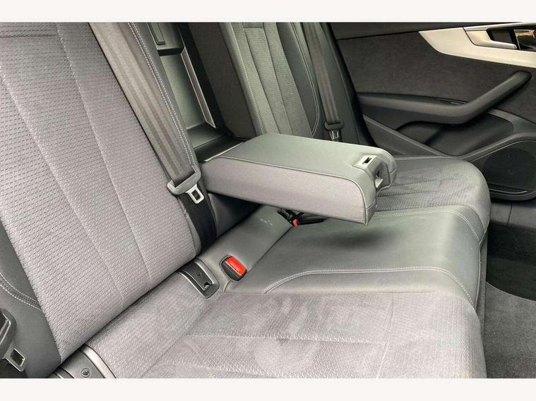 Audi connect safety and service (e-call), Audi drive select, Audi smartphone interface, Audi virtual cockpit, Automatic start-stop system with coasting functionality and efficiency programme, Bluetooth interface, Camera based traffic sign recognition, Electromechanical power steering, Email, calendar and text messages displayed via MMI, Front and rear parking sensors, Lane departure warning, MMI Navigation plus with MMI touch includes 10.1" high resolution colour MMI display, 3D map, Power operated tailgate, Rear view camera, Voice control system, 54 litre fuel tank, Sports suspension lowered by 23mm, 2 USB charging ports, 8 passive loudspeakers, DAB digital radio reception, Aluminium roof rails, Auto dimming rear view mirror, Body colour door handles, Body colour front spoiler lip, Body colour side sill trim, Body coloured door mirrors, Electric adjustable/heated/folding door mirrors with auto dimming, Grained matt black side air inlets with matt aluminium silver inlay, High beam assistant, Honeycomb structure radiator grille in grained matt black, LED headlights with LED rear lights + dynamic rear indicators + headlight adjustment and high beam, turning light + LED daytime running lights, LED third brake light, Matt aluminium silver tailpipe trim, Privacy glass, Rain and light sensors, Rear side wing doors, Rear wiper, S Line badges on the front wings, S line front and rear bumpers with side skirts, S Line rear diffuser in matt anthracite black with trim strip in matt aluminium silver, S Line roof edge spoiler, Variable intermittent front wash/wipe, Windscreen with acoustic glazing, 3 spoke high multi-function sports leather steering wheel grips in perforated leather with S badging including paddle shift, 4 way electric lumbar support for driver and front passenger, 40/20/40 split folding 3 rear seat bench in 3 parts with rear centre armrest, Black carpets, Black cloth headlining, Black perforated leather gearknob, Contrast stitching on seats, steering wheel and gear lever gaiter, Deluxe 3 zone electronic climate control, Electric load area cover, Front and rear head restraints, Front centre armrest, Heated front seats, Illuminated door sill trims with S logo, ISOFIX child seat mounting and top tether, Manual seat adjustment, Single front passenger seat, Stainless steel pedals and foot rest, High gloss package - A4, LED Interior light pack - A4/S4, 3 rear seatbelts, 6 airbags - Driver, front passenger, curtain and side windows, Attention and drowsiness assist, Electronic Stabilisation Control (ESC) including ABS, ASR and EDL, Hill hold assist, Multi collision brake assist, Pop-up bonnet for pedestrian protection, Pre sense city, Rear door child safety locks, Seatbelt monitoring, Warning triangle and first aid kit, Anti theft alarm, Anti theft wheel bolts, Central locking, Keyless Go, Matt brushed aluminium inlays, Tool kit, Tyre repair kit,