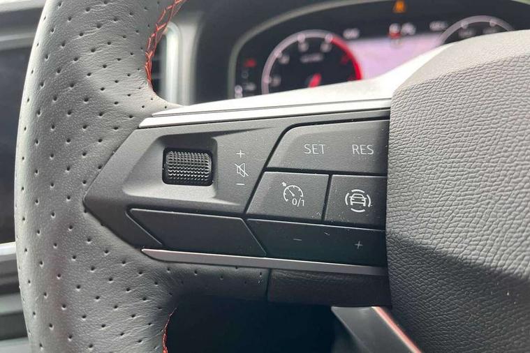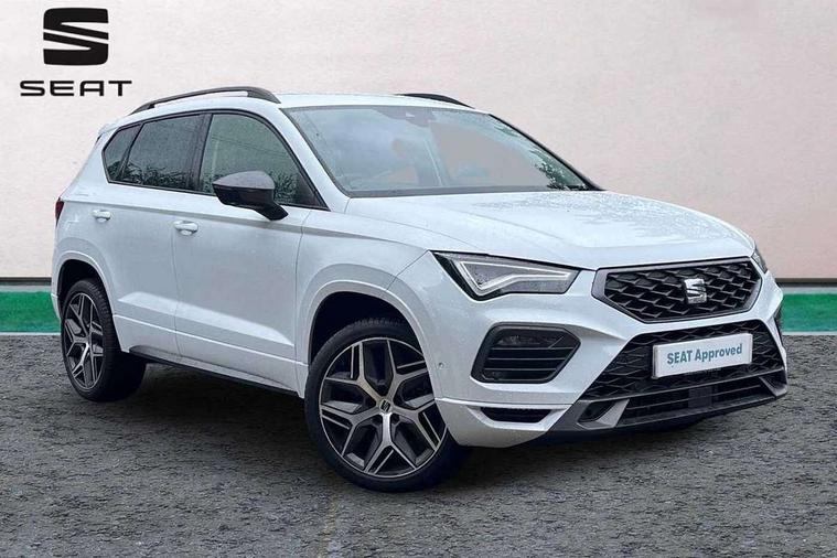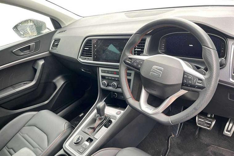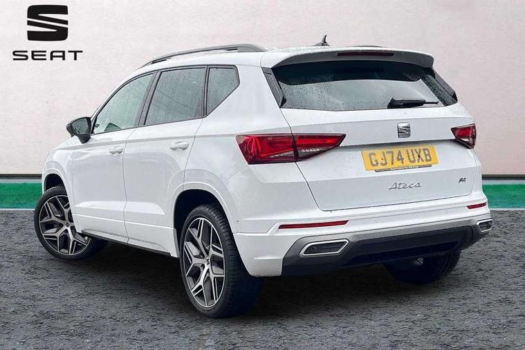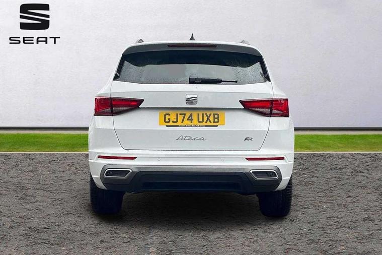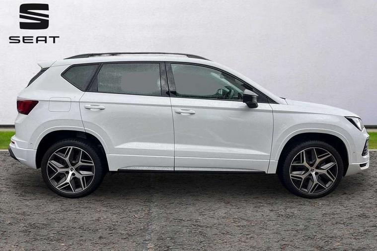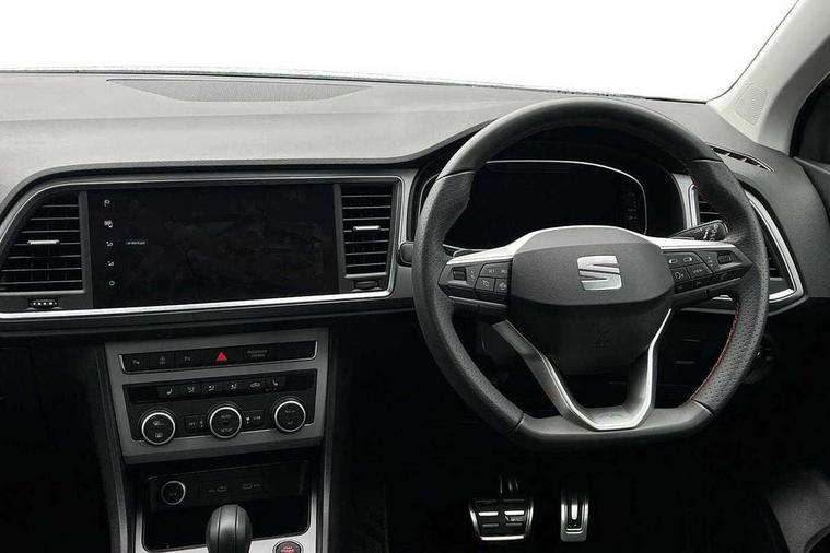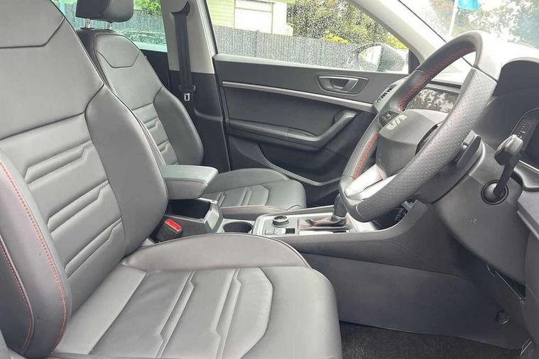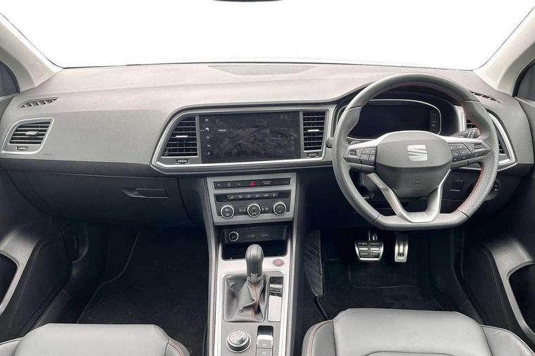 10" Digital cockpit, Cruise control system with speed limiter, E-call, Outside temperature gauge, Progressive power assisted steering, SEAT drive profile with driving experience button - Normal, Sport, Eco and Individual mode, gearshift, steering and throttle response, Self parking functionality (includes front and rear parking sensors), Start/stop system, Tailgate, Trip computer, wired and wireless full link smartphone integration, Wireless phone charger, Steering wheel mounted audio/phone controls, Black roof rails, Black side window trim, Body colour bumpers, Body coloured wheel arch surrounds, Chrome front grille frame, Dark tinted rear windows, Daytime running lights, Door mirrors with welcome light silhouette, Dynamic headlight range control with self adjusting whilst driving, Electric adjustable/heated/folding door mirrors, Front and rear electric windows, Full LED headlamps with lens and LED front fog lamps with cornering function, Illuminated aluminium front door sill, LED 3rd brake light, LED rear tail lights with dynamic indicators, Rear exhaust tailpipe, Rear fog lights, Rear side wing doors, Rear wash/wipe, Roof spoiler, Variable front intermittent wipers, 12v socket in front, 3 seat bench in 2nd row, 60/40 split folding rear seat, Aluminium pedals, Dual zone climate control, Electric adjustable driver seat with memory function, Front and rear head restraints, Front centre armrest, Front seat back storage pockets, Heated front seats, Height adjustable passenger seats with lumbar adjustment, ISOFIX points in outer rear seats with top tether anchorage points, Leather sports steering wheel and gear knob, Leather upholstery with front comfort seats, Manual lumbar support on driver seat, Rear armrest and easy back seat release mechanism from boot, Single front passenger seat, Steering wheel mounted gearshift paddles, Convenience pack - Ateca, Interior lighting pack - Ateca, Navigation system pack with DAB - Ateca, Safety and driving pack with attention and drowsiness assist - Ateca, 3x3 point rear seatbelts, ABS, Traction control system (TCS), Electronic stability control (ESC) and Electronic differential lock system (XDS), Airbags - Driver and front passenger airbag with deactivation, front side, two curtain and driver's knee airbags, Electric parking brake with auto hold function, Front and rear seatbelt reminder, Front assist with autonomous emergency braking, Hill hold control, Manual rear child locks, Single tone horn, Tiredness recognition system, Tyre pressure monitoring system, Alarm, Keyless entry, Locking wheel bolts, Remote central locking, Chrome interior detailing, 19" Exclusive machined alloy wheels with decorative inserts 36/7 in cosmo grey,