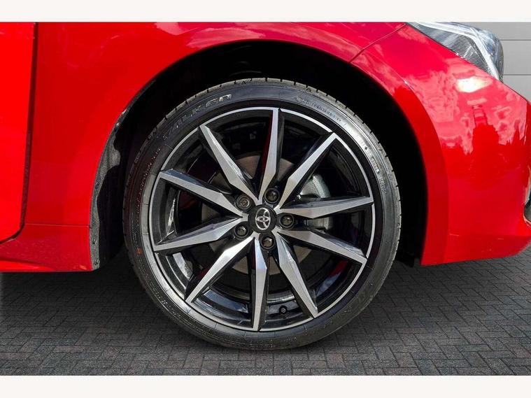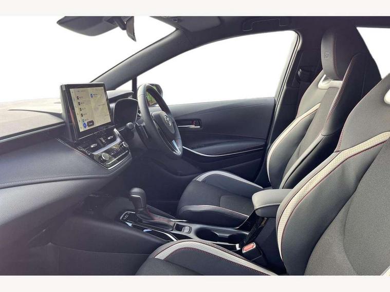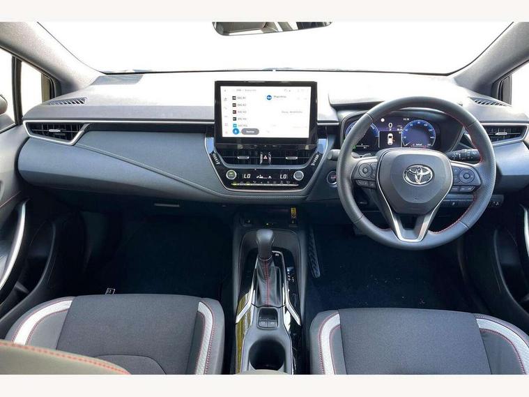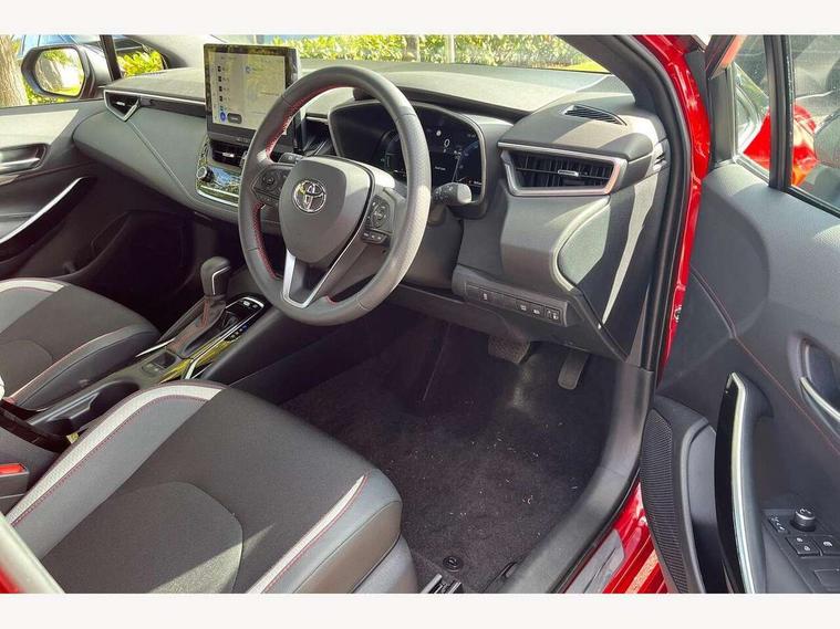 10.5" Multimedia display screen, Bluetooth telephone connectivity, Connected car functionality upgrade, tracker, remote status and e-care, Drive mode select (Eco, Normal), E-call, Electrically assisted power steering, EV drive indicator, Front and rear parking sensors, Full Digital 12.3" TFT Digital Combimeter, Intelligent clearance sonar, Key reminder warning, Lane Departure Alert (LDA) switch on steering wheel, Memory on adjustable speed limiter, MyT connected services, Proactive driving assist (PDA), Reversing camera, Smart entry and push button start with GR Logo, Smartphone integration with Apple CarPlay and wired android auto, Tailgate, Toyota remote services, Toyota smart connect navigation, Wireless charger, Gasoline particulate filter, Vehicle Stability Control (VSC), 6 speakers, AM/FM radio, DAB Digital radio, Front USB-C in centre console, Front USB-C in dashboard, Smart voice assist/ Voice recognition, USB and Aux in connectors + 12V front outlet, Anti-jam protection on power windows, Auto up and down function on all power windows, Automatic folding mirrors, Automatic headlights with high beam assist, Black centre and side air vents, Black toyota logo in front, Body coloured bumpers, Body coloured door mirrors, Body coloured outside door handles, Dark chrome lower grille, Electrochromatic mirror, Follow me home headlights, GR Sport dark chrome front mesh grille and black rear grille, GR Sport exclusive under guard, GR sport scuff plates, LED daytime running lights, LED dual beam projector headlights, LED front fog lights, LED High mounted stop light, LED rear combi lights with LED lightguide, Manual headlight levelling system, New grille pattern, Noise reduction layer on windscreen, Piano black diffuser, Power adjustable heated door mirrors, Power front windows, Power rear windows, Privacy glass with UV filter, Rain sensing wipers, Rear side wing doors, Rear window defogger, Rear window wiper, Reverse tilting door mirrors, Rocker and door lower moulding, Roof spoiler, Satin chrome insert on front air vents, Satin chrome insert on front door assist grips, Satin silver front spoiler, Shark fin antenna, Tailgate release with push button, Time adjustment on intermittent wiper, Turning signal integrated indicators in door mirrors, Unique lower skirt, Unique side rocker with black insert, UV-filter on driver and passenger windows, 2 Shopping bag hooks in luggage compartment, 3 rear headrests, 3 seat bench in 2nd row, 3 spoke steering wheel with satin insert and red stitching, 4 tie down hooks in luggage compartment, 60/40 split folding rear seat, Adaptive cruise control (ACC) switch on steering wheel, Adjustable speed limiter switch on steering wheel, Audio, multimedia and telephone switches on steering wheel, Black armrest on centre console box, Black gear shift console, Boot light, Boot underfloor storage, Centre room light, Driver and front passenger personal light, Driver and passenger assist grip, Driver and passenger seatback pockets, Driver and passenger sun visor with mirror and light, Dual zone automatic air conditioning with ECO mode switch, Electric lumbar support for passenger, Fabric/synthetic leather upholstery, Front and rear cup and bottle holders, Front door pockets, Front head restraints, Front passenger seat, Front sliding synthetic leather armrest, Gear knob, GR Sports seats with partial leather bolsters, Heated front seats, Illuminated entry system in room lamp, ISOFIX seat fixing (2 fixings on rear outer seats), Manual height adjustable for driver and front passenger seat, Manually tilt with sliding driver and front passenger seat, Nanoe-X air purifier, Paddle shifts, Parcel shelf, Pollen filter, Power adjustable lumbar support on driver seat, Power window switches with satin chrome inserts, Rear armrest with 2 cupholders, Rear passenger coat hooks (2), Red stitching on gear shift, Remote air conditioning, Satin chrome inside door handles, Satin chrome surround on speedometer, Sliding armrest on centre console box, Slow opening glovebox with lights, Textile floor mats, Tilt/telescopic steering column, Voice recognition switch on steering wheel, Whiplash Injury Lessening (WIL) feature (active headrest) for seats, White ambient lighting on open tray and front cup holder, Toyota safety sense 3 pack - Corolla, 3x3 point rear seatbelts, Adjustable driver and front passenger seat belt extender to top anchor point, Anti lock braking system + Electronic brake force distribution, Brake assist function, Child locks on rear doors, Downhill Assist Control (DAC), Electronic parking brake, Emergency brake light signal (EBS), Front passenger airbag on/off switch, Front seatbelt reminder, HAC - Hill start assist control, Rear seat belt reminder, Seatbelt pretensioners and force limiters, Supplemental restraint system (SRS) 7 airbags - dual driver, dual side curtain, side impact and driver knee airbags, Traction control, Tyre pressure warning system, Acoustic vehicle alert system (AVAS), Alarm with motion sensor and immobilizer, Power passenger window lock, Remote central locking + deadlocks, GR Sport interior and exterior styling, Satin chrome dash trim, Soft touch texture on upper dashboard, Stitching on lower dashboard, 18" 10 spoke black machined face alloy wheels, Tyre repair kit, Unique wheel finish with red wheel cap,