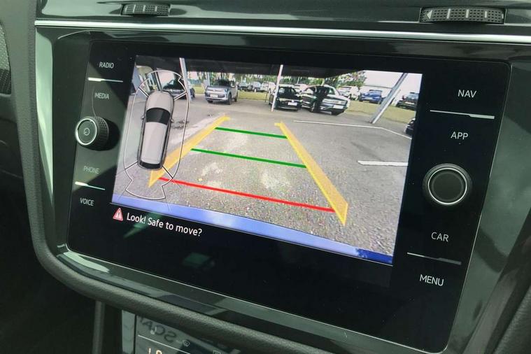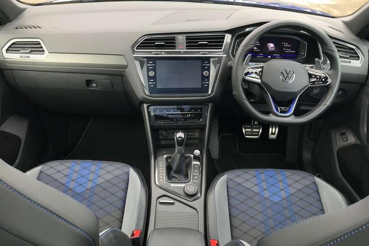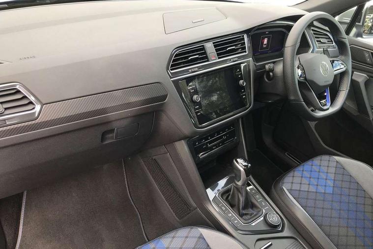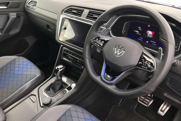 Adaptive cruise control ACC stop and go including speed limiter, App-Connect incl. App-Connect Wireless for Apple CarPlay and Android Auto, Bluetooth phone integration system, Distance control assist, Driver alert system, Driver profile selection, Dynamic road sign display, eCall emergency call system, Electromechanical speed sensitive power steering, Engine start/stop button, Instrument cluster mph speedometer Great Britain, Lane keeping system Lane Assist, Lights on warning, Motorised electric tailgate operated via key fob, drivers door and foot movement under tailgate, Multifunction front facing camera, Outside temperature display, Premium multifunction display with multi colour display, Rev counter, Revision / skills operating concept travel assistant, Service interval indicator, Speed limit display, Start/stop system with regenerative braking, Tailgate/trunk lid unlocking from outside, Trip computer, Warning sound and light for doors and tailgate open, ACC - Adaptive chassis contol with adaptive dampers, All wheel drive - 4Motion, Battery regeneration during braking, XDS electronic differential lock for improved traction and handling, 4 X 20 watt output, 8 speakers, Diversity antenna for FM reception, SD card slot, Simultaneous pairing of 2 compatible mobile devices, SMS functionality - read, compose and send SMS messages using touch-screen display, Title and cover art display, USB C ports, Auto dimming interior rear view mirror, Automatic headlight control system, Body colour door handles, Body coloured door mirrors with integrated indicators, Chrome matt mirror covers, Chrome moldings on the side windows, Coming/leaving home lighting function, Dynamic headlight range control, Front and rear electric windows, Front illuminated door sills with R logo, Heated rear window, High level 3rd brake light, IQ light-Adv high beam, Dynamic light assist for LED matrix headlamp+LED separate DRL+DCL, dark red rear LED tech, Poor weather light+ cornering light, Laminated safety glass windshield, heat and sound insulating, LED rear number plate lights, License plate carrier in front and rear, Poor weather light and cornering light, Privacy glass for rear side windows and rear window, R-Logo light projection, R-Logo on radiator grille with side panels and rear, R-specific diffuser, painted black with cut out for trailer hitch, R-Specific front and rear bumpers, Rain sensor windscreen wipers, Rear fog lamp, Rear side wing doors, Rear spoiler in R style, Rear windscreen washer and wiper with interval delay, Side and rear windows in heat insulating glass, Silver anodised roof rails, Trailer Stability Programme, Windscreen wipers/ intermittent wipe + 4 position delay, 12V outlet in center console rear and in luggage compartment, 12V outlet in front and tray, 2 cup holders in front, 2 LED front reading lights, 2 LED rear reading lights, 3 bench rear seats in 2nd row, 3 rear headrests, 4 load lashing points, 40:20:40 split folding rear seats, Air Care Climatronic 3 zone automatic climate control with enhanced air filter and controls in the rear, Backrest release for left front seat, Black headlining, Climate control unit rear with touch function, Door and side trim panel in foam film, insert in leatherette, Floor mats with R-Logo and stitching, Front centre armrest, Front footwell illumination, Front seats head restraints (x-adjustment), Height adjustable front seats, Height/reach adjust steering wheel, Instrument lighting white adjustable panel illumination, Interior light with delay, Isofix Preparation 2 Rear child seats, Leather gear knob, Lighting door sill trim at front with R Logo, Lockable cooled glovebox, Luggage compartment lighting, Luggage net, Pedals and footrest in stainless steel, R Specific key caps, R-specific sport skin with R Logo in active Info dsiplay, R-taster (direct selection of race mode/ flap control), Rear bench seat asymetrically split folding, longitudinally movable and folding with load-through hatch and center armrest, Remote unlocking for rear seat backrest, Removable luggage cover, Removable rear headrests, Safety optimised front head restraints, Single front passenger seat, Sliding/reclining rear seats, Standard rear seat release, Storage compartment in driver's door, Storage compartment in passenger's door, Storage compartment in rear doors, Storage compartments in luggage area left and right, Storage tray on dashboard, Sun visors with illuminated vanity mirrors, Tool kit, Top sports seats integrated headrest, blue R-Logo in front seats, seat centre panels and outer rear seats in fabric inner side bolster art Velors, Variable boot floor, height adjustable and removable, Easy open and close pack with safelock - Tiguan, 3 point seat belt for centre rear seats, 3 point seat belts with seat belt pretensioners for the outer rear seats, Active bonnet, Curtain airbags for front and rear passengers, Driver/Front Passenger airbags, Drivers knee airbag, Electronic parking brake with auto hold, Electronic Stability Control with driver steering recommendation, ABS, ASR, EDL, EDTC and trailer stabilization, Front assist with autonomous emergency braking (for Adaptive Cruise Control ACC up to 130 mph), Front disc brakes, Front passenger airbag deactivation, Front side airbags, Height adjustable front 3 point seatbelts + pretensioners, Hill hold control, Manual child proof rear door locks, Pedestrian monitoring system, Power assisted brakes, Proactive passenger protection system in combination with front assist, Rear disc brakes, Rigid safety cell with front and rear crumple zones, Two tone horn, Tyre pressure monitoring system, Warning sound and light for front seat belts if unfastened, Anti theft alarm system with interior monitoring, backup horn and towing protection, Anti theft wheel bolts, Central locking system with safelock radio remote control and 2 remote control folding keys, Electronic engine immobiliser, Tyre mobility kit Includes 12V compressor and tyre sealant,