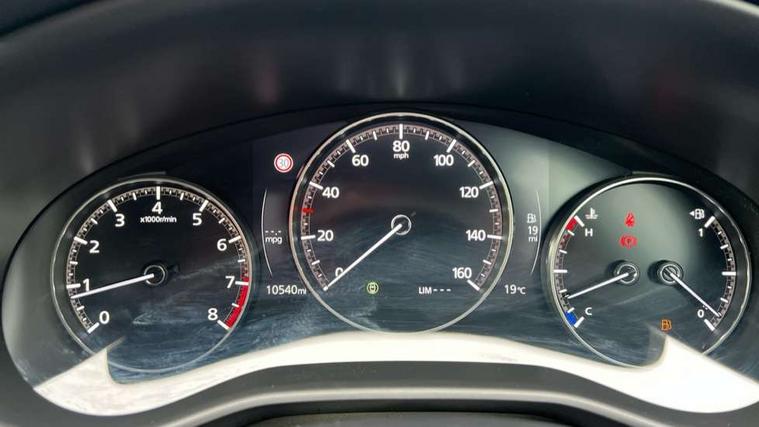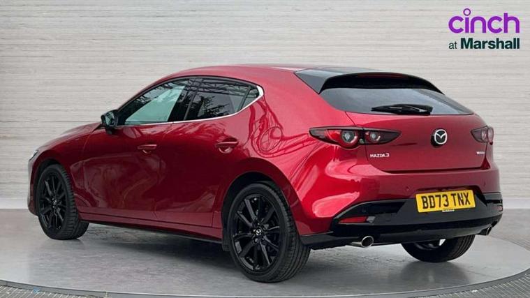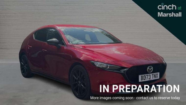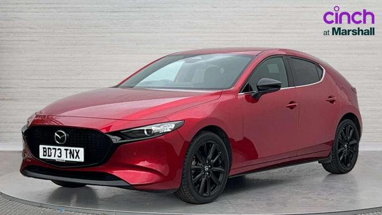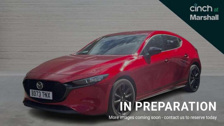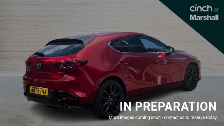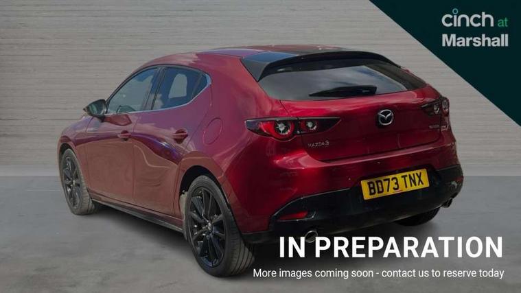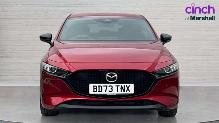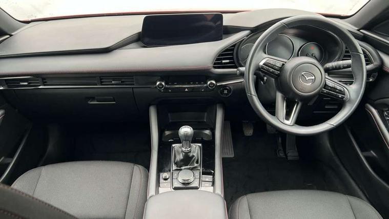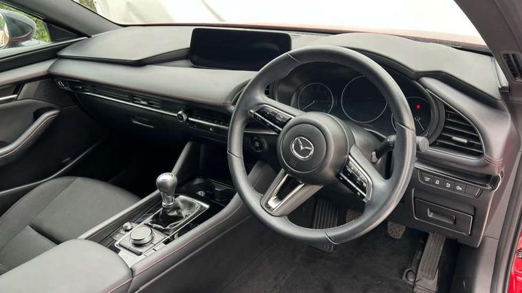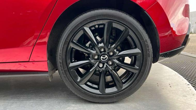 10.25" display with Mazda Connect infotainment, 7" colour TFT display, Audio transfer from bluetooth devices, Blind spot monitoring with rear cross traffic alert, Colour active driving display inc Windscreen projected, Traffic Sign Recognition, turn-by- turn navigation and Mazda Radar Cruise Control information, Digital instrument cluster, Driver attention alert system, E-call with GPS, Emergency stop signalling system, Engine start/stop button, Front and rear parking sensor with audible and visual warning, Head up Display, Integrated bluetooth with steering wheel mounted controls, Intelligent speed assist, Lane keep assist system (LAS) with Lane departure warning system (LDWS), Mazda connected services, Mazda Navigation System with european mapping, Mazda Radar Cruise Control, Mobile App interface, Multimedia Commander, PAS, Reversing camera, Service indicator, Tailgate, Traffic sign recognition (TSR), Trip computer, Wireless Apple CarPlay/Android Auto, Wireless charging, Cylinder Deactivation, i-stop, 2 USB-C ports in the front, Mazda Multimedia System with AM / FM / DAB radio with 8 speakers, Auto dimming rear view mirror, B-pillar garnish in piano black, Black door mirrors, Coming/leaving home lighting function, Dark metallic finish signature wing, Daytime running lights, Dual chrome tailpipes tip, Dusk sensing headlights, Electric front/rear windows with one touch/auto up/down, Electrically adjustable, heated auto power folding door mirrors, Front body coloured bumper with black lower bezel, Front kodo turn signal, Gloss black finish front grille, Gloss black rear roof spoiler, High beam control, LED front fog lights, LED headlamps with auto levelling, LED indicator lights, LED rear combination lights, LED third brake light, Privacy glass with dark tinting on rear side windows and rear window, Rain sensing front wipers with adjustable sensitivity and speed, Rear colour coded bumper with gloss black lower moulding, Rear fog lights, Rear side wing doors, Speed adjustable rear wash wiper with intermittent wipe, 12v electrical power outlet, 3 seat bench in 2nd row, 60/40 split fold down rear seats, Black with red stiching steering wheel, gearshift gaitor, dashboard panel, armrest, Cloth upholstery, Dark cloth door panel inserts, Dark roof headlining, ceiling and pillars, Driver seat manual slide, recline, height and seat tilt adjust, Driver, front passenger and two rear door pockets, Driver, Front passenger and two rear grab handles with coathooks, Driver/passenger sunvisors + vanity mirrors (drivers side with ticket holder), Dual zone climate control air conditioning, Folding rear centre armrest with two cup holders, Front and rear courtesy lamps, Front armrest, Front centre storage with two cupholders, Front head restraints, Front passenger seatback pocket, Front passengers seat manual slide, recline and height adjustment, Gear shift indicator, Heated front seats with 3 stage setting, Illuminated glovebox, Interior colouration dashboard and doorcards in black with dark stitching, ISOFIX child seat anchorage points attached on outer rear seats, Leather wrapped gear shift knob, Leather wrapped steering wheel, LED interior light, LED light in luggage compartment, Power outlet in luggage compartment, Roof mounted sunglasses holder, Single front passenger seat, Three height adjustable rear head restraints, Tilt/height adjustable steering wheel, 3 point ELR front seatbelts with pretensioners, 3 rear 3 point seatbelts with ELR, Anti-lock braking system (ABS), Drivers knee airbag, DSC - Dynamic Stability Control, Dual stage driver and single stage passenger airbags, EBD - Electronic brakeforce distribution, Electronic parking brake with auto disengage function and auto hold function, Front and rear curtain airbags, Front passenger airbag cut-off switch, Front side airbags, Front smart city brake support, G-Vectoring control plus, Hill launch assist, Intelligent Traction Control system, Manual child lock in rear doors, Mild Hybrid system with regenerative braking, Seatbelt reminder for driver/front passenger and rear seats, Tyre pressure monitoring system (TPMS), Auto door lock when driving, Remote central locking + deadlocks, Smart keyless entry, Thatcham accredited alarm and immobiliser, 18" Black alloy wheels, Emergency tyre repair kit,