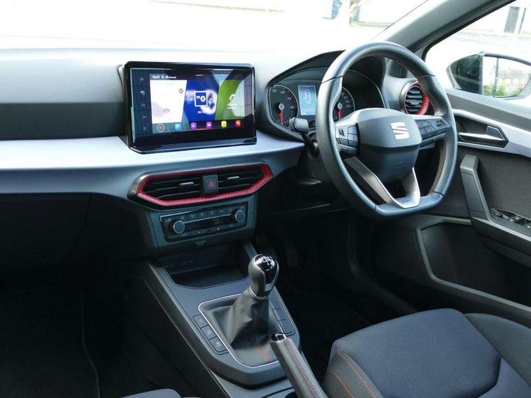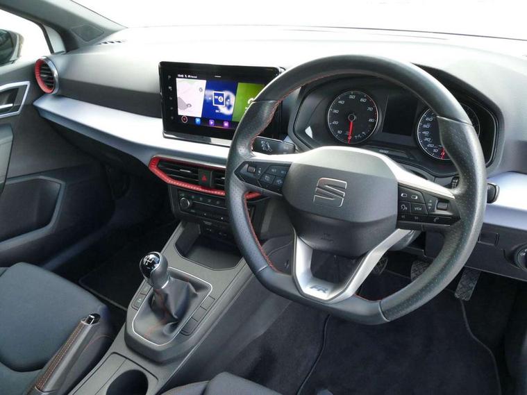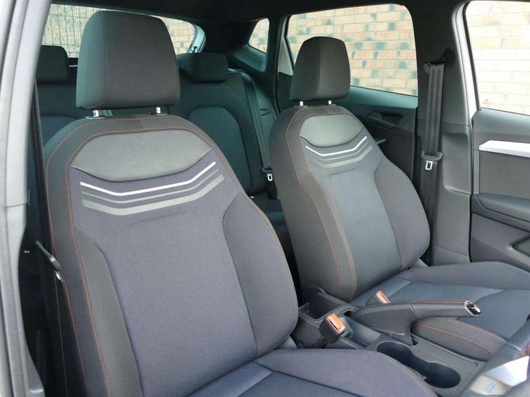 'Lights On' Reminder warning buzzer, 9.2" touchscreen navigation system with type C USB socket, Voice control and DAB/AM/FM radio, Auto start and stop system, Bluetooth audio streaming with handsfree system, Digital clock, Full link smartphone integration with mirror link, wireless apple carplay, Google android auto + USB Type C cable for apple and android devices, Lane assist, Low fuel warning light, Outside temperature gauge, Power Steering, Seat connect with safety, service, remote and online, SEAT drive profiles and ECO function, SEAT logo boot release, Speed limiter, Trip computer, Sports suspension, Auxiliary input socket, Radio/MP3 player, SD card slot, Steering wheel mounted controls, Anti theft roof antenna, Auto dimming rear view mirror, Automatic rain sensing wipers, Black door mirrors, Body colour bumpers, Body colour door handles, Brilliant black window surrounds, Dark tinted rear windows, Electric adjustable/heated/folding door mirrors, Electric front windows, Electric headlight adjustment, Electric rear windows, Front/rear fog lights, FULL LED automatic headlights with dynamic headlight range control, coming and leaving home, LED daytime running lights, LED tail lights, Rear spoiler with FR twin exhausts, 60/40 split folding rear seat, Ambient interior lighting, Chrome detailing and black headlining, Cloth upholstery, Dual zone climate control with combination filter, Front courtesy lights, Front cupholders x 2, Front reading lights, Gear shift indicator, Glovebox, Height adjustable front and rear headrests (five), Height adjustable front seats, Height/reach adjust steering wheel, Illuminated air vent surrounds, Illuminated boot, Instrument lighting with brightness control, Isofix, Leather multifunction flat bottomed sports steering wheel, Passenger sunvisor, Sports seats, Sunvisors with mirror and driver side card holder, 3 point seatbelts on all 3 rear seats, ABS, Active front headrests, Child locks on rear doors, Electronic stability control, Energy recovery system, Front assist forward collision warning and autonomous emergency braking, Front driver and passenger side airbags with curtain airbag and front passenger airbag deactivation, Hill hold control, Multi-Collision braking, Seat belt reminder for front and rear seats, Tiredness recognition system, Tyre pressure monitoring system, Electronic engine immobiliser, Locking wheel bolts, Perimeter alarm and interior monitoring with backup horn and tow away protection, Remote central locking + deadlocks, 17" Alloy wheels in Brilliant silver,