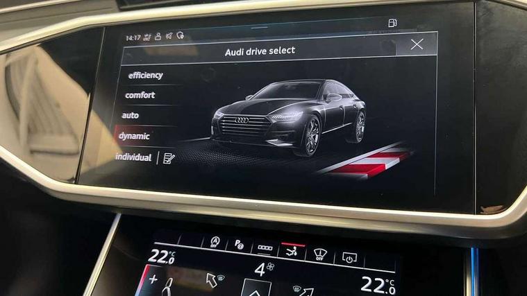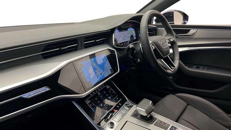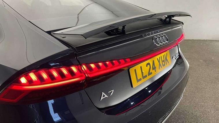 Audi connect safety and service (e-call), Audi connect with Amazon Alexa Integration, Audi drive select, Audi parking system plus - acoustic and visual park assist system for front and rear, Audi virtual cockpit, Automatic start/stop system with coasting functionality, Bluetooth interface, Camera based traffic sign recognition, Colour driver's information system display, Lane departure warning system, MMI nav plus with MMI touch + 10.1" and 8.6" HD haptic touch screen/3D city models/country information/online map/route info and personal route assist, Operating buttons in black, glass look with haptic feedback, Progressive steering, Rear view camera, Service indicator, Smartphone interface includes wireless Apple carplay/Android Auto, Voice control system, Quattro on demand, Sports suspension, Audi music interface, Audi sound system with 6 channel amplifier, 180 watt amplifying capacity and 10 loudspeakers including subwoofer, Auxiliary input socket, DAB digital radio module, Black rear diffuser with chrome inlays, Body coloured door mirrors, Electrically adjustable heated and folding + automatically dimming exterior mirrors with memory function, Frameless auto dimming interior rear view mirror, Front and rear electric windows, HD Matrix LED headlights, Heat insulating darkened glass in side and rear windows, High gloss black air inlets, High gloss black radiator grille with chrome single frame surround, LED 3rd brake light, LED rear lights with dynamic indicators, Privacy glass with side and rear windows, Rain and light sensors, Rear side wing doors, Rear wiper, Retractable rear boot spoiler, S Line front and rear bumpers, Signature LED daytime running lights, Towbar preparation, Windscreen with heat-insulating glass, 2 zone deluxe electronic climate control, 3 spoke high multi-function leather steering wheel with shift paddles, 4-way electric lumbar support, 40/20/40 split folding 3 seater rear seat bench with rear centre armrest, Audi phone box light, Black cloth headlining, Electrically adjustable front seats - driver seat with memory, Front and rear headrests, Front centre armrest, Heated front seats, Height/reach adjust steering wheel, Illuminated door sill trims with S logo, Illuminated sun visors with vanity mirrors, ISOFIX child seat mounting and top tether in front and outer rear seats with front passenger airbag deactivation, Leather gear knob, Leatherette upper instrument panel and door shoulders, Luggage compartment lid, electrically opening and closing, S line front and rear floor mats with contrast stitching, Single front passenger seat, Stainless steel pedals and foot rest, LED interior ambient lighting pack - A7, Non smoking pack - A7, S line exterior style pack - A7, 3 point seatbelts on all seats, Audi pre-sense front, Driver and passenger airbags, Electromechanical parking brake, Electronic stabilisation control including ABS, ASR and EDL, Extended pedestrian protection measures, Hill hold assist, Manual child lock in rear doors, Seatbelt monitoring, Tyre pressure warning light, Warning triangle and first aid kit, Anti theft alarm with tow away protection, Anti-theft wheel bolts and wheel loosening detection, Immobiliser, Keyless Go, Preparation for tracking system, Remote central locking, Dark matt brushed aluminium inlay, Tool kit,