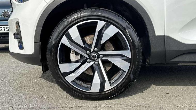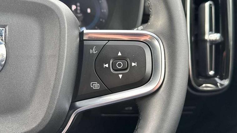 12.3" Progressive Driver Display, 9" centre console portrait touch screen, Adjustable steering wheel force, Apple carplay (wired), Bluetooth handsfree system, Cruise control, Driver alert control, E-call, Front park assist, Google automotive services - Enabled entertainment apps, navigation with google maps, voice recognition with google assistant, Hands free power tailgate, Intelligent speed assistance, Lane keeping aid, Oncoming Lane Mitigation, Rear park assist, Rear park assist camera, Speed sensitive steering, Volvo cars services with app - Driving journal, emergency and breakdown call, engine remote start, remote door locking/unlocking and vehicle dashboard, Wireless/Inductive Mobile Phone Charging, Automatic transmission with start/stop and manual change functions, Dynamic chassis, DAB Digital radio, Steering wheel mounted remote controls, Adaptive brake lights with high level LED brake lights, Auto dimming interior mirror, Automatic headlamp levelling, Automatic LED Headlights + Active high beam incorporating daytime running lights, Front aluminium tread plates, Front and rear electric windows, High gloss black front and rear skid plate, High gloss black front bumper deco, High gloss black mesh front grille with high gloss black surround, High gloss black window trim, Home safe and approach lighting, Integrated roof rails in high gloss black, LED front fog lights, Puddle lights, Rain sensor with automatic windscreen wiper activation, Rear side wing doors, Rear wiper, Roof antenna, Roof spoiler, Visible VIN plate, 12V socket in front tunnel console and luggage compartment, 2-Zone electronic climate control with CleanZone air quality system and pollen filter, 3 seat bench in 2nd row, 3 Spoke tailored steering wheel with chrome trim, 60/40 versatile split folding rear seat, Centre console cupholders and storage, Flexible load floor and grocery bag holder, Floor mats, Front cabin courtesy lights, Front door pocket, front cupholder, ambient front door, rear reading, rear courtesy, instrument panel and tailgate lighting, Front footwell illumination, Front headrests, Front reading lights, Front seat cushion extensions, Front side step illumination (under door), Glovebox bag hook, Heated front seats, Height adjustable passenger seat, Height/reach adjustable steering column, High gloss centre tunnel deco, Illuminated glovebox, Illuminated luggage compartment, Illuminated vanity mirrors + ticket holder, Integrated waste bin, Isofix attachments on outer rear seats, Load cover, Load protection net, Multi directional lumbar support for driver and passenger seat, Power driver seat with memory + exterior mirrors memory, Rear armrest with cupholders, Rear headrests, Single front passenger seat, Underfloor cargo storage, Climate pack without heated front seats - XC40, 3x3 point rear seatbelts, City safety with steering support with Pedestrian + cyclist + front collision warning with full auto brake and rear auto brake, Driver and passenger airbags, Drivers knee airbag, Electronic parking brake with auto hold, First aid kit, Front and outer rear seatbelt reminder and pretensioners, Front seats SIPS airbags, Hill descent control, Hill start assist, Inflatable curtain, Passenger airbag cut-off device, Power child locks on rear doors, Road sign information display, Run off Road Protection, SIPS (Side Impact Protection System), Slippery road and hazard light alert, Stability and Traction Control with Spin control, Engine Drag Control and Corner Traction Control, Tyre pressure monitoring system, Vehicle deceleration control with Anti-lock Brake System, Electronic Brake Distribution and Emergency Brake Assist, Warning triangle, WHIPS whiplash protection system - front, 2 x Key integrated remote control central locking including with deadlocking system and auto open/close windows, Anti-theft alarm including immobiliser/volume sensor + level sensor, Keyless drive includes keyless entry and keyless start, Locking wheel nuts,