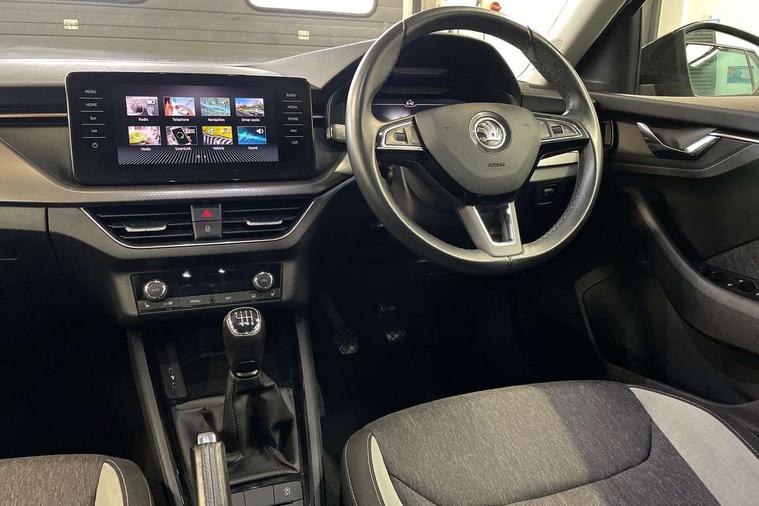 Amundsen satellite navigation with 9.2" glass colour touchscreen with virtual cockpit, Bluetooth system, Easy light assist, Front assist system, Lane assist, Multifunction colour trip computer, PAS, Rain and light assist with auto dimming rear view mirror, Speed limiter, Wireless SmartLink for Apple Car Play, 2 USB - C ports, 8 loudspeakers, DAB Digital radio, Body colour door mirrors and handles, Chrome grille surround, Electric folding door mirrors, Electrically adjustable and heated door mirrors, Front and rear electric windows, Front fog lights with cornering function, Privacy glass, Tinted windows, 12V Accessory socket in centre console, Chrome inner door handles, Chrome on gear and handbrake lever, Chrome strip on the dash and door panel, Dual zone climate control, Front head restraints, Glasses storage in roof liner, Height adjustable passenger seat, Instrument cluster with chrome painted decor ring, ISOFIX for rear passenger seat, Manual lumbar support for front seats, Net in centre console, Reading lights for driver and front passenger, Sun visor with make up mirror for front passenger, Textile floor mats, Third rear headrest, Umbrella, 3x3 point rear seatbelts, Curtain airbags, Emergency call and proactive services, Front head and side airbags, Hill hold control, Passenger airbag switch off function, Seat belt reminder for all seats, Two tone horn, Alarm, Anti-theft wheel bolts, Keyless entry with start/stop button, SAFE function for remote central locking, Temporary space saver wheel,
