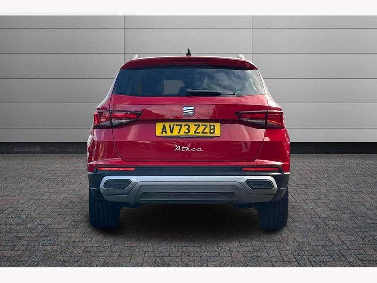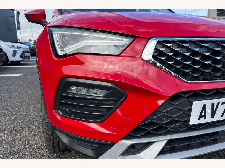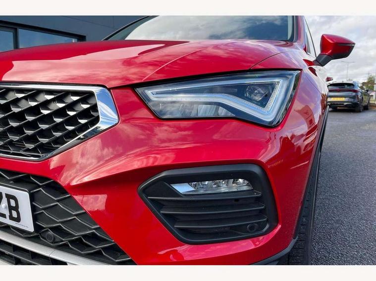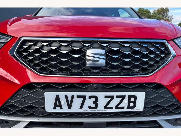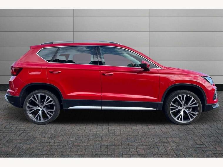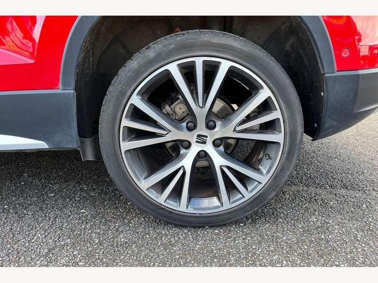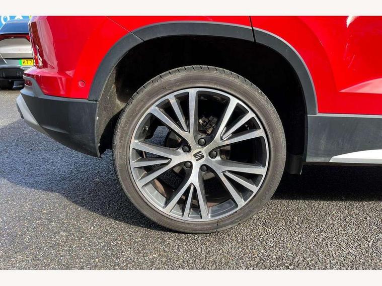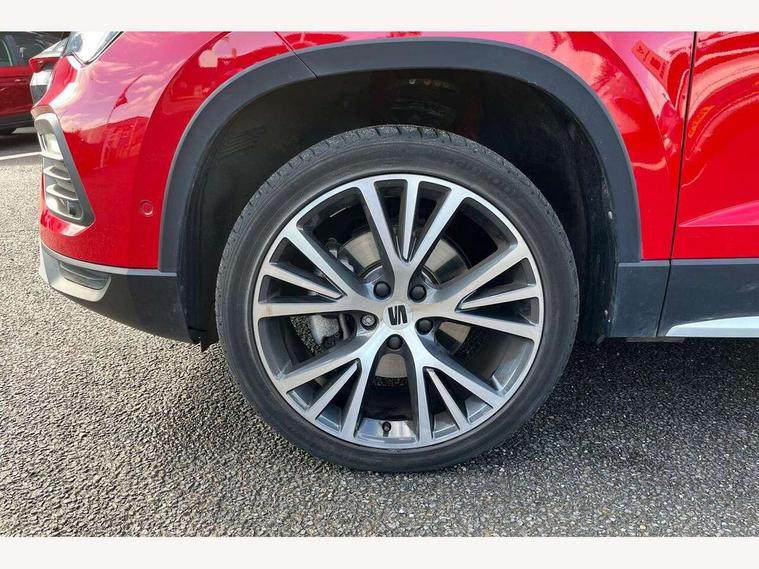 10" Digital cockpit, E-call, Electric tailgate with virtual pedal, Outside temperature gauge, Progressive power assisted steering, SEAT drive profile with driving experience button - Normal, Sport, Eco and Individual mode, steering and throttle response, Self parking functionality (includes front and rear parking sensors), Side and exit assist, Start/stop system, Tailgate, Top view camera, Trip computer, Wireless full link smartphone integration, Wireless phone charger, Steering wheel mounted audio/phone controls, Black simulated exhaust pipes, Black wheel arch surrounds, Body colour bumpers, Chrome front grille frame, Chrome roof rails, Chrome side window trim, Dark tinted rear windows, Daytime running lights, Door mirrors with welcome light silhouette, Dynamic headlight range control with self adjusting whilst driving, Electric adjustable/heated/folding door mirrors, Front and rear electric windows, Front grille hot stamping, Full LED headlamps with lens and LED front fog lamps with cornering function, Illuminated aluminium front door sill, LED rear tail lights with dynamic indicators, Rear fog lights, Rear side wing doors, Rear wash/wipe, Reflex silver side mouldings, Variable front intermittent wipers, 12v socket in front, 3 seat bench in 2nd row, 60/40 split folding rear seat, Drawer under right front seat, Dual zone climate control, Front and rear head restraints, Front centre armrest, Front seat back storage pockets, Heated front seats, Heated steering wheel, Height adjustable driver and passenger seat with lumbar adjustment, ISOFIX points in outer rear seats with top tether anchorage points, Leather steering wheel and gear knob, Leather upholstery with front comfort seats, Rear armrest and easy back seat release mechanism from boot, Single front passenger seat, Convenience pack - Ateca, Interior lighting pack - Ateca, Navigation system pack with DAB - Ateca, Safe and driving pack with lane assist - Ateca, 3x3 point rear seatbelts, ABS, Traction control system (TCS), Electronic stability control (ESC) and Electronic differential lock system (XDS), Airbags - Driver and front passenger airbag with deactivation, front side, two curtain and driver's knee airbags, Electric parking brake with auto hold function, Front and rear seatbelt reminder, Hill hold control, Manual rear child locks, Pre crash system, Single tone horn, Tiredness recognition system, Traction control, Tyre pressure monitoring system, Alarm, Keyless entry, Locking wheel bolts, Remote central locking, Chrome interior detailing, 19" Exclusive machined alloy wheels 36/4 in nuclear grey,