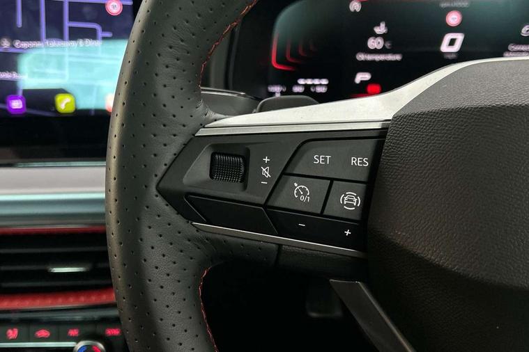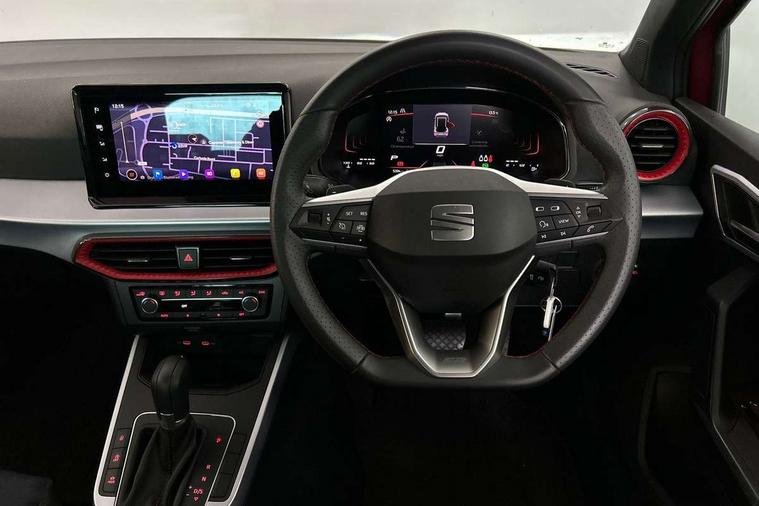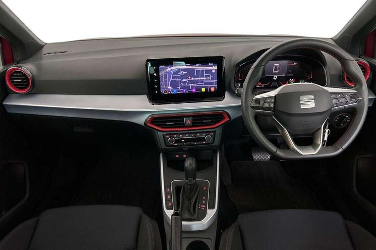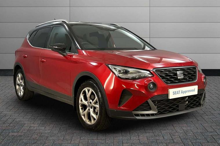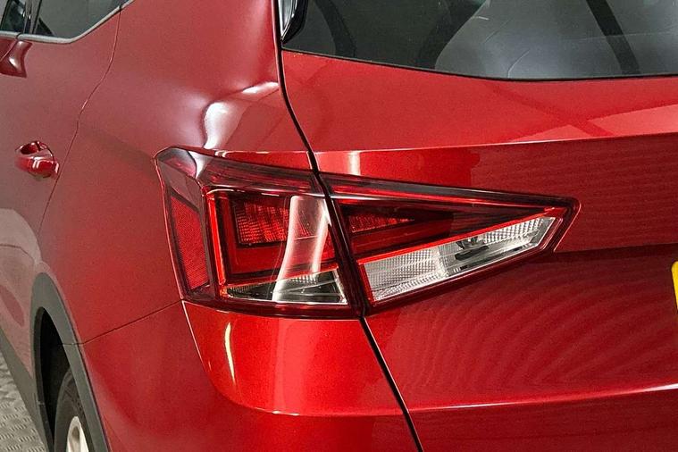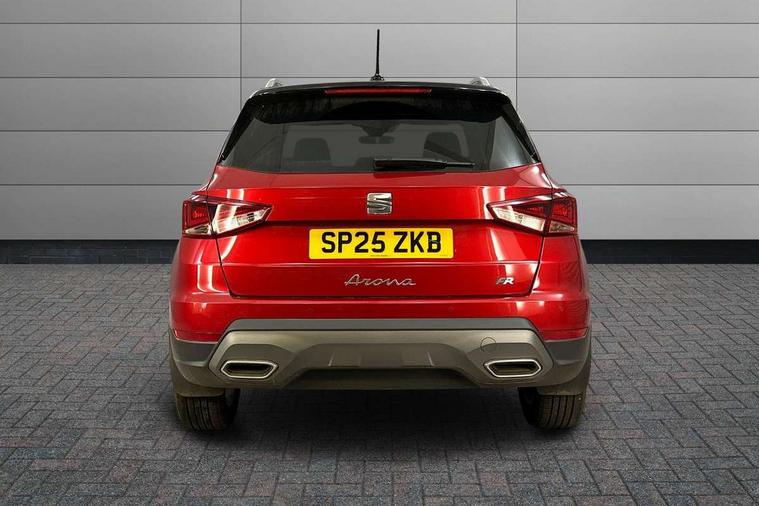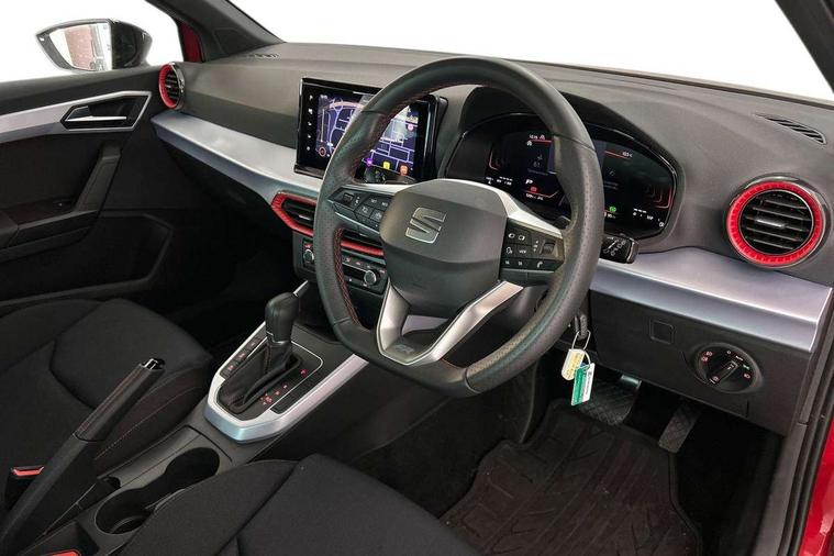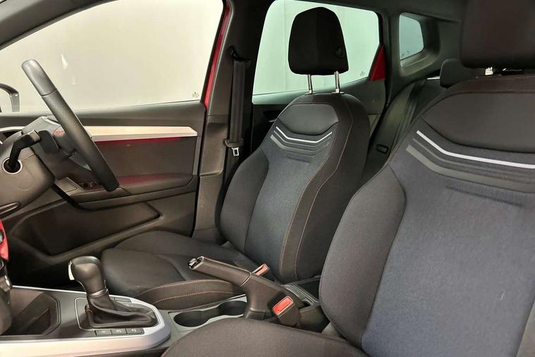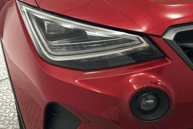 'Lights On' Reminder warning buzzer, 8" Digital cockpit, Digital clock, E-call, Electric speed sensitive power steering, Full link smartphone integration with mirror link, wireless apple carplay, Google android auto + USB Type C cable for apple and android devices, Lane keeping system, Low fuel warning light, Outside temperature display, RPM counter, SEAT Drive profile - Four different models normal-sport-eco-individual, steering response, throttle response and gear shifts mode, Trip computer, Wireless phone charger, 6 speakers, 9.2" colour touchscreen with navigation system, voice control and USB port (type c), Bluetooth interface for hands free and audio streaming, DAB digital radio and AM/FM radio, Steering wheel mounted audio controls, Anti theft roof antenna, Auto dimming interior rear view mirror, Automatic activation of hazard warning lights, Body coloured bumpers, Body coloured door handle inserts, Chrome roof rails and window surrounds, Dark tinted rear windows, Electric front/rear windows, Electrically adjustable, heated and folding door mirrors, Front fog lights with cornering function and rear fog light, FULL LED automatic headlights with dynamic headlight range control, coming and leaving home, LED daytime running lights, LED rear tail lights and licence plate lights, Protective side mouldings, Rain sensing wipers, Rear side wing doors, Rear spoiler, Rear window wash/wipe, Roof colour door mirrors, Third brake light, Twin exhaust pipe styling hidden exhaust pipe, Visible VIN plate, 2 cupholders, 3 seat bench in 2nd row, 60/40 split folding rear seat, Aircare filter, Black interior roof, Cloth upholstery, Double boot floor, Driver sunvisor with covered mirror + card holder, Dual zone climate control, Front courtesy light with front reading lights, Gear shift indicator, Height adjustable front seats, Height/reach adjustable steering column, Illuminated air vent surrounds, Illuminated boot, Instrument lighting with brightness control, Interior ambient lighting, Interior light in footwell, central console and door panel, ISOFIX points in outer rear seats with top tether anchorage points, Passenger sunvisor with vanity mirror, Perforated flat bottomed leather steering wheel/gear knob/handbrake with red stitching and FR logo, Potentiometer, Single front passenger seat, Steering wheel mounted gearshift paddles, Two front and three rear height adjustable headrests, Interior chrome pack - Arona, Safe and driving pack (S) - Arona, 3 point seatbelts on all rear seats, ABS, Active front headrests, Child locks on rear doors, Driver and front passenger airbags with front passenger airbag de activation, front side and curtain airbags, Emergency Brake Assist (EBA) and front assist, Front and rear seatbelt reminder, Hill hold control, Multi-Collision braking, Tiredness recognition system, Traction control, Tyre pressure monitoring system, Alarm with back up horn with tow away protection, Deadlock, Electronic engine immobiliser, Locking wheel bolts, Remote central locking, Titan black dashboard, 17" Dynamic alloy wheels,