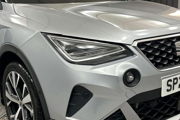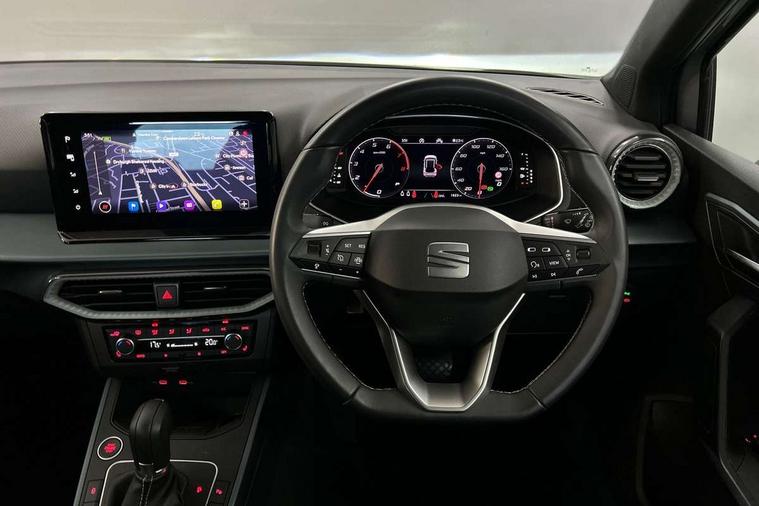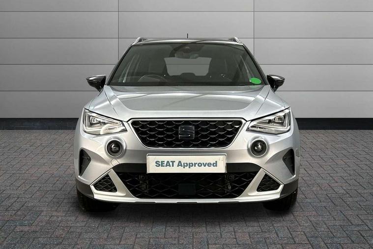 'Lights On' Reminder warning buzzer, 10" Digital cockpit, Digital clock, E-call, Electric speed sensitive power steering, Front parking sensor, Full link smartphone integration with mirror link, wireless apple carplay, Google android auto + USB Type C cable for apple and android devices, Lane keeping system, Low fuel warning light, Outside temperature display, Park assist system, Rear view camera, RPM counter, Trip computer, Wireless phone charger, 6 speakers, 9.2" colour touchscreen with navigation system, voice control and USB port (type c), Bluetooth interface for hands free and audio streaming, DAB digital radio and AM/FM radio, Steering wheel mounted audio controls, Anti theft roof antenna, Auto dimming interior rear view mirror, Automatic activation of hazard warning lights, Body coloured bumpers, Body coloured door handle inserts, Chrome roof rails and window surrounds, Electric front/rear windows, Electrically adjustable, heated and folding door mirrors, Front fog lights with cornering function and rear fog light, FULL LED automatic headlights with dynamic headlight range control, coming and leaving home, LED daytime running lights, Hidden exhaust pipe, LED rear tail lights and licence plate lights, Protective side mouldings, Rain sensing wipers, Rear side wing doors, Rear spoiler, Rear window wash/wipe, Roof colour door mirrors, Third brake light, Visible VIN plate, 2 cupholders, 3 seat bench in 2nd row, 60/40 split folding rear seat, Aircare filter, Black interior roof, Double boot floor, Driver sunvisor with covered mirror + card holder, Dual zone climate control, Front comfort seats, Front courtesy light with front reading lights, Front seat back storage pockets, Gear shift indicator, Heated front seats, Height adjustable front seats, Height/reach adjustable steering column, Illuminated air vent surrounds, Illuminated boot, Instrument lighting with brightness control, Interior ambient lighting, Interior light in footwell, central console and door panel, ISOFIX points in outer rear seats with top tether anchorage points, Leather steering wheel/gear knob/handbrake, Microsuede cloth upholstery, Passenger sunvisor with vanity mirror, Potentiometer, Single front passenger seat, Storage net on centre console, Two front and three rear height adjustable headrests, Interior chrome pack - Arona, Safe and driving pack (S) - Arona, Safety and driving pack (M) - Arona, Storage pack - Arona, 3 point seatbelts on all rear seats, ABS, Active front headrests, Child locks on rear doors, Driver and front passenger airbags with front passenger airbag de activation, front side and curtain airbags, Emergency Brake Assist (EBA) and front assist, Front and rear seatbelt reminder, Hill hold control, Multi-Collision braking, Tiredness recognition system, Traction control, Tyre pressure monitoring system, Alarm with back up horn with tow away protection, Deadlock, Electronic engine immobiliser, KESSY Keyless entry and go, Locking wheel bolts, Remote central locking, Titan black dashboard, 18" Performance Nuclear grey alloy wheels,