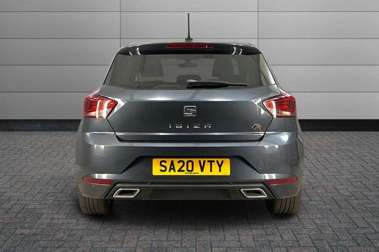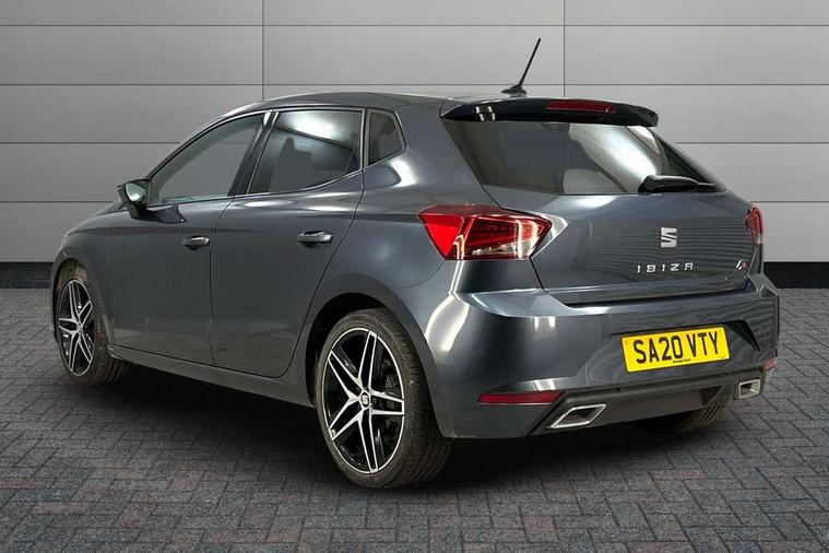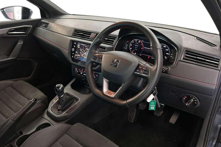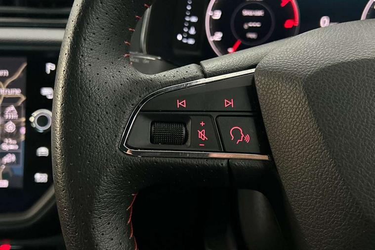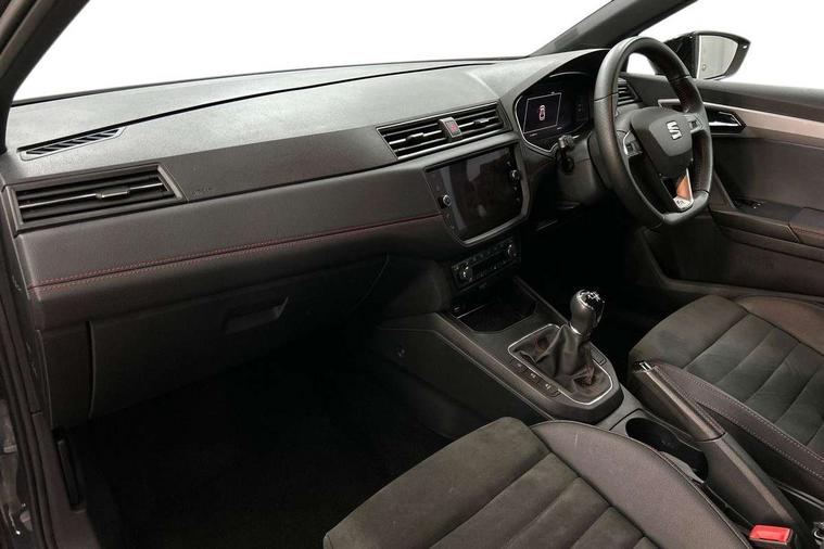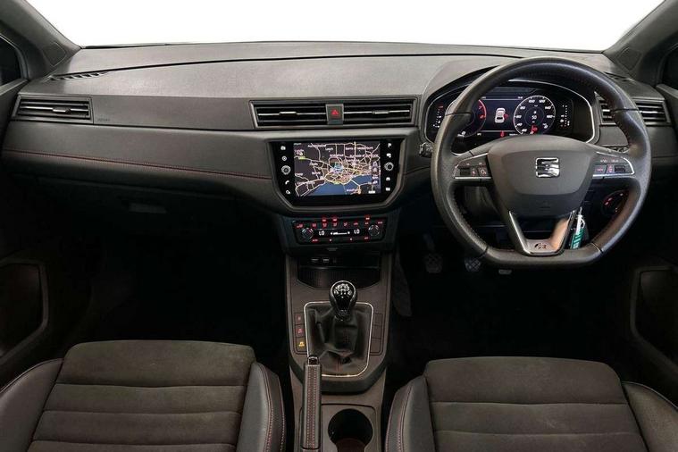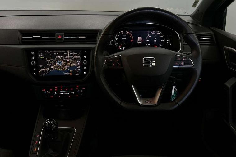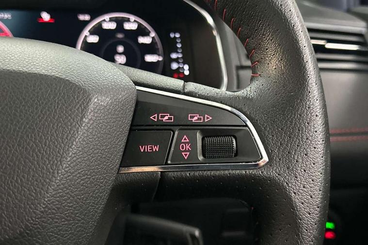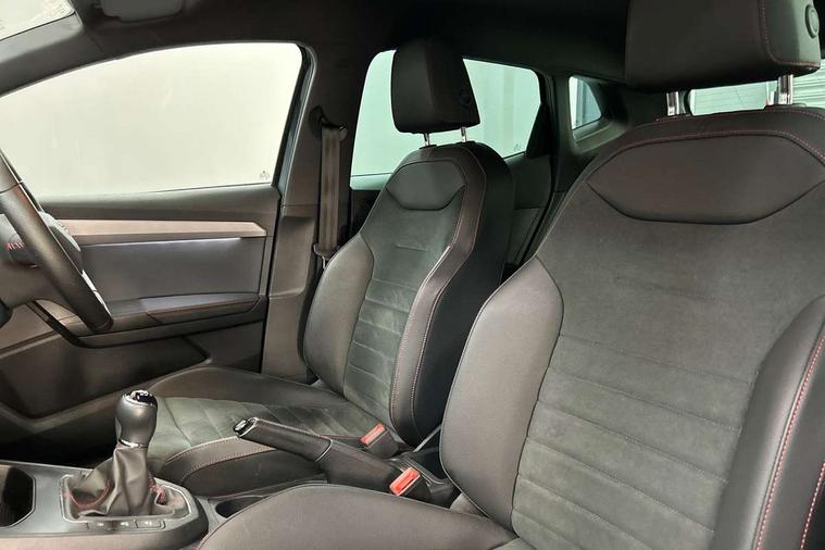 'Lights On' Reminder warning buzzer, Bluetooth Handsfree Phone Connection, Cruise control, Digital clock, Digital cockpit, Full Link Smartphone Integration with Mirror Link, Apple Car Play, Google Android Auto, Low fuel warning light, Outside temperature gauge, Power Steering, Satellite navigation system with 3D mapping, 8" touch screen, voice control and additional USB port, SEAT Drive profile, SEAT logo boot release, Trip computer, Sports suspension, 6 speakers, Auxiliary input socket, CD player, Digital Audio Broadcast (DAB) Tuner, Radio/MP3 player, SD card slot, SEAT USB media cable, Steering wheel mounted controls, USB port, Anti theft roof antenna, Auto dimming rear view mirror, Automatic headlights, Automatic rain sensing wipers, Body colour bumpers, Body colour door handles, Brilliant black door mirrors, Chrome front grille frame, Chrome grille, Coming/leaving home lighting function, Cornering front fog lights, Dark tinted rear windows, Electric folding door mirrors, Electric front windows, Electric headlight adjustment, Electrically adjustable and heated door mirrors, Exclusive FR rear bumper, Full LED headlights, LED daytime running lights, LED tail lights, Rear fog lights, Twin exhaust pipes, 3 rear headrests, 60/40 split folding rear seat, Door and steering wheel ice metal decorative inserts, Driver's sunvisor with ticket holder/vanity mirror, Dual zone climate control, Dust/pollen filter, Flat bottomed perforated leather steering wheel with red stitching and FR logo, Front courtesy lights, Front cupholders x 2, Front reading lights, Gear shift indicator, Glovebox, Height adjustable driver's seat, Height adjustable front/rear head restraints, Height adjustable passenger seat, Height/reach adjust steering wheel, Illuminated boot, Instrument lighting with brightness control, Leather handbrake, Microsuede cloth upholstery, Multi-colour ambient interior lighting, Passenger sunvisor, Rear top tether child seat ISOFIX attachment, Sports seats, Full LED headlight pack - Ibiza, 3 point seatbelts on all 3 rear seats, ABS, Active front headrests, Child locks on rear doors, Curtain airbags, Driver/Front Passenger airbags, ESP+EBA, Front assist (AEB), Front passenger airbag deactivation, Front side airbags, Hill hold control, Multi-Collision braking, Seatbelt warning, Tiredness recognition system, Tyre pressure monitoring system, Electronic engine immobiliser, Locking wheel bolts, Remote central locking + deadlocks, Volumetric alarm with back up horn, Leather dashboard, 18" Performance machined bi-colour alloy wheels,