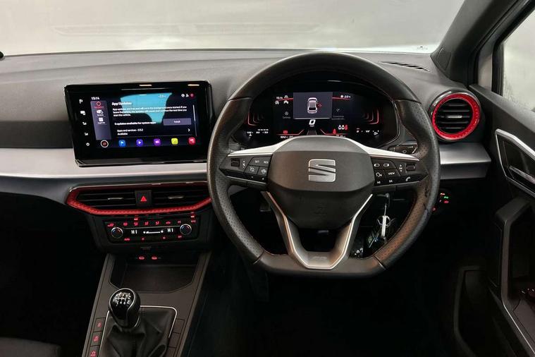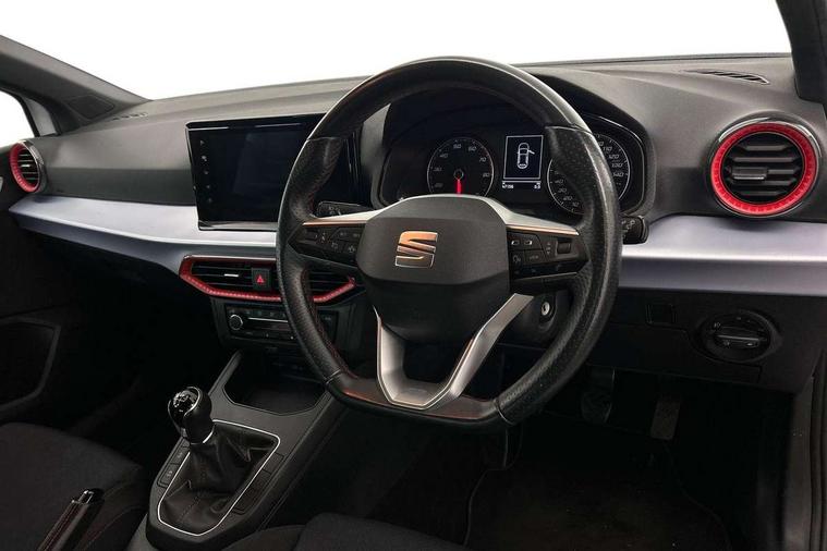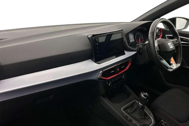 'Lights On' Reminder warning buzzer, 8" Digital cockpit, 9.2" touchscreen navigation system with type C USB socket, Voice control and DAB/AM/FM radio, Auto start and stop system, Bluetooth audio streaming with handsfree system, Digital clock, E-call, Full link smartphone integration with mirror link, wireless apple carplay, Google android auto + USB Type C cable for apple and android devices, Lane assist, Low fuel warning light, Outside temperature gauge, Power Steering, Rear parking sensor, Seat connect plus with safety, service, remote and online, SEAT drive profiles and ECO function, SEAT logo boot release, Speed limiter, Traffic sign recognition, Trip computer, Sports suspension, 6 speakers, Auxiliary input socket, Radio/MP3 player, SD card slot, Steering wheel mounted controls, Anti theft roof antenna, Auto dimming rear view mirror, Automatic rain sensing wipers, Black door mirror caps, Body colour bumpers, Body colour door handles, Brilliant black window surrounds, Dark tinted rear windows, Electric adjustable/heated/folding door mirrors, Electric front windows, Electric headlight adjustment, Electric rear windows, Front/rear fog lights, FULL LED automatic headlights with dynamic headlight range control, coming and leaving home, LED daytime running lights, LED 3rd brake light, LED tail lights, Rear roof spoiler with FR twin exhausts, Rear side wing doors, Rear wiper, 3 seat bench in 2nd row, 60/40 split folding rear seat, Ambient interior lighting, Chrome detailing and black headlining, Cloth upholstery, Dual zone climate control with combination filter, Front courtesy lights, Front cupholders x 2, Front reading lights, Gear shift indicator, Glovebox, Height adjustable front and rear headrests (five), Height adjustable front seats, Height/reach adjust steering wheel, Illuminated air vent surrounds, Illuminated boot, Instrument lighting with brightness control, Isofix, Leather multifunction flat bottomed sports steering wheel, Passenger sunvisor, Single front passenger seat, Sports seats, Sunvisors with mirror and driver side card holder, Safety and driving pack (S) - Ibiza, 3 point seatbelts on all 3 rear seats, ABS, Active front headrests, Child locks on rear doors, Electronic stability control, Energy recovery system, Front driver and passenger side airbags with curtain airbag and front passenger airbag deactivation, Hill hold control, Multi-Collision braking, Seat belt reminder for front and rear seats, Tiredness recognition system, Tyre pressure monitoring system, Locking wheel bolts, Perimeter alarm and interior monitoring with backup horn and tow away protection, Remote central locking + deadlocks, 17" Alloy wheels in Brilliant silver,