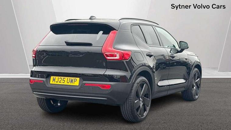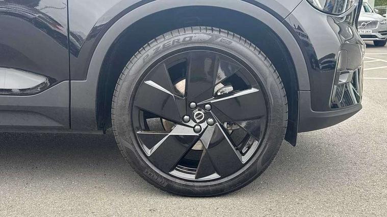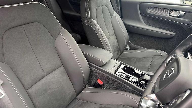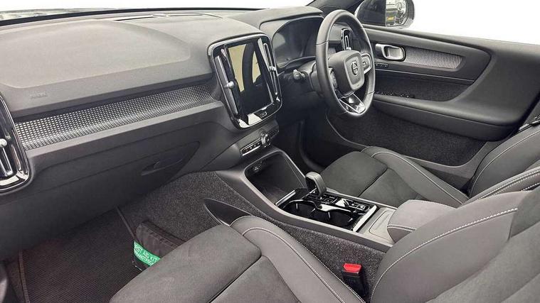 12.3" Progressive Driver Display, 9" centre console portrait touch screen, Adjustable steering wheel force, Android auto (Wired), Apple carplay (wired), Bluetooth handsfree system, Driver alert control, Driver assistance (pilot assist and adaptive cruise control), Driver awareness - Blind spot information system with steer assist, cross traffic alert with autobrake and rear collision warning and mitigation, E-call, Front park assist, Google automotive services - Enabled entertainment apps, navigation with google maps, voice recognition with google assistant, Hands free power tailgate, Intelligent speed assistance, Lane keeping aid, Oncoming Lane Mitigation, Rear park assist, Speed sensitive steering, Volvo cars services with app - Driving journal, emergency and breakdown call, engine remote start, remote door locking/unlocking and vehicle dashboard, Wireless/Inductive Mobile Phone Charging, Automatic transmission with start/stop and manual change functions, Dynamic chassis, DAB Digital radio, Steering wheel mounted remote controls, Adaptive brake lights with high level LED brake lights, Auto dimming feature for exterior door mirrors, Auto dimming interior mirror, Automatic headlamp levelling, Automatic LED Headlights + Active high beam incorporating daytime running lights, Colour coordinated auto folding and heated power door mirrors, Dark tinted windows - rear side windows and rear screen, Front aluminium tread plates, Front and rear electric windows, High gloss black front and rear skid plate, High gloss black front bumper deco, High gloss black front grille strikethrough and ironmark, High gloss black rear model, engine and volvo logo badges, High gloss black window trim, Home safe and approach lighting, Integrated roof rails in high gloss black, LED front fog lights, Puddle lights, Rain sensor with automatic windscreen wiper activation, Rear side wing doors, Rear wiper, Roof antenna, Roof spoiler, Visible VIN plate, 12V socket in front tunnel console and luggage compartment, 2-Zone electronic climate control with CleanZone air quality system and pollen filter, 3 seat bench in 2nd row, 3 Spoke tailored steering wheel with chrome trim, 60/40 versatile split folding rear seat, Centre console cupholders and storage, Charcoal headlining, Connect textile/microtech upholstery, Flexible load floor and grocery bag holder, Floor mats, Front cabin courtesy lights, Front door pocket, front cupholder, ambient front door, rear reading, rear courtesy, instrument panel and tailgate lighting, Front footwell illumination, Front headrests, Front reading lights, Front seat cushion extensions, Front side step illumination (under door), Glovebox bag hook, Heated front seats, Height adjustable passenger seat, Height/reach adjustable steering column, High gloss centre tunnel deco, Illuminated glovebox, Illuminated luggage compartment, Illuminated vanity mirrors + ticket holder, Integrated waste bin, Isofix attachments on outer rear seats, Load cover, Load protection net, Multi directional lumbar support for driver and passenger seat, Power driver seat with memory + exterior mirrors memory, Rear armrest with cupholders, Rear headrests, Single front passenger seat, Underfloor cargo storage, Climate pack without heated front seats - XC40, 3x3 point rear seatbelts, City safety with steering support with Pedestrian + cyclist + front collision warning with full auto brake and rear auto brake, Driver and passenger airbags, Drivers knee airbag, Electronic parking brake with auto hold, First aid kit, Front and outer rear seatbelt reminder and pretensioners, Front seats SIPS airbags, Hill descent control, Hill start assist, Inflatable curtain, Passenger airbag cut-off device, Power child locks on rear doors, Road sign information display, Run off Road Protection, SIPS (Side Impact Protection System), Slippery road and hazard light alert, Stability and Traction Control with Spin control, Engine Drag Control and Corner Traction Control, Tyre pressure monitoring system, Vehicle deceleration control with Anti-lock Brake System, Electronic Brake Distribution and Emergency Brake Assist, Warning triangle, WHIPS whiplash protection system - front, 2 x Key integrated remote control central locking including with deadlocking system and auto open/close windows, Anti-theft alarm including immobiliser/volume sensor + level sensor, Keyless drive includes keyless entry and keyless start, Locking wheel nuts, 20" 5 spoke high gloss black alloy wheels,