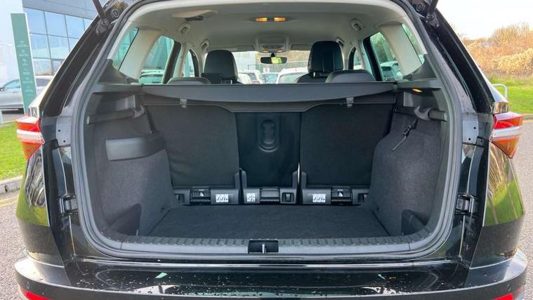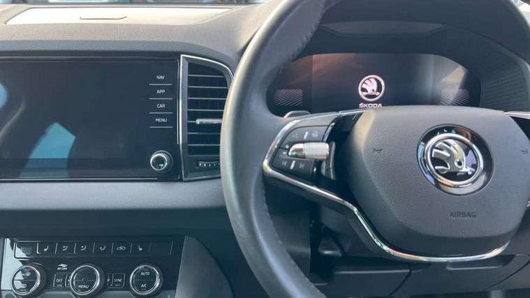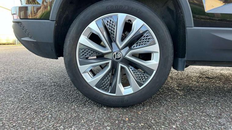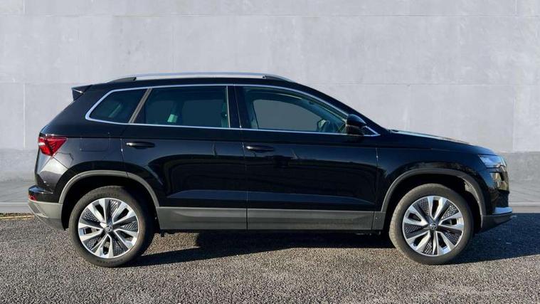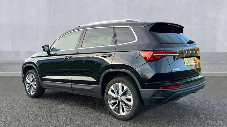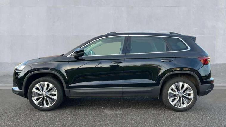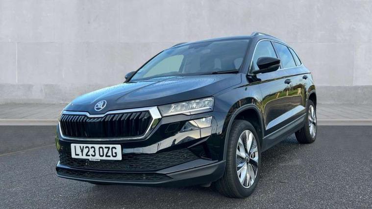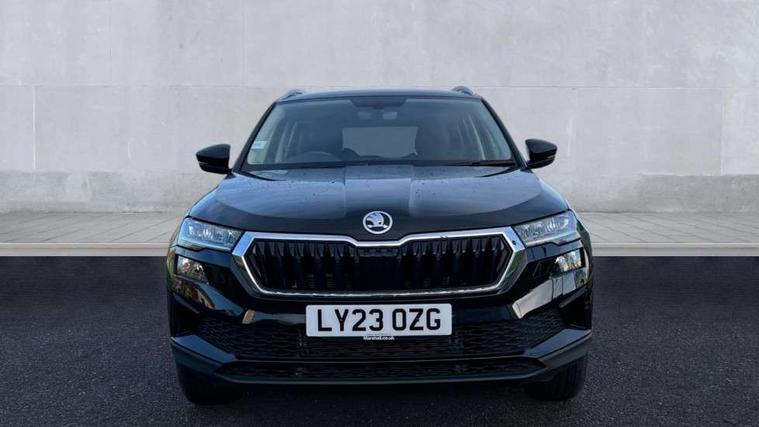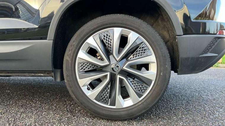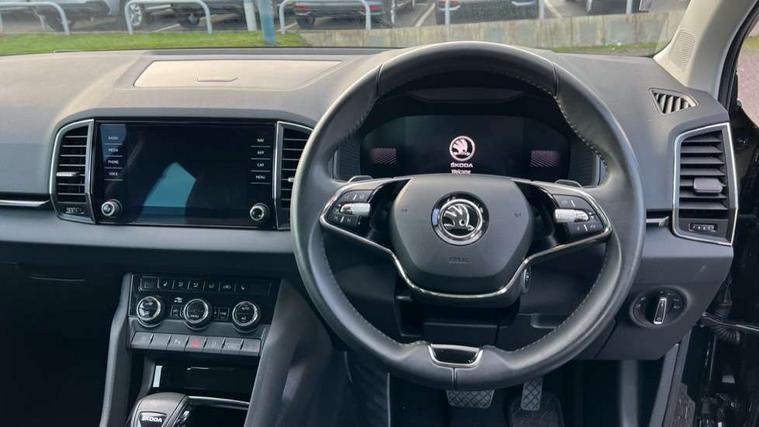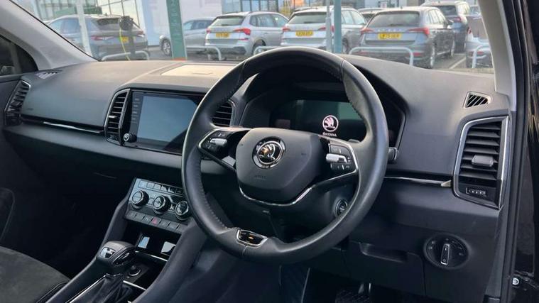8" Digital display, Care connect, Driver fatigue sensor, Emergency services call system, Outside temperature gauge, Service interval indicator, SmartLink wireless for Apple and wired for Android, Start/stop system with regenerative braking, USB C Port x 2 in front centre console, 8 Speakers, DAB radio with Bluetooth, USB connection, Acoustic glass, Aero front windscreen wipers with intermittent function, Auto dimming rear view mirror with light and rain sensors, Black electric window control buttons, Body colour door mirrors and handles, Dynamic headlight range control with cornering light function, Electric front and rear windows with child proof lock, Heated rear windscreen, LED daytime running lights, LED rear lights with high functionality welcome effect and dynamic indicators, Light assistant (coming/leaving home/tunnel light), Plastic scuff plates, Privacy glass, Rear side wing doors, Rear spoiler, Rear window wiper with washer system and intermittent control, Safety reflectors on front doors, 1.5 litre bottle holders in driver and front passenger door panels, 12V socket in boot, 12v socket in front centre armrest with storage compartment and rear air vents, 2 spoke leather heated multifunction steering wheel with DSG paddles, 2 x Tablet holder, 3 rear height adjustable headrests, 3 seat bench in 2nd row, 4 foldable roof handles with rear coat hooks, Black floor carpet, Chrome inner door handles, Decorative door sills with KAROQ badging, Double sided boot floor, Foldable hooks in the boot, Front head restraints, Height adjustable front three point seats belts with tensioners, Height/reach adjust steering wheel, Ice scraper, Illuminated glovebox, Illuminated luggage compartment, Isofix child seat preparation for front passenger seat, Isofix child seat preparation outer rear, Manual lumbar support for front seats, Pen holder, Pollen filter, Rear boot cover, Rear reading lights, Rubbish bin door, Safety vest holder, Single front passenger seat, Storage box in upper central dashboard closed, Sunvisors with illuminated vanity mirrors, Textile floor mats, Ticket holder, VarioFlex seats with standard rear seat release, Boot pack - Karoq, Chrome roof rails + chrome pack - Karoq, Parking pack - Karoq, Automatic door unlocking in case of crash, Automatic fuel cut off in case of crash, Child locks on rear doors, Driver airbag, Electronic parking brake with auto hold function, Emergency rear braking signal, ESC including ABS, MSR, ASR, EDS, HBA, DSR, RBS, MKB and traction control, Front side airbags, Hill hold control, Knee airbags, Passenger airbag with switch-off function, Pedestrian monitor, Seatbelt reminder signalisation and pretensioner for all seats, Three point seatbelts rear, Two tone horn, Tyre pressure display, Tyre pressure monitor, Alarm with interior monitoring, back up horn and tilt sensor with safe function, Electronic engine immobiliser, Keyless entry and start/stop, Remote central locking with 2 remote folding keys, Chrome framed air vents, 18" Procyon silver alloy wheels with anthracite aero inserts, Anti-theft wheel bolts protection, Storage on wheel cover, Tool kit,