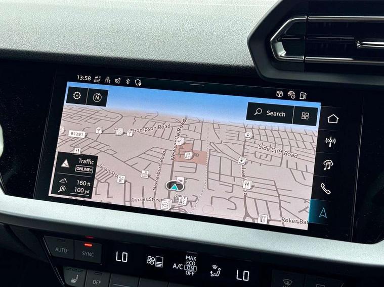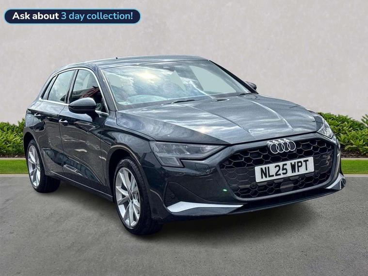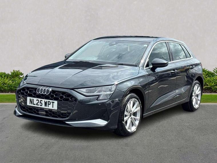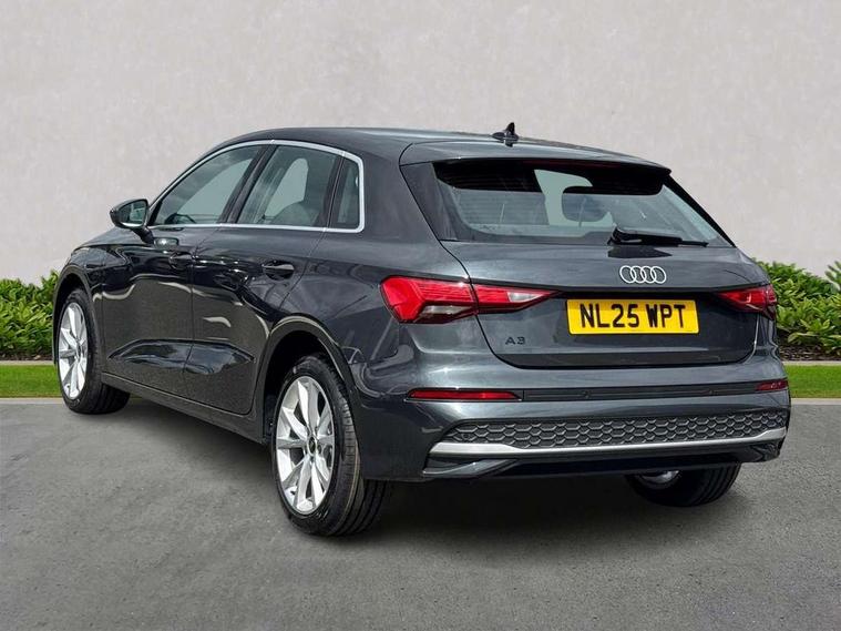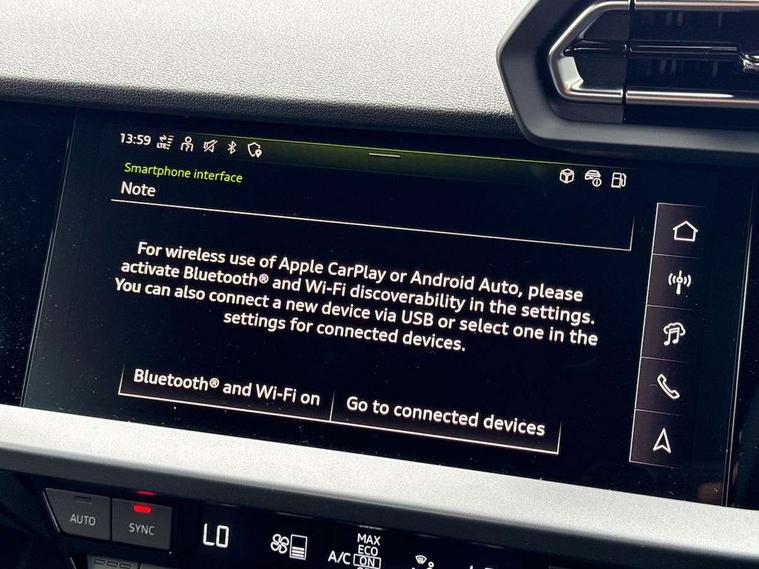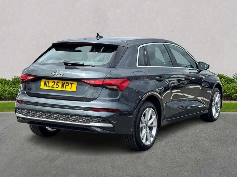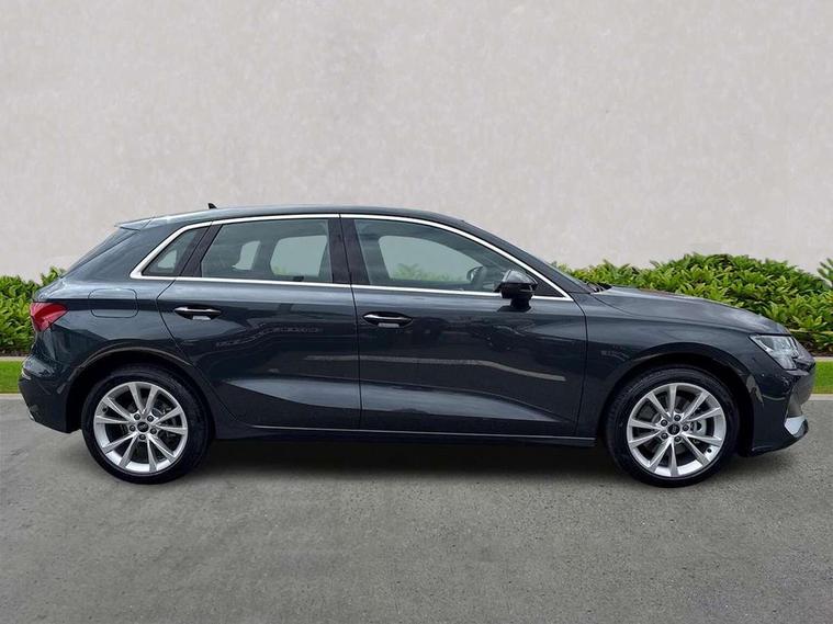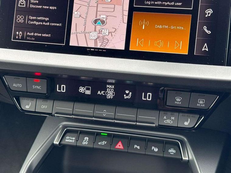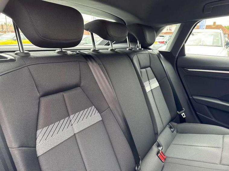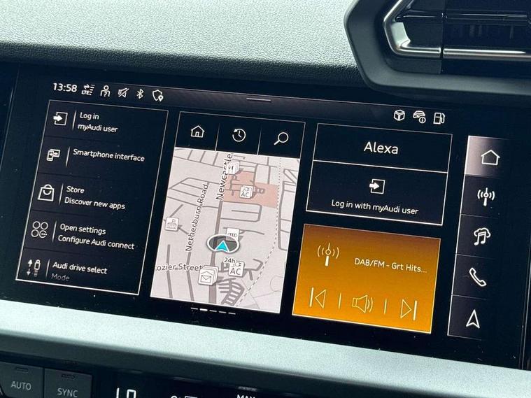 Adjustable speed limiter, Audi drive select, Audi smartphone interface with app store includes wireless Apple carplay, Android auto and Amazon alexa integration, Audi virtual cockpit plus - 12.3" full HD resolution dynamic digital instrument cluster, Automatic start/stop system with recuperation, Bluetooth interface, Camera based traffic sign recognition, Collision avoidance assistant, Cruise control, Distraction and Fatigue warning, e-Call (emergency call), Electromechanical power speed sensitive steering, Emergency assist, Lane departure warning system, MMI Navigation Plus with high resolution 10.1" colour touch screen display, Park Assist with parking system Plus, Service indicator, Trip computer, Voice control system with natural language interaction, 3 pin 10 amp domestic charging cable, CCS socket for DC charging, Charging cable for public charging, mode 3 (type 2), 32 A, Compact charging system, Industrial connector CEE 32 A, 230 V, length 1.6 m, Standard suspension, Type 2 socket for AC charging, Audi Phonebox light with wireless charging, Audi sound system - 10 loudspeakers including centre loudspeaker and subwoofer, DAB Digital radio, USB ports with charging function in the rear, 3rd brake light, Acoustic glass windscreen, Aluminium window trim, Auto dimming frameless rear view mirror, Body colour exterior mirrors, Body colour roof spoiler, Dipped beam, main beam, position light and turning light, Electrically adjustable/heated/folding/auto dimming door mirrors with integrated LED indications + kerb view function for passenger side, Exterior model badging, Front electric windows, Front radiator grill in high gloss dark chrome, Front side air inlets in grained matt black with silver frame, Heat insulating glass windscreen, LED daytime running lights, LED headlights and halogen rear lights, Light and rain sensors, Rear diffuser and grill in grained matt black with silver frame, Rear electric windows, Rear side wing doors, Rear window, rear door windows and rear side windows in clear glass, Rear wiper, 12V socket and storage compartment in front centre console, 3 seat bench in 2nd row, 3 spoke leather multifunction steering wheel with gear shift paddles, 3-zone deluxe automatic air conditioning, 4 way electrically adjustable lumbar support for driver and front passenger, 60/40 split folding rear seat bench, Black front and rear floor mats, Convenience auxiliary air conditioning, Front and rear headrests, Front centre armrest, Front door sill trims with aluminium inlay, Heated front seats, Height and reach adjustable steering wheel, Manual boot compartment lid, Manually adjustable front seats, Routine cloth upholstery with front sports seats, Seat side bolsters, Single front passenger seat, Steel grey cloth headlining, Aluminium interior elements pack - A3, LED interior lighting pack -A3, 3x3 point rear seat belts, Acoustic vehicle alerting system, Driver and front passenger airbag with passenger airbag deactivation, Electronic Stabilisation Control (ESC) including ABS, ASR and EDL, First aid kit with warning triangle and 2 safety vests, Front side airbags with head airbags and interaction airbag, Hill hold assist, Pre-sense front with pedestrian and cyclist detection, Seatbelt monitoring, Tyre pressure loss indicator, Anti theft alarm, Anti-theft wheel bolts, Electronically operated child locks, Immobiliser, Remote central locking with safelock, Black dashboard, Inlays in volcano grey fine paint finish, Tyre repair kit,