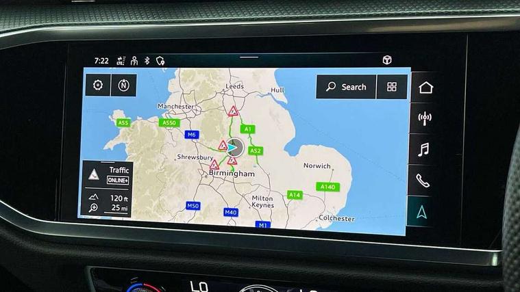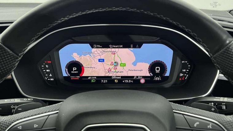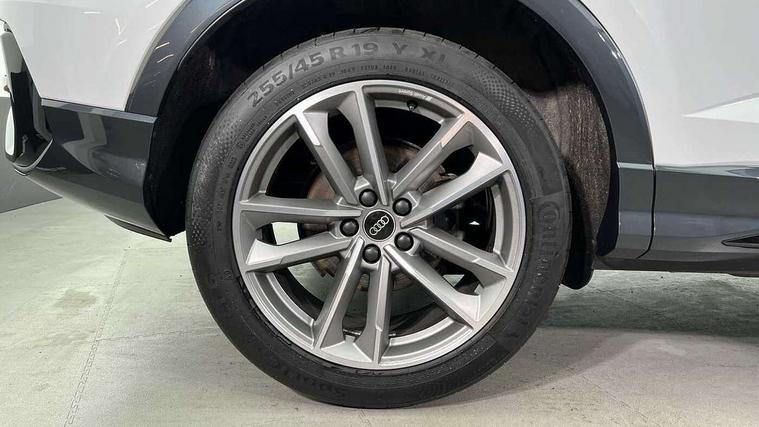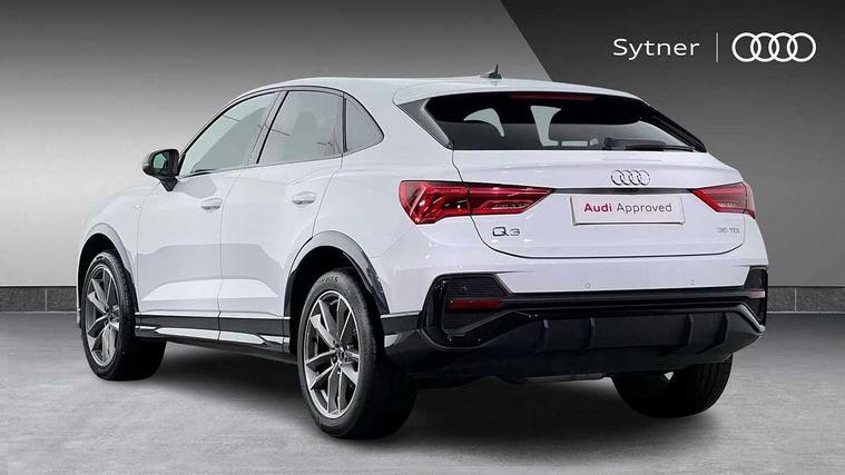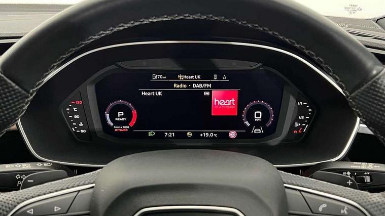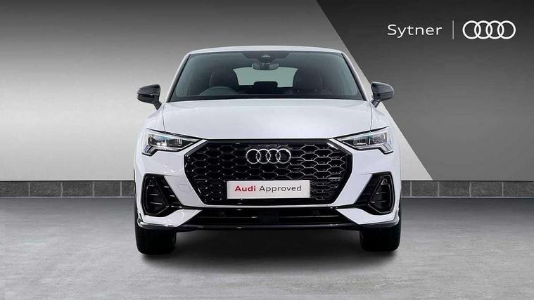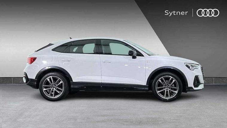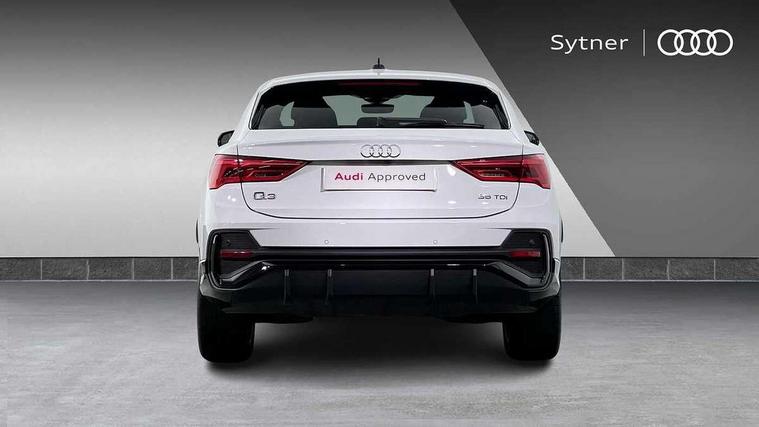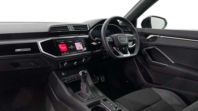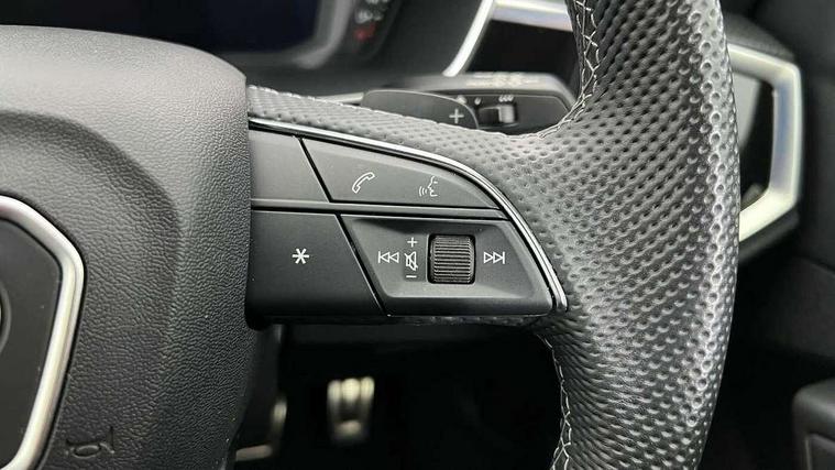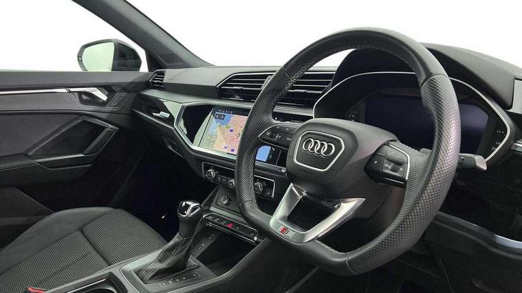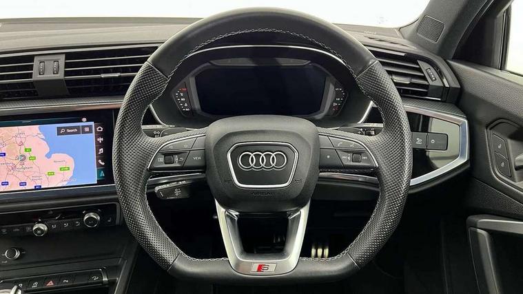 Audi drive select, Audi lane departure warning, Audi Virtual Cockpit - 10.25" display, Bluetooth interface, Camera based traffic sign recognition, Legal emergency call, MMI Navigation Plus with high resolution 10.1 inch touchscreen colour display, Power operated tailgate, Progressive steering, Service interval indicator, Smartphone interface includes wireless Apple carplay/Android Auto, Start stop system with recuperation, Voice control system with natural language interaction, Diesel particulate filter, Sports suspension, 2 USB-C ports with charge and data functions, 6 passive loudspeakers, DAB digital radio module, Acoustic windscreen, Auto dimming frameless rear view mirror, Diffuser grille in grained matt black, Diffuser trim in selenite silver, Electrically folding, adjustable and heated door mirrors with integrated LED side indicators and kerb view function for passenger side, Front and rear electric windows, Front fog lights, Front underbody protection in manhattan grey paint finish, High gloss black finish B and C pillars, LED Dynamic rear indicators, LED headlights with LED daytime running lights, LED rear lights, LED third brake light, Privacy glass dark tinted rear and rear-side windows (from B-pillar backwards), Rain and light sensors, Rear side wing doors, Rear underbody protection in matt black, Rear wiper, Variable front intermittent wipers, 12V socket in rear centre console, 3 seat bench in 2nd row, 40:20:40 folding with manual adjustment for 60:40 forwards/backwards position and backrest angle, Adjustable rear seat bench/backrest with centre armrest and cupholder, Black cloth headlining, Dual zone electronic climate control, Front and rear black floor mats with contrast stitching, Front and rear headrests, Front and rear roof module including reading lights, Front centre armrest, Glove compartment lighting, Height and reach adjustable steering wheel, Illuminated door sill trims with S logo, ISOFIX child seat mounting for front passenger with airbag deactivation and outer rear seat including top tether attachment point for outer rear seats, Luggage compartment light right in white, Luggage compartment sill protection in stainless steel, Manual front seats with height adjustment, Perforated leather gearknob, Single front passenger seat, Stainless steel pedals, Ambient lighting pack - Q3, Black styling pack - Q3, Non smoking pack - Q3, 3x3 point rear seatbelts, 6 airbags - Driver, front passenger, curtain and side windows, Audi pre-sense front with pedestrain and cyclist recognition, Electrically operated child locks on rear doors, Electromechanical parking brake, Electronic stabilisation control including ABS, ASR and EDL, Front seatbelt reminder, Hill descent control, Hill hold assist, Pre sense basic, Seatbelt monitoring, Tyre pressure warning, Warning triangle and first aid kit, Anti theft alarm, Anti theft wheel bolts, Immobiliser, Remote central locking, Aluminium look interior elements, Black dashboard, Detail dashboard around MMI touch colour display in glass look, black with surround in aluminium look, Leatherette door armrest, Piano black inlay, 19" 5 twin arm design diamond cut audi sport alloy wheels in matt grey look,
