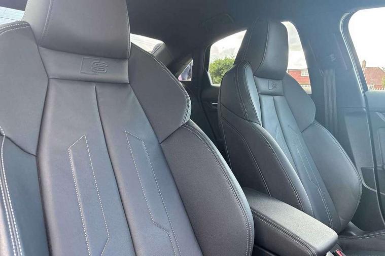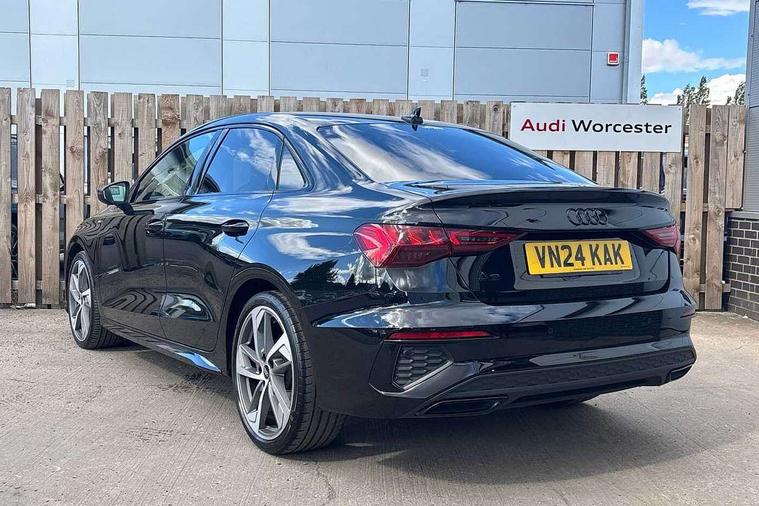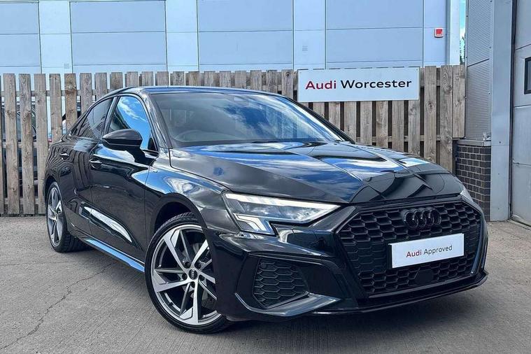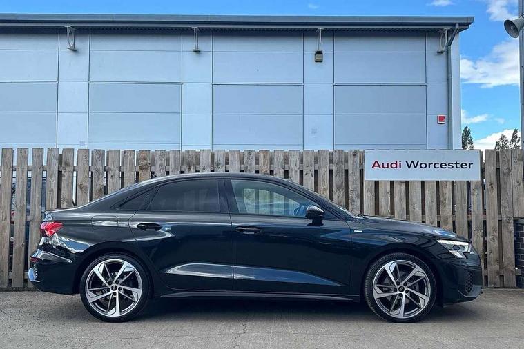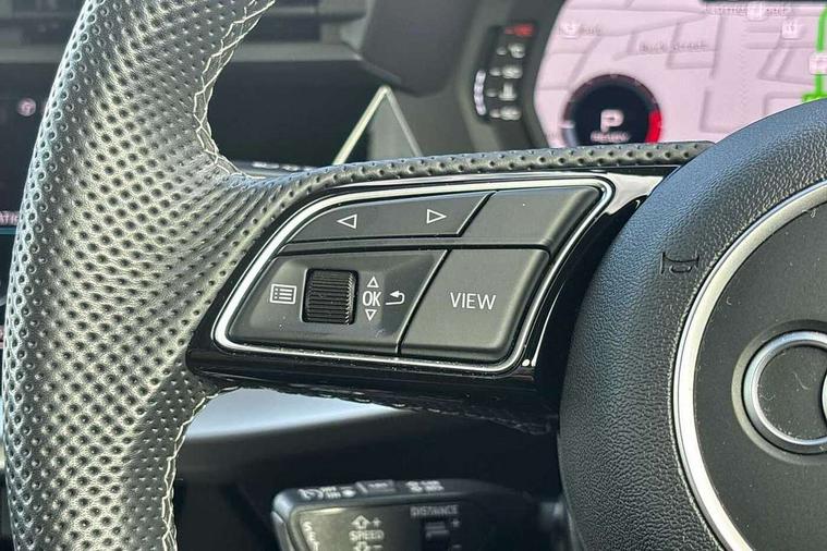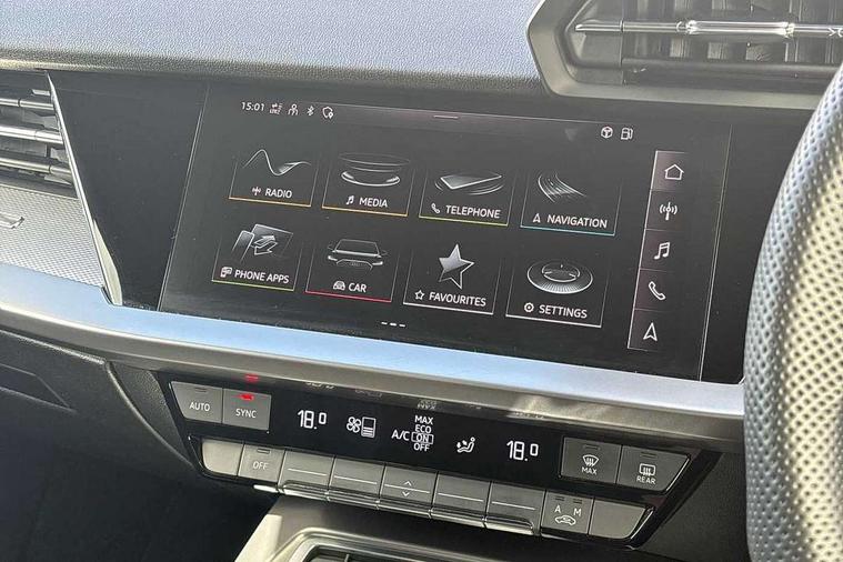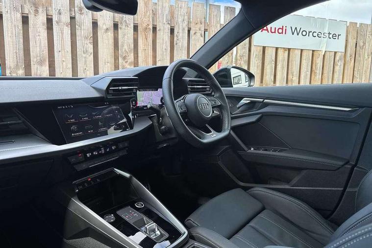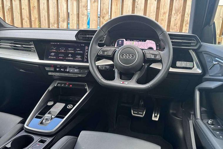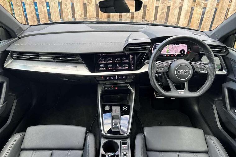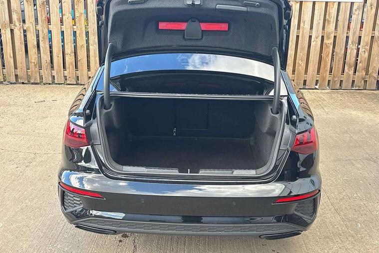 Audi drive select (Auto, Comfort, Dynamic, Efficiency and Individual), Audi smartphone interface, Audi Virtual Cockpit - 10.25" digital and colour instrument cluster, Automatic start/stop system with recuperation, Bluetooth interface, Camera based traffic sign recognition, Collision avoidance assistant, e-Call (emergency call), Electromechanical power speed sensitive steering, Lane departure warning system, MMI Navigation Plus with high resolution 10.1" colour touch screen display, Service indicator, Trip computer, Voice control system with natural language interaction, Sports suspension, 2xUSB-C connection with data and charging functions, 6 passive loudspeakers, CD player, DAB Digital radio, 3rd brake light, Acoustic glass windscreen, Audi beam uses LEDs to project the Audi logo onto the ground as you exit your A3, Auto dimming frameless rear view mirror, Electrically adjustable/heated/folding/auto dimming door mirrors with integrated LED indications + kerb view function for passenger side, Front electric windows, Illuminated door sills with aluminium inserts at the front with S logo, LED daytime running lights, LED headlights with LED rear lights and dynamic rear indicators, Light and rain sensors, Model and engine designation badges at rear, Privacy glass - dark tinted rear window, rear door and side windows, Rear boot, Rear electric windows, Rear side wing doors, S roof spoiler, 12V socket and storage compartment in front centre console, 3 seat bench in 2nd row, 3 spoke flat bottomed leather multifunction sport steering wheel with gear shift paddles, 4 way electrically adjustable lumbar support for driver and front passenger, 60/40 split folding rear seat bench, Black cloth headlining, Dual zone electronic climate control, Front and rear centre armrest in artificial leather, Front and rear headrests, Front/rear floor mats, Height and reach adjustable steering wheel, Interior lighting - glove compartment light and right hand side, Luggage compartment floor covering, Manual boot compartment lid, Single front passenger seat, Stainless steel pedals and front footrest in black, Twin leather upholstery with front sports seats S embossed logo, Aluminium interior elements pack - A3, Black styling pack - A3 Saloon/Black edition, LED interior lighting pack - A3 Saloon, 3x3 point rear seat belts, Driver and front passenger airbag with passenger airbag deactivation, Electronic Stabilisation Control (ESC) including ABS, ASR and EDL, First aid kit with warning triangle and 2 safety vests, Front side airbags with head airbags and interaction airbag, Pre-sense front with pedestrian and cyclist detection, Seatbelt monitoring, Tyre pressure loss indicator, Anti theft alarm, Anti-theft wheel bolts, Electronically operated child locks, Immobiliser, Remote control central locking, Aluminium air vent surrounds, Dark spectrum aluminium inlays, accent surfaces in the dashboard and centre console in platinum grey silk effect paint finish, 19" 5 arm trapezoid design alloy wheels in matt grey with diamond cut finish,