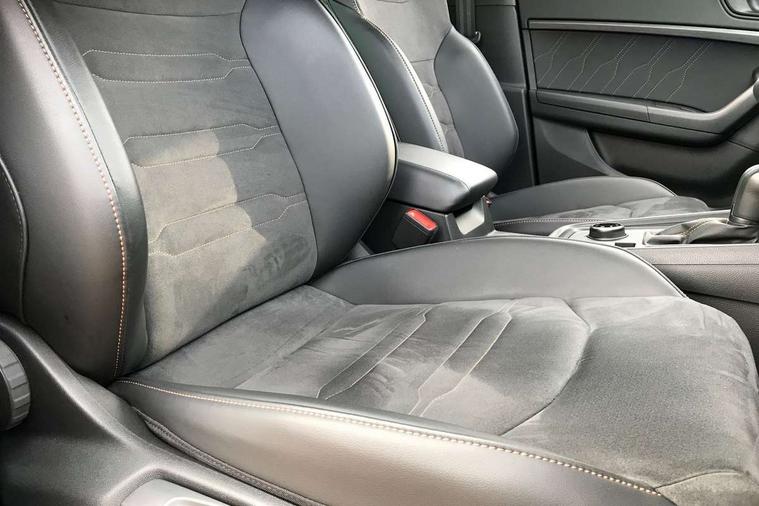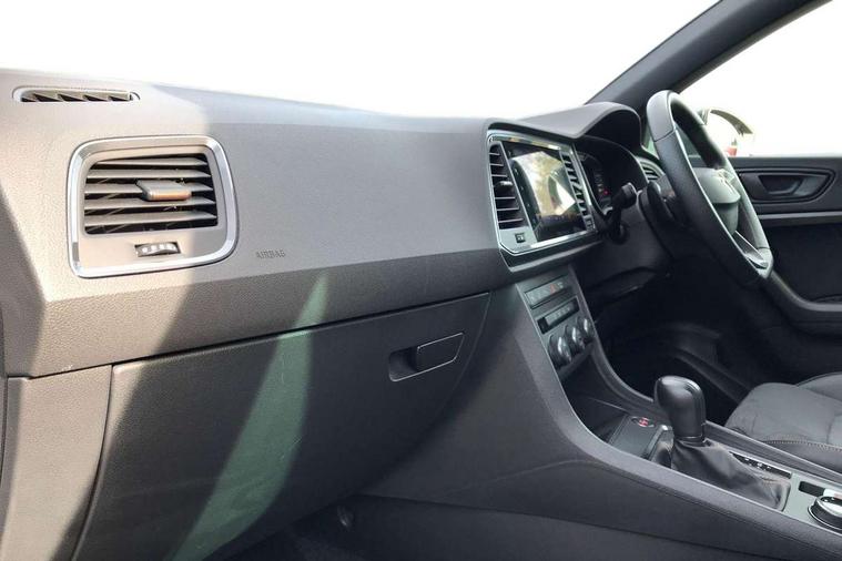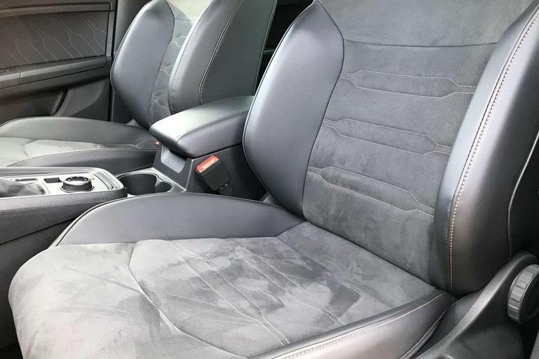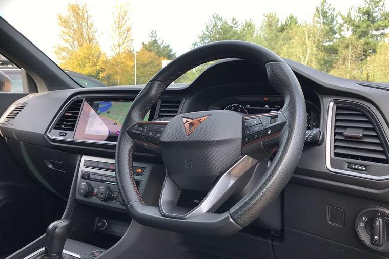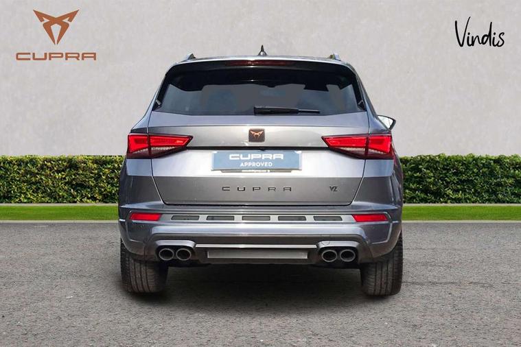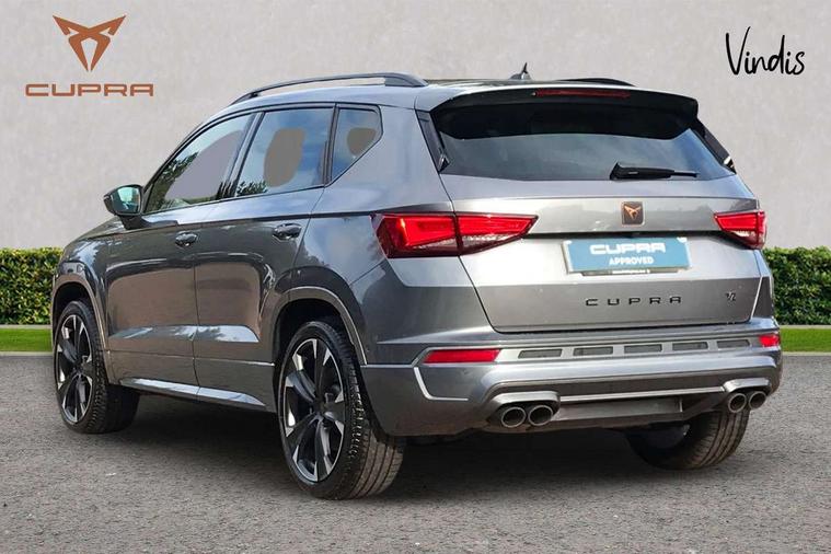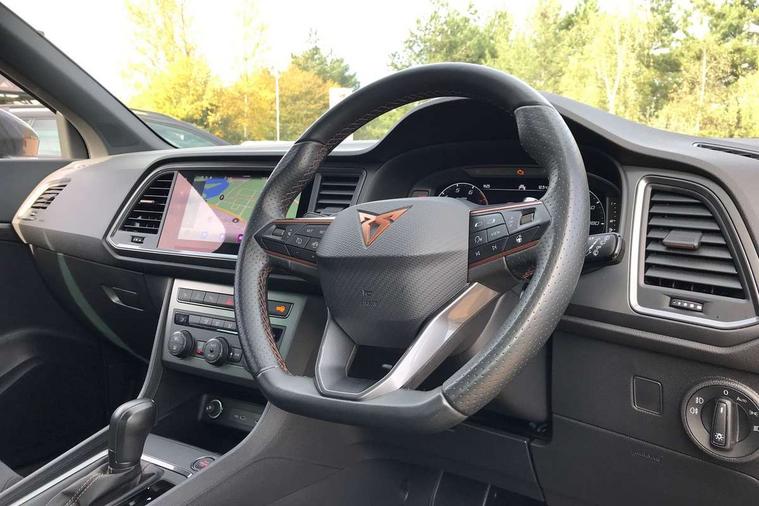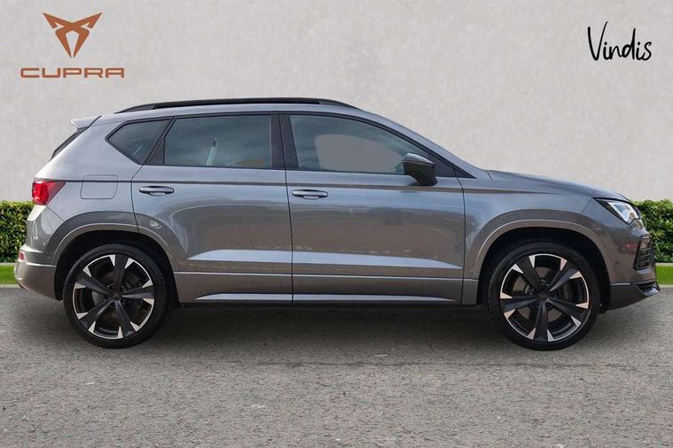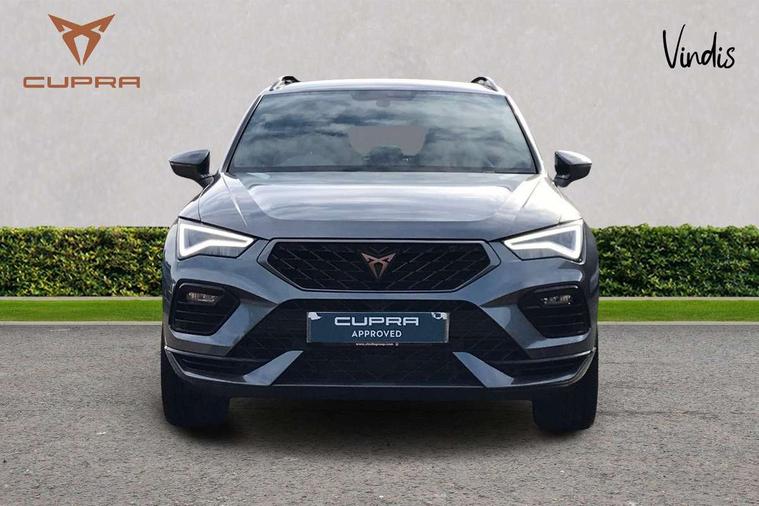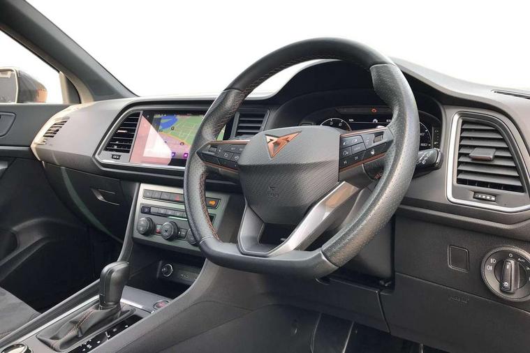Cruise control system with speed limiter, CUPRA drive profile -Normal, Sport, CUPRA and Individual modes, steering/throttle response, gearshift mode, sound actuator and dynamic chassis control, Digital cockpit, E-call, Front and rear view camera, Outside temperature gauge, Progressive power assisted steering, Self parking functionality (includes front and rear parking sensors), Top view camera, Trip computer, Wireless full link smartphone integration, Wireless phone charger, CUPRA sport suspension, Steering wheel mounted audio/phone controls, Body colour bumpers with dark aluminium diffusor, Body coloured wheel arch surrounds, Dark tinted rear windows, Daytime running lights, Door mirrors with welcome CUPRA light silhouette, Dynamic headlight range control with self adjusting whilst driving, Electric adjustable/heated/folding door mirrors, Front and rear electric windows, Front grille frame in chrome, Full LED headlamps with lens and LED front fog lamps with cornering function, Gloss black door mirrors, Gloss black roof rails, Gloss black side mouldings, Gloss black side window trim, Illuminated aluminium front door sill, LED rear tail lights with dynamic indicators, Rear fog lights, Rear side wing doors, Rear spoiler, Rear wash/wipe, Specific CUPRA design front bumper, Third brake light, Visible twin black exhaust pipes in both sides with dark aluminium diffuser, 12v socket in front, 3 seat bench in 2nd row, 60/40 split folding rear seat, Aluminium pedals, Black roof lining, Bucket sport seats in dinamica upholstery, Cupra steering wheel emblem, Document holder under left front seat, Dual zone climate control, Front and rear head restraints, Front centre armrest, Front seat back storage pockets, Heated steering wheel, Height adjustable driver and passenger seat with lumbar adjustment, ISOFIX points in outer rear seats with top tether anchorage points, Leather steering wheel and gear knob, Multicoloured ambient lighting with LED interior illumination, Pedal cluster, Rear armrest and easy back seat release mechanism from boot, Single front passenger seat, Sports steering wheel, Steering wheel mounted gearshift paddles, Storage compartment in roof console for sunglass, Storage compartment under driver's seat, Convenience pack - Ateca, Interior lighting pack - Ateca, Navigation system plus pack with DAB - Ateca, 3x3 point rear seatbelts, ABS, Traction control system (TCS), Electronic stability control (ESC) and Electronic differential lock system (XDS), Airbags - Driver and front passenger airbag with deactivation, front side, two curtain and driver's knee airbags, Black brake callipers with CUPRA logo, Electric parking brake with auto hold function, Front and rear seatbelt reminder, Front assist with autonomous emergency braking, Hill hold control, Manual rear child locks, Single tone horn, Tiredness recognition system, Tyre pressure monitoring system, Alarm, Keyless entry, Locking wheel bolts,