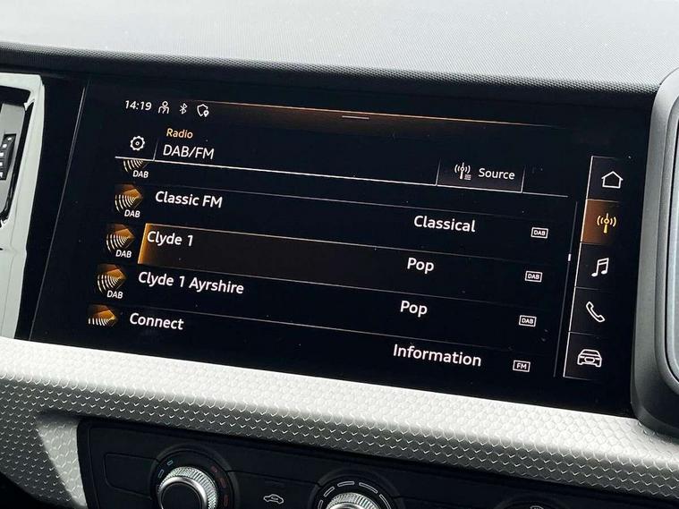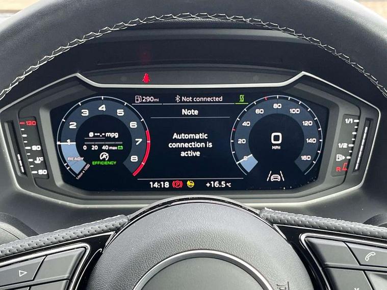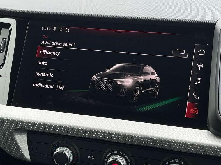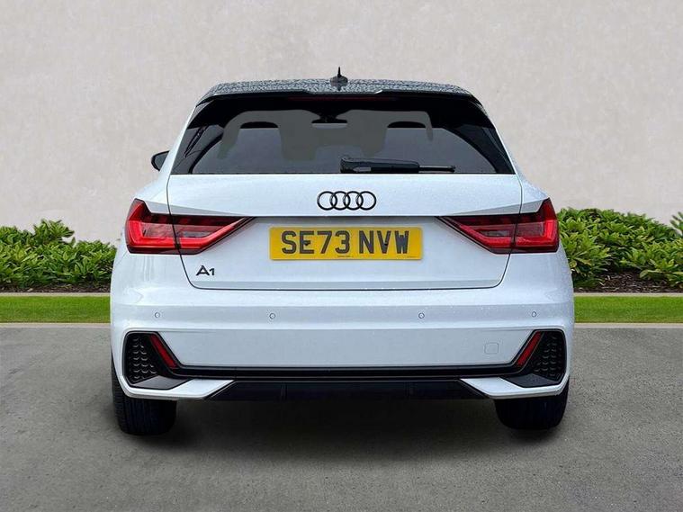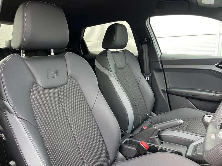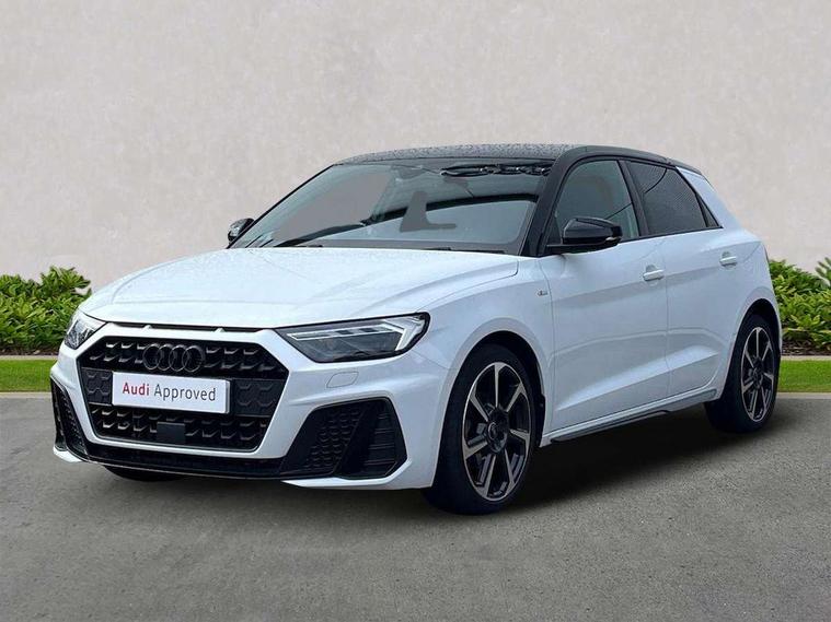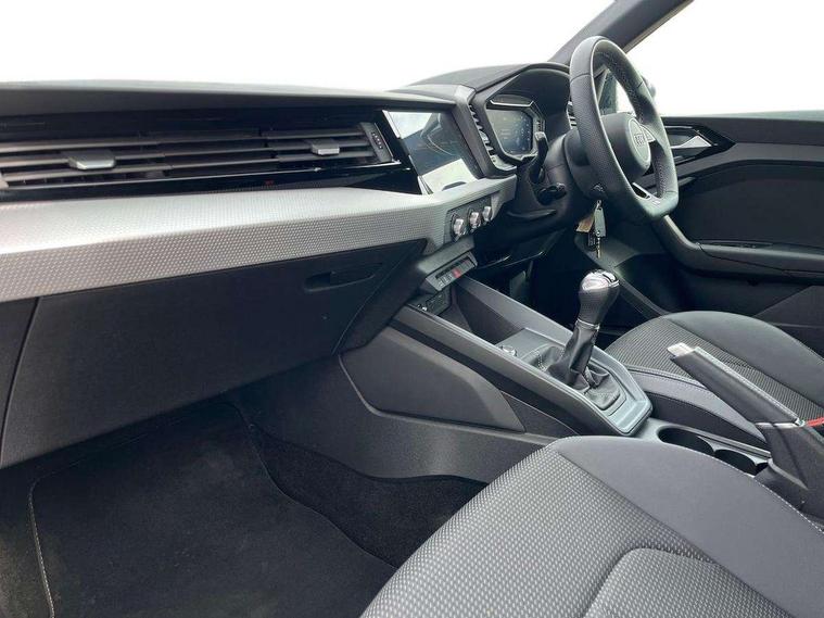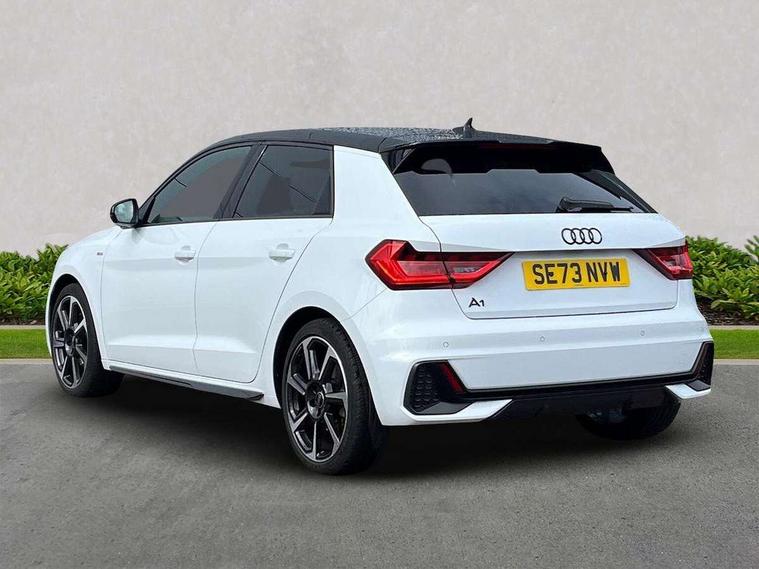 Aluminium trim for control switches, air vents and digital instrument cluster, Silver grey inlays polygon structure in diamond paint finish, Structured grey accent areas including air vents, door handle recesses and centre console in quartz paint finish, Black styling pack - A1 Sportback Black Edition, LED interior lighting pack - A1, Luggage compartment pack - A1, 18" 7 spoke rotor design alloy wheels in gloss anthracite black, diamond cut finish, Anti theft alarm, Anti theft wheel bolts and loose wheel warning, Audi pre-sense front with pedestrain and cyclist recognition, Immobiliser, Remote central locking with 2 foldaway keys, 1 x SDXC card reader, 1 x USB type C and 1 USB type A charging points, DAB Digital radio, MMI radio plus with 8.8" colour MMI display screen and MMI touch, 3x3 point rear seatbelts, Brake assist function, Driver and front passenger airbag with front side and head airbags, Electronic Stability Control including ABS, EBD, ASR and EDL, Front and rear seatbelt reminder, Front passenger airbag deactivation switch, Hill hold assist, Seatbelt height adjustment for front seats, Seatbelt monitoring, Tyre pressure warning light, Warning triangle and first aid kit, Auto dimming rear view mirror, Black door mirrors, Black side skirts, Door sills with aluminium inlays and S Line logo, Electric front and rear windows, Electrically adjustable, heated, folding door mirrors with integrated LED side indicator, Front side air inlets in grained matt black and C frame in titanium black, Heat insulating glass windscreen and side windows, Heated rear windscreen, LED headlights with LED rear lights + dynamic rear indicators + headlight adjustment and high beam, turning light + LED daytime running lights, Radiator protective grille frame in matt aluminium silver, Rain and light sensors, Rear fog lights, Rear wiper, Side front spoiler lips in grained matt black, 12V socket in centre console with two cup holders, 3 rear seats with headrests, 3 spoke flat bottomed multi-function plus leather steering wheel with S badging, grips in preforated leather and contrast stitching, 40:60 Split folding rear seat or folded fully, Black cloth headlining, Driver and passenger seat with manual height adjust with forward and backwards adjustment, Front and rear black floor mats with contrast stitching in fine silver, Front head restraints, Height and reach adjustable steering wheel, ISOFIX child seat mounting for front passenger and outer rear seats including top tether attachment point of outer rear seats, Leather gear knob with aluminium trim, Luggage compartment light with front and rear reading lights, Manually adjustable lumbar support in front seats, Stainless steel pedals, 10.25" Digital instrument cluster display classis style instrument dials + speed, odometer, time, outside temperature, telephone menu + fuel level warning, Audi connect safety emergency and service including E-call, Audi drive select - power steering assistance + engine, Audi smartphone interface with connect compatible smartphone via USB directly MMI display + Nav, music, third party apps controlled via MMI controller, Automatic start/stop system, Bluetooth interface, Cruise control, Driver's information system, Electromechanical power steering, Lane departure warning system, Rear parking sensor, Service interval indicator, Speed limiter, Voice control system, Washer fluid level indicator, Sports suspension,