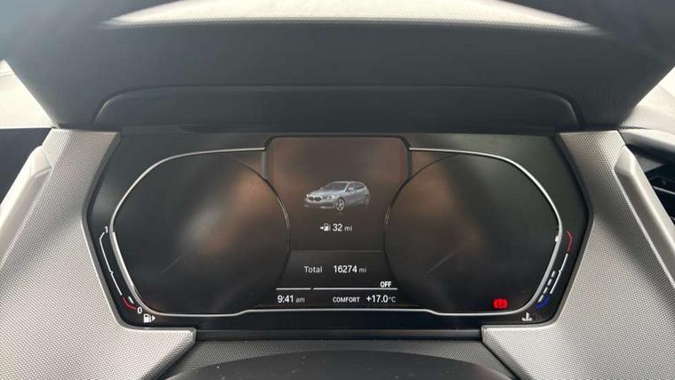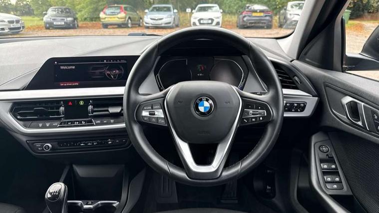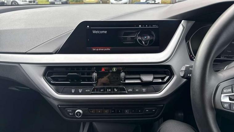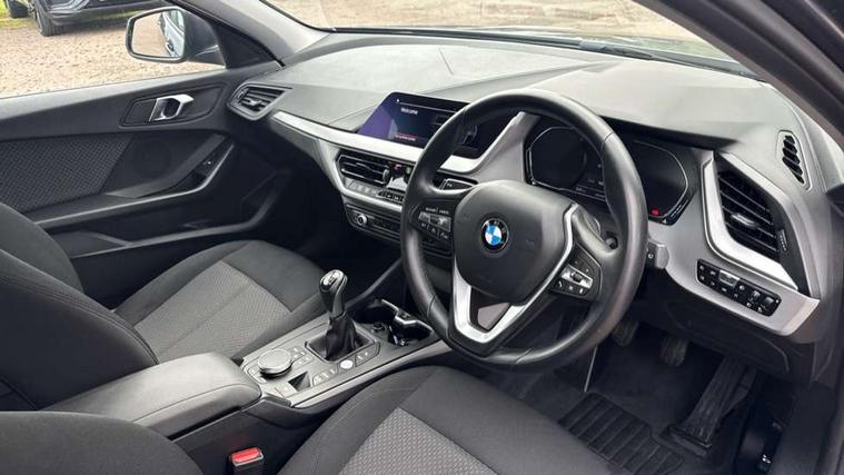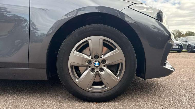 Active guard plus, Attentiveness assist, BMW Online services, BMW Teleservices, Check Control warning system for monitoring of lights and door/luggage compartment open warning, Connected eDrive Services, Cruise control with brake assist, Eco pro mode, Electric power steering with Servotronic steering optimised at all speed ranges, Integrated owners handbook, Lane departure warning system, Oil sensor for level and grade, On board computer, Optimum shift indicator, Personal Profile, Pull away assistant, Speed limiter, 6 speed manual transmission, Aluminium lightweight construction, Anti roll bar front and rear, Balancer shaft, Double VANOS, Drive Performance Control, Electronic differential lock, High precision injection, Petrol Particulate Filter, VALVETRONIC engine management, Bluetooth audio streaming, DAB Digital radio, Auto dimming rear view mirror, Body colour door handles, Body colour front and rear bumpers, Body colour mirror caps, Chrome exhaust tailpipe in single, round (Exhaust tailpipe, stainless steel - single, round), Chrome kidney grille with extra wide black, high gloss black vertical slats, Direction indicator side lights in exterior mirrors, Fading support, Follow me home headlights, Front and rear bumper system with replaceable deformation elements, Front and rear electric windows with open and close fingertip control, anti trap facility and comfort closing, Front door sill finishers in black plastic with BMW designation, Green tinted heat protection glazing, Heated, electrically adjustable exterior mirror aspheric on driver side, convex on passenger side, High level third brake light, LED daytime running lights, LED eyebrow turn indicators, LED front fog lights, Lightweight engineering, Manual headlight beam throw control, Matt black air guide grilles, Matt black roof moulding, B pillar finisher and wheel arch trim, Matt black window frame, Model designation on right side of tailgate, Nearside reverse light in rear light cluster, Preparation for high beam assistant, Rain sensor including auto headlights activation, Rear fog lights, Rear window wiper, Shark fin antenna, Visible VIN plate, Welcome lighting, Windscreen wipers with integrated washing jets, 12V power socket in centre console, 2 cupholders in front centre console, 3 rear seat head restraints, 3 spoke sports leather steering wheel in pearl Chrome, Automatic single zone air conditioning, Child seat ISOFIX attachment for two outer rear seats and front passenger seat with anchorage points, Conditioned based service, Driver side folding compartment in instrument panel, Folding rear clothes hook, Folding rear seats, Four grab handles integrated in roof lining, Front and rear door pockets, Front and rear side armrest integrated into door trim, Front armrest foldable with integrated storage compartment, Glove compartment, Height adjustable front head restraints, Manual adjust steering wheel, Multi-function controls for steering wheel, Rear seat backrest with manual 60:40 split folding with 3 top tether clips integrated on rear of seat panels, Storage compartment in centre console, Sun visors with vanity mirrors and insert tab, Velour floor mats, Connected pack professional - 1 Series, Extended storage pack - 1 Series, Interior lights pack - 1 Series, 2 tone horn, 3 point seatbelts on all seats, front pyrotechnic belt tensioners, stopper and belt force limiters, rear coded belt buckles, Airbags - Front driver and passenger, front and rear head, front side, curtain head protection, Anti lock braking system (ABS) with brake assist, BMW emergency call, Brake drying, Braking readiness, City braking function, Crash sensor activating central locking release, hazard warning lights, fuel cut off, interior lighting + activation of safety battery terminal clamp, Driver and front passenger seat belt security check, Dynamic stability control + (DSC+), Dynamic Traction Control - DTC, Electrically operated hand brake, Front and rear disc brakes, Front passenger manual airbag deactivation, Rear child proof door locks, Seatbelt warning, Side impact protection, Tyre pressure monitoring system, Warning triangle and first aid kit, Automatic drive away locking facility, Central locking switch for all doors, fuel filler cap and luggage compartment, Deadlocking function system to all doors, Locking wheel bolts, Remote central locking with two Integrate key, one button for opening and closing all lock, open and close window, button for open luggage compartment, Start/stop button with comfort go keyless engine start and auto start stop deactivation button, Thatcham Cat.1 alarm and immobiliser, Quartz Silver matt interior trim, Reduced rolling resistance tyres,