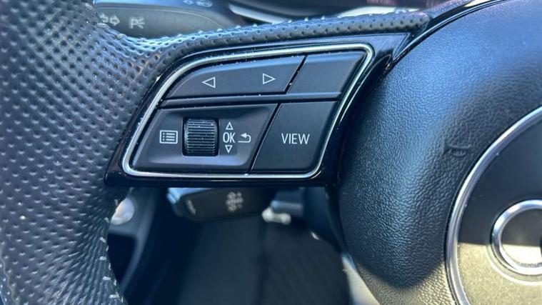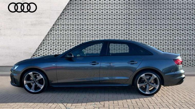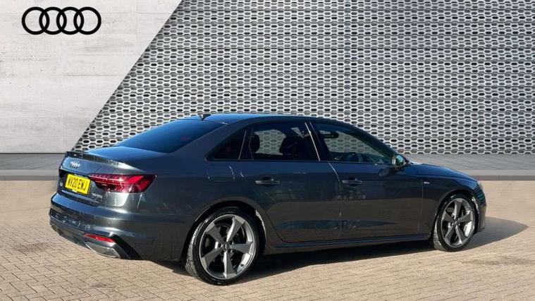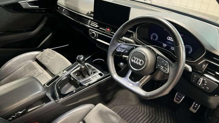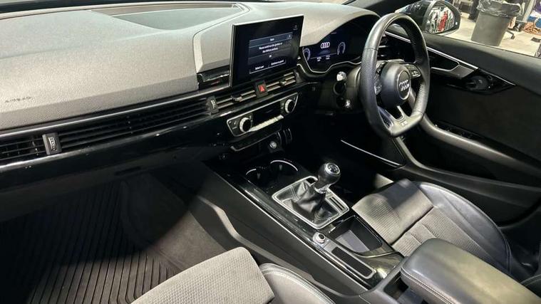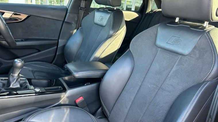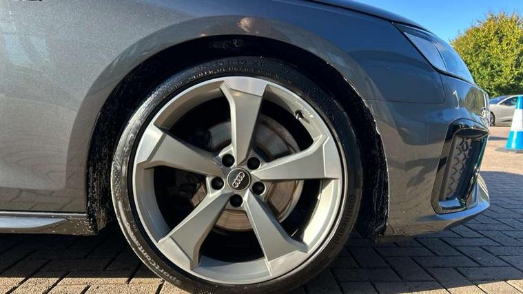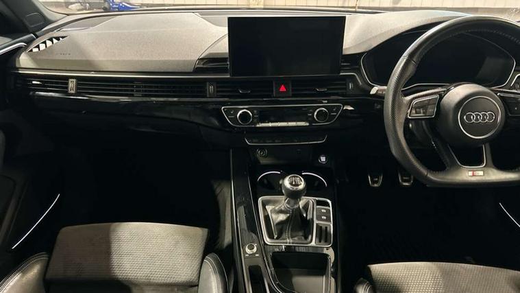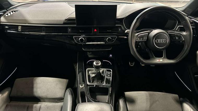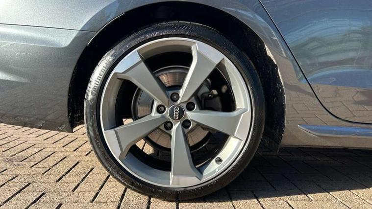 Audi connect safety and service (e-call), Audi drive select, Audi parking system plus with front and rear sensors, Audi smartphone interface, Audi virtual cockpit, Automatic start-stop system with coasting functionality and efficiency programme, Bluetooth interface, Electric boot lid release, Electromechanical power steering, MMI Navigation plus with MMI touch includes 10.1" high resolution colour MMI display, 3D map, Rear view camera, Voice control system, 54 litre fuel tank, Sports suspension lowered by 23mm, 2 USB charging ports, 8 passive loudspeakers, DAB digital radio reception, Auto dimming rear view mirror, Body colour door handles, Body colour front spoiler lip, Body colour side sill trim, Electrically folding auto dimming/adjustable/heated door mirrors with LED side indicators and kerb view function for passenger side, Grained matt black side air inlets with matt aluminium silver inlay, High beam assistant, LED headlights with LED rear lights + dynamic rear indicators + headlight adjustment and high beam, turning light + LED daytime running lights, Matt aluminium silver tailpipe trim, Privacy glass, Rain and light sensors, S Line badges on the front wings, S line front and rear bumpers with side skirts, S Line rear diffuser in matt titanium black with trim strip in matt aluminium silver, Windscreen with acoustic glazing, 3 spoke flat bottomed high multi-function leather sport steering wheel, 4 way electric lumbar support for driver and front passenger, 40/20/40 split folding 3 rear seat bench in 3 parts with rear centre armrest, Black cloth headlining, Black perforated leather gearknob, Contrast stitching on seats, steering wheel and gear lever gaiter, Deluxe 3 zone electronic climate control, Door sill trims with aluminium inlay, Front and rear head restraints, Front centre armrest, Heated front seats, Illuminated door sill trims with S logo, ISOFIX child seat mounting and top tether, Manual seat adjustment, Stainless steel pedals and foot rest, LED Interior light pack - A4/S4, Titanium black styling pack - A4 Saloon, 3 rear seatbelts, 6 airbags - Driver, front passenger, curtain and side windows, Electronic Stabilisation Control (ESC) including ABS, ASR and EDL, Hill hold assist, Multi collision brake assist, Pop-up bonnet for pedestrian protection, Pre sense city, Seatbelt monitoring, Warning triangle and first aid kit, Anti theft alarm, Anti theft wheel bolts, Keyless Go, Piano black finish inlay, 19" 5 arm rotor design alloy wheels titanium matt look, Tool kit, Tyre repair kit,